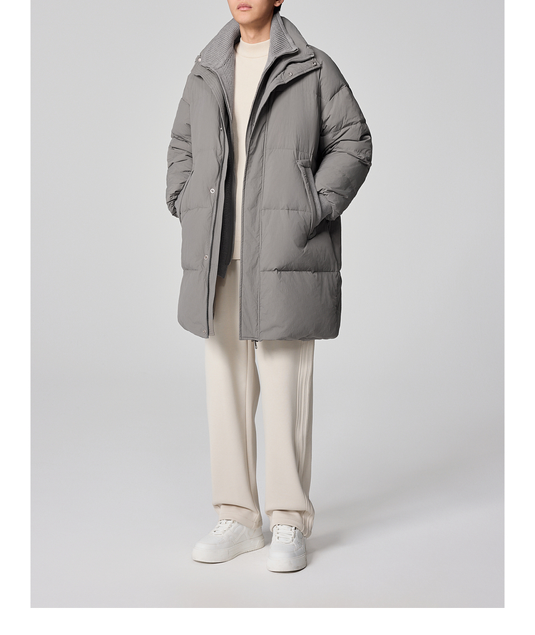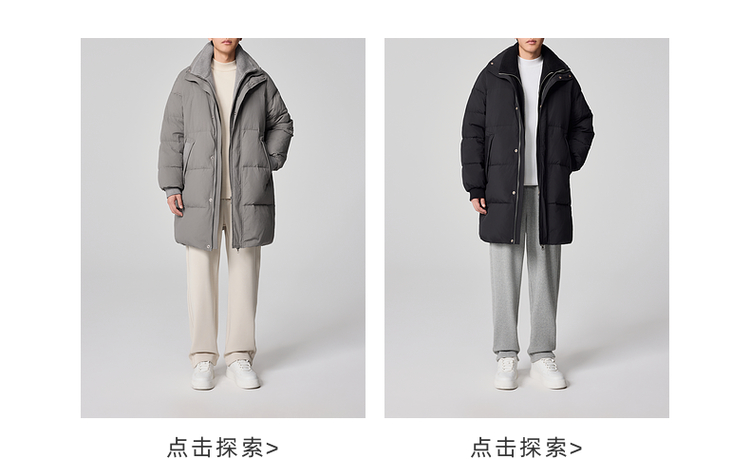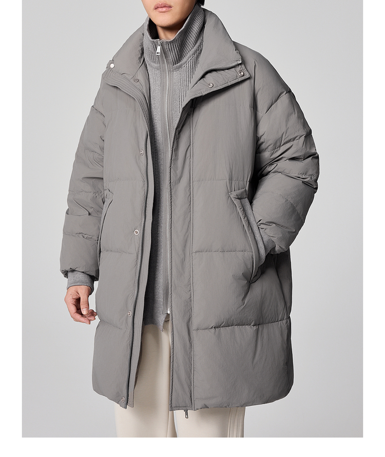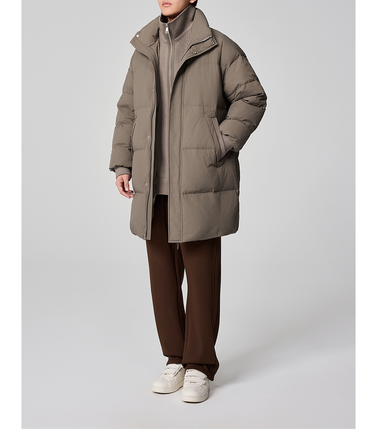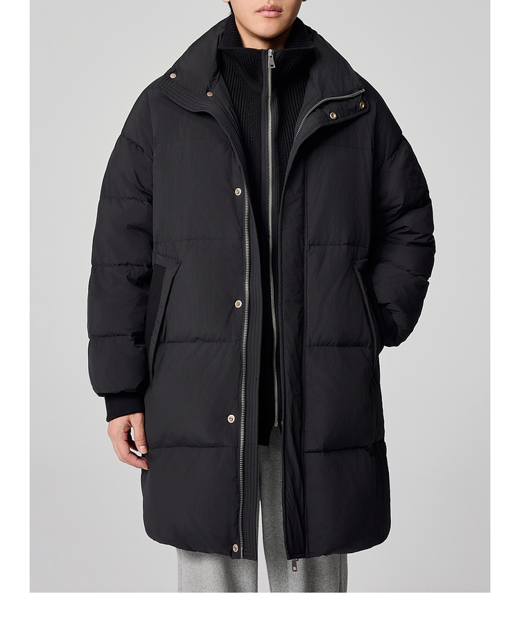 墨麦客男装毛织立领中长款男士羽绒服2024冬季新款鸭绒保暖外套。