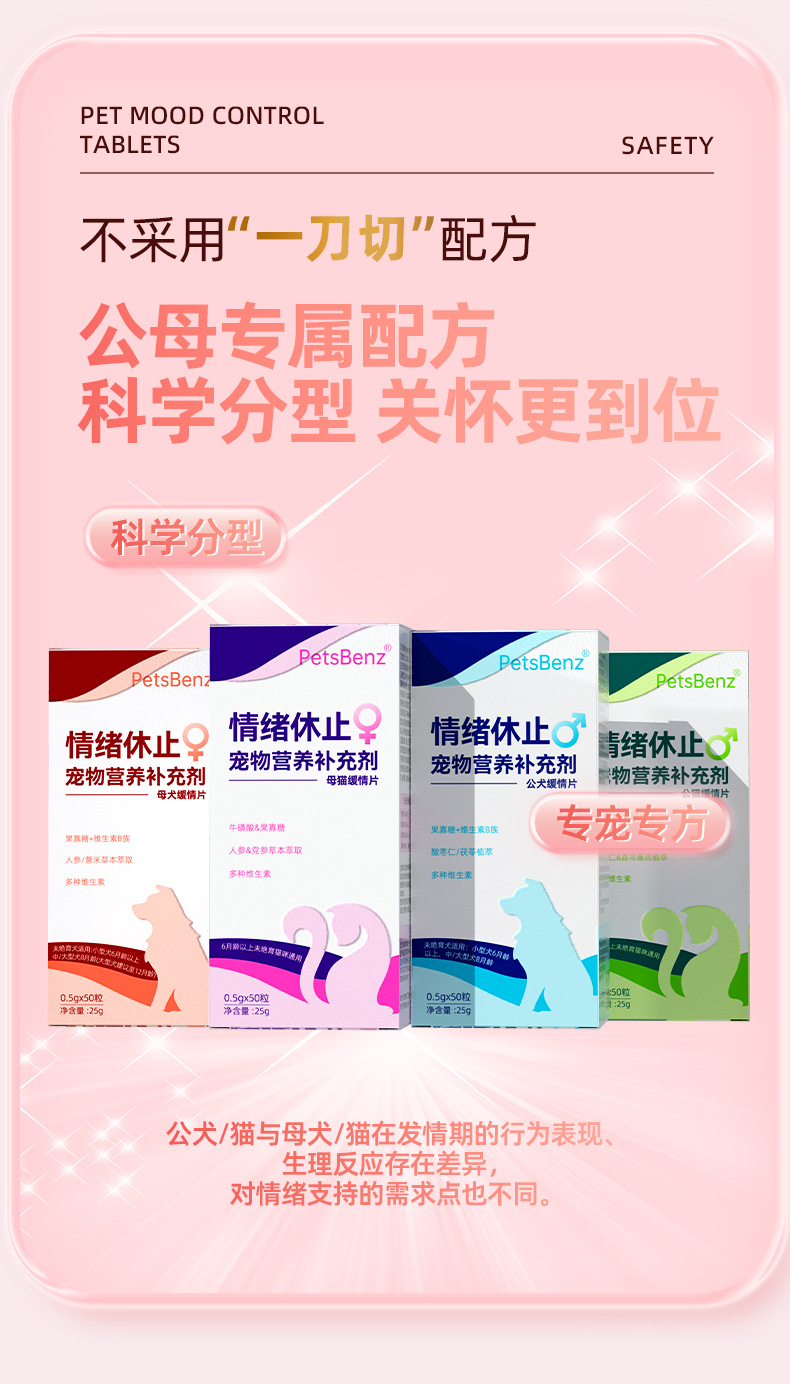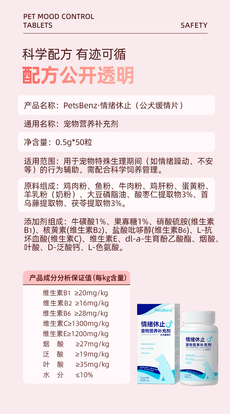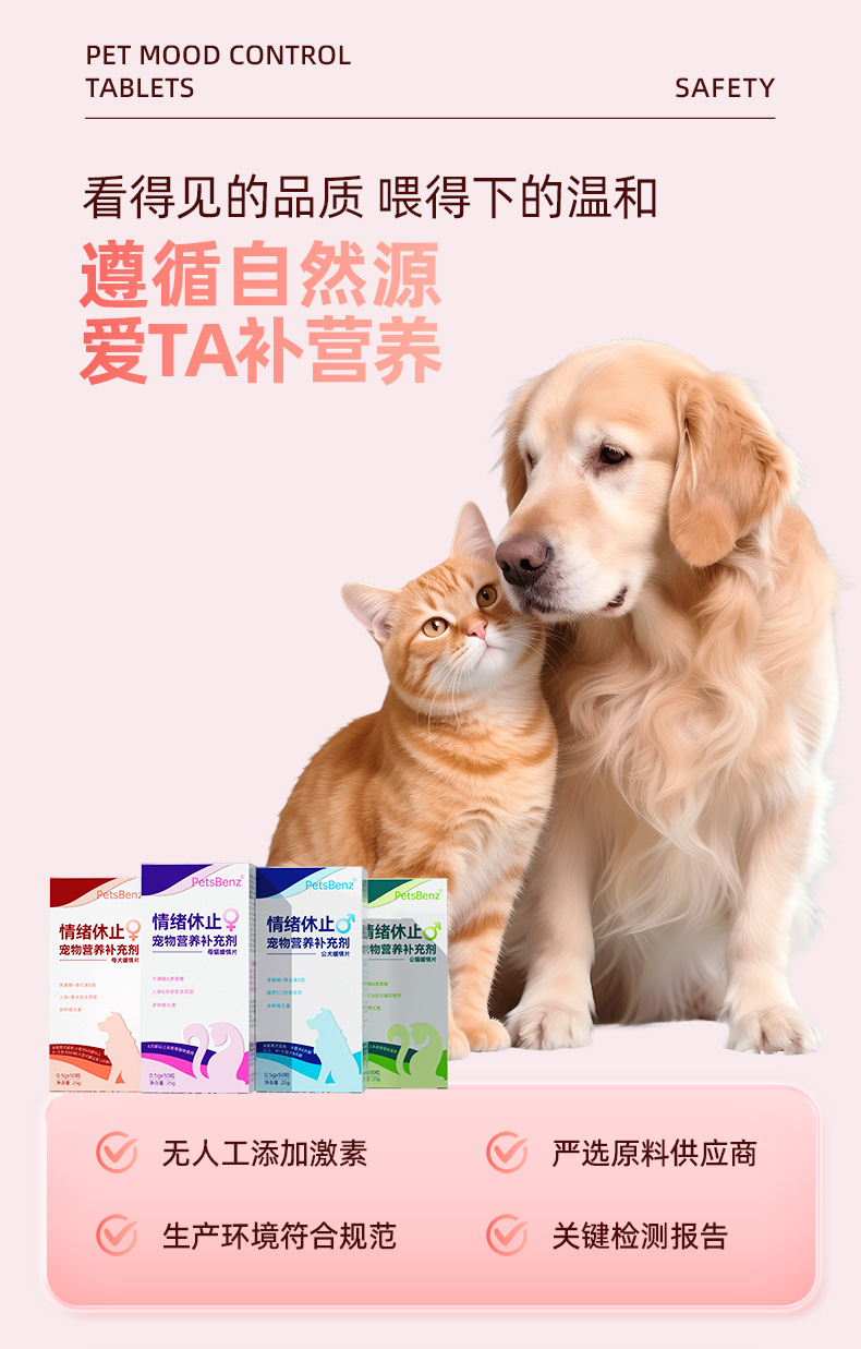 PetsBenz宠物抑情片50粒/盒禁情片公狗母狗调节情绪禁情