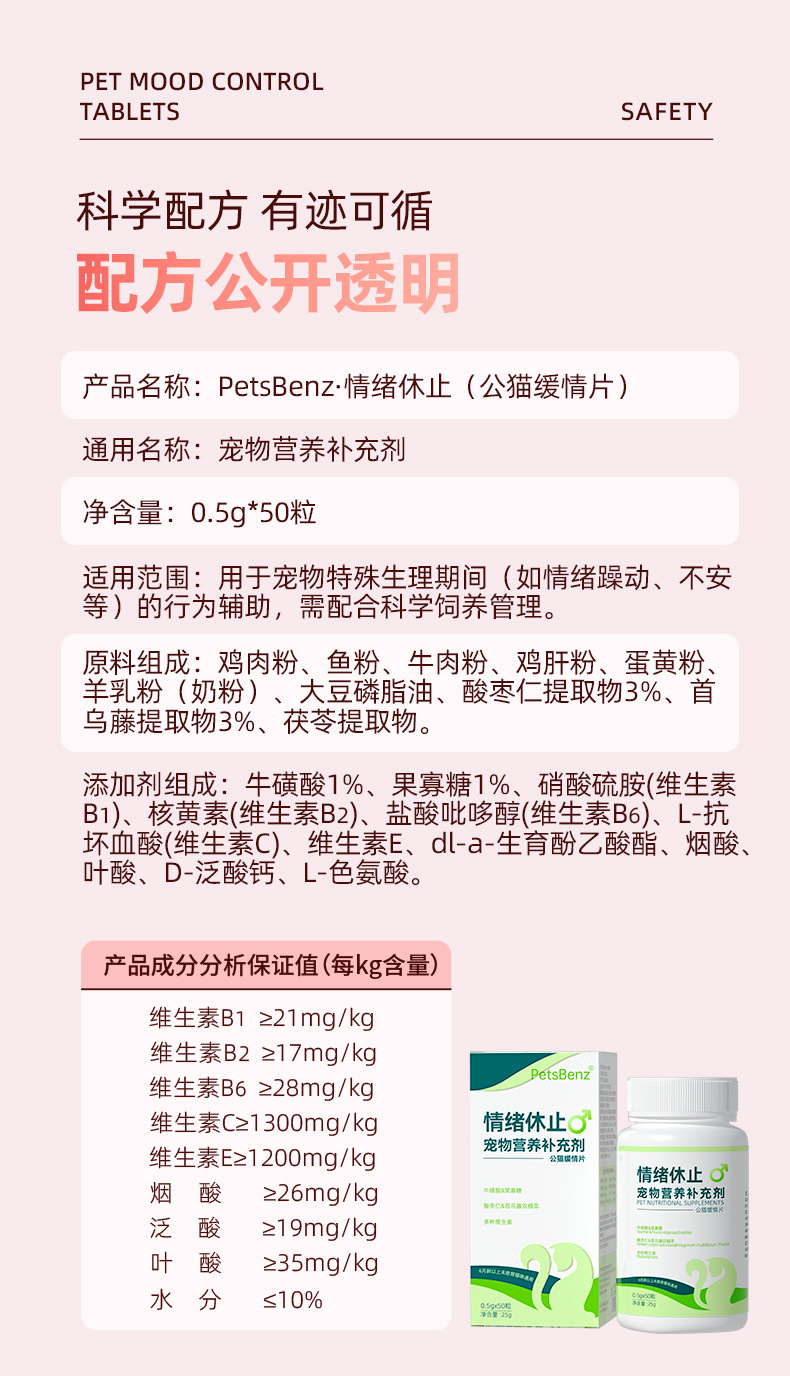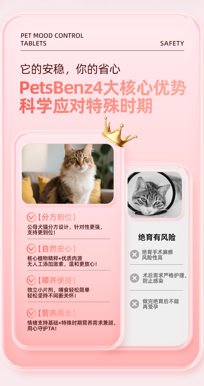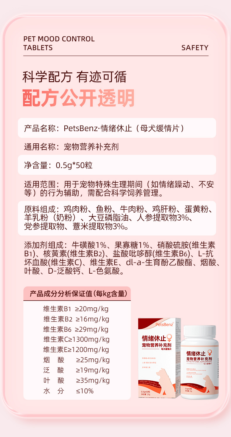 PetsBenz宠物抑情片50粒/盒禁情片公狗母狗调节情绪禁情