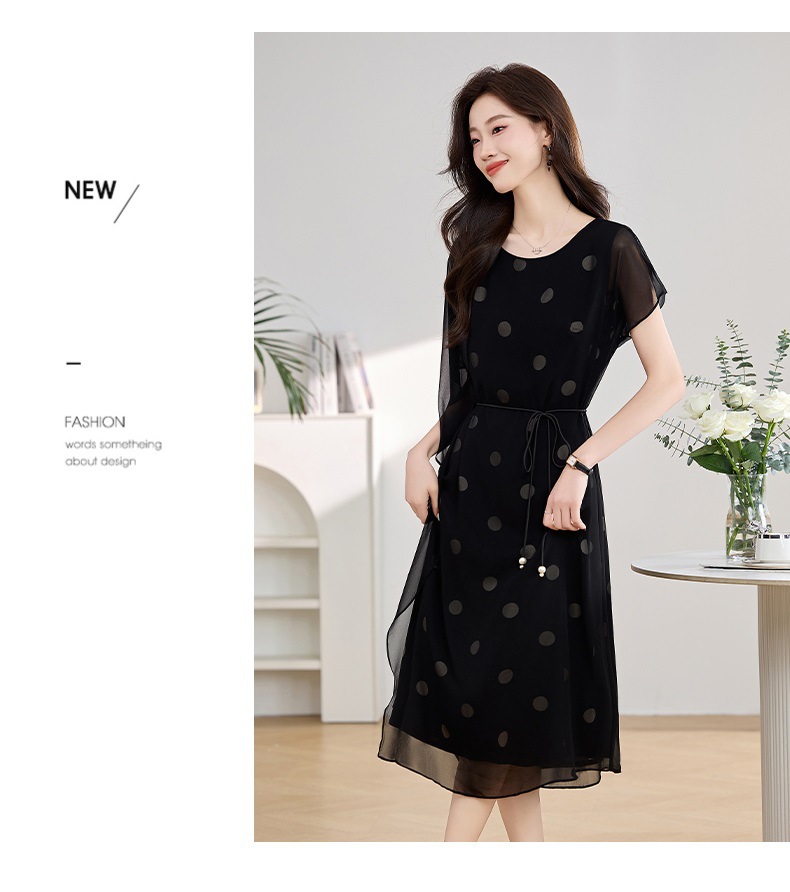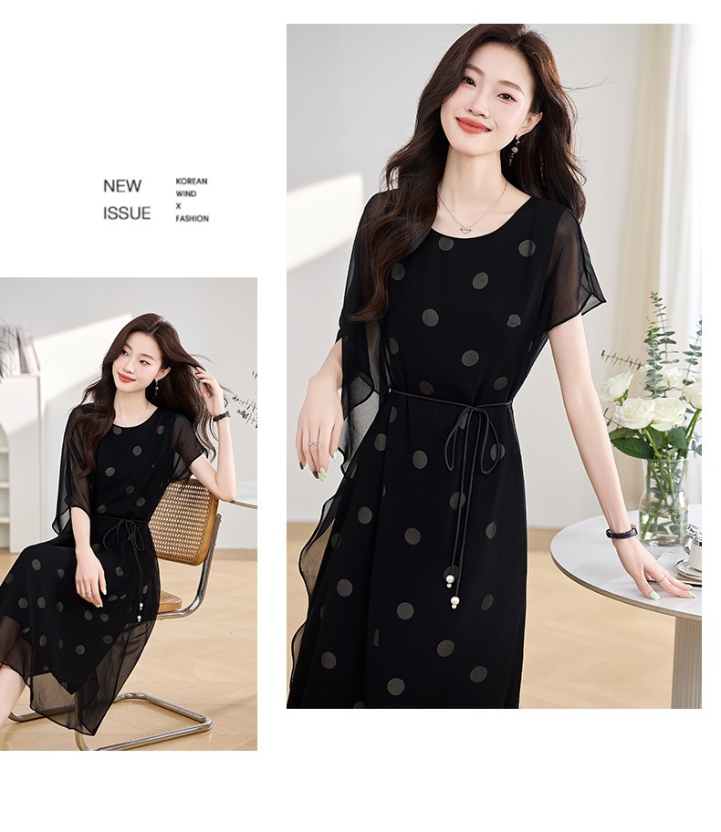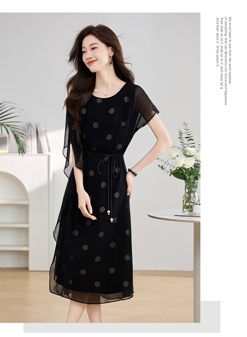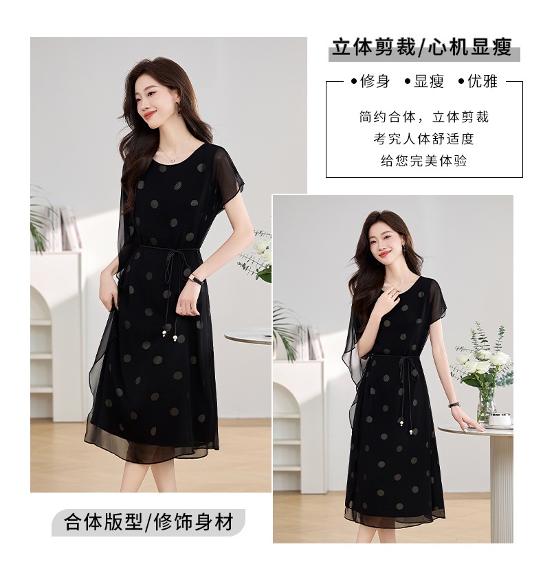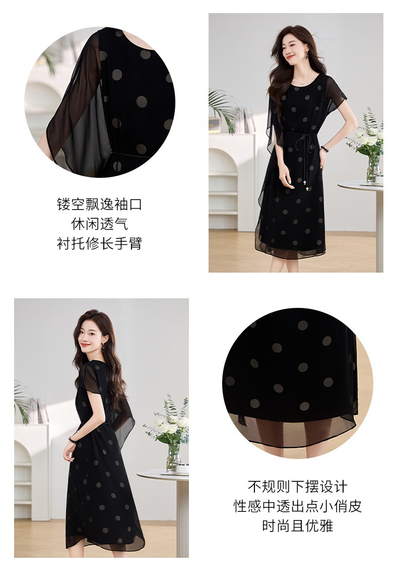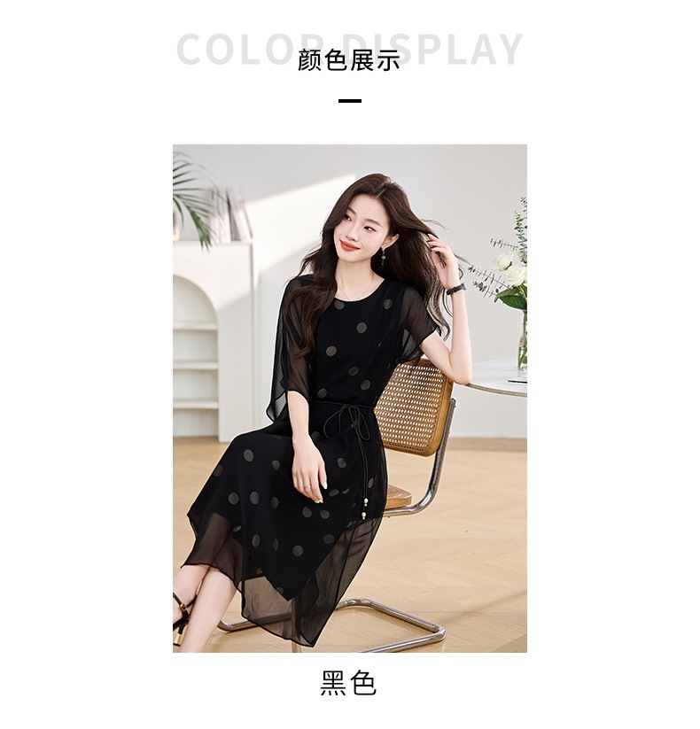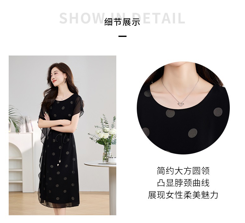 波点飘逸假两件减龄连衣裙QIXFS249830