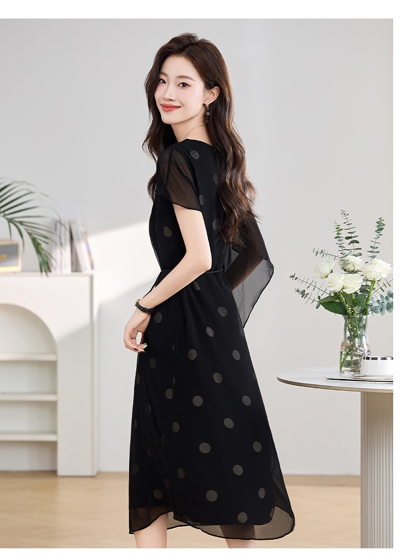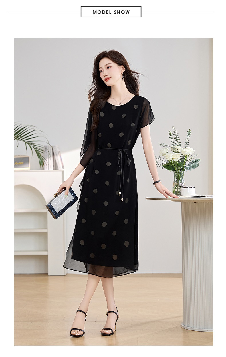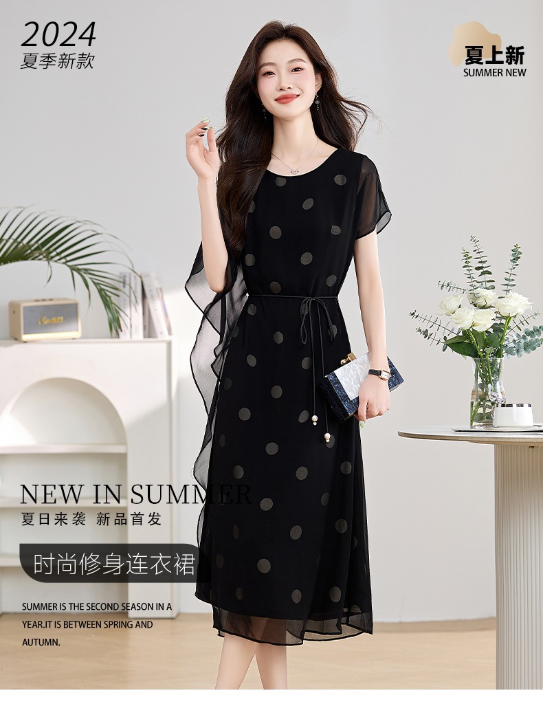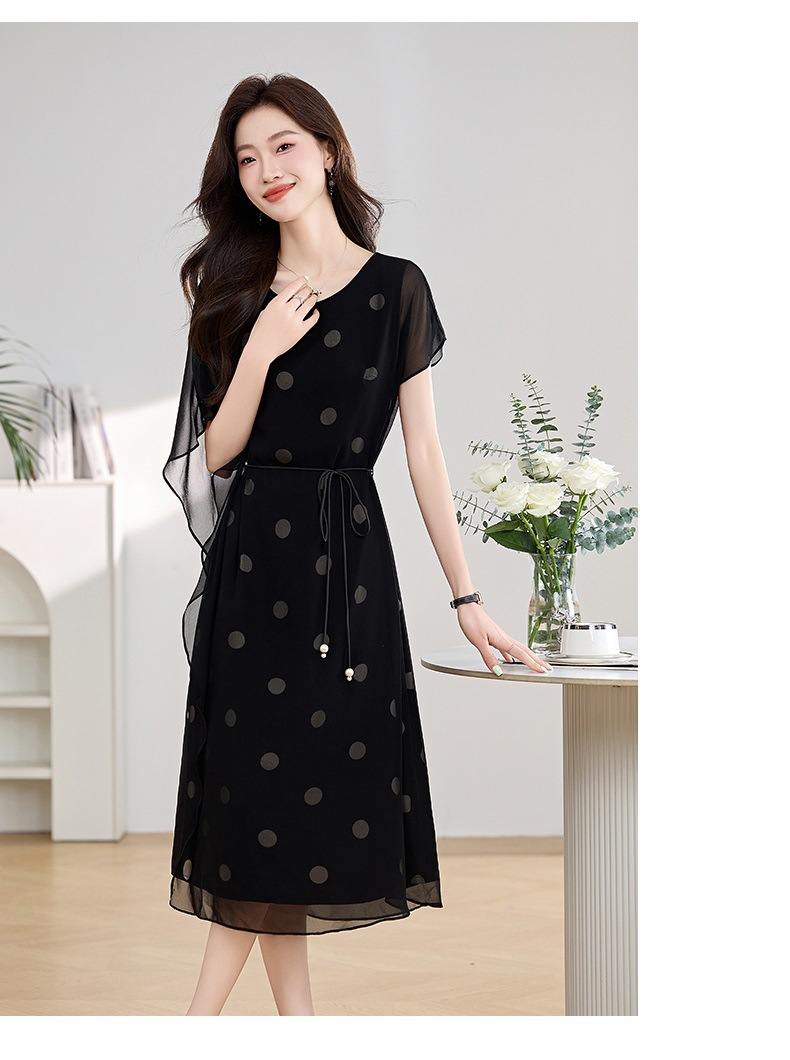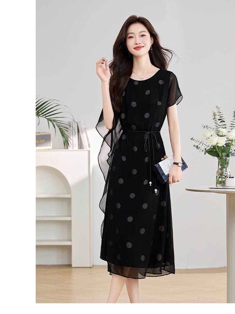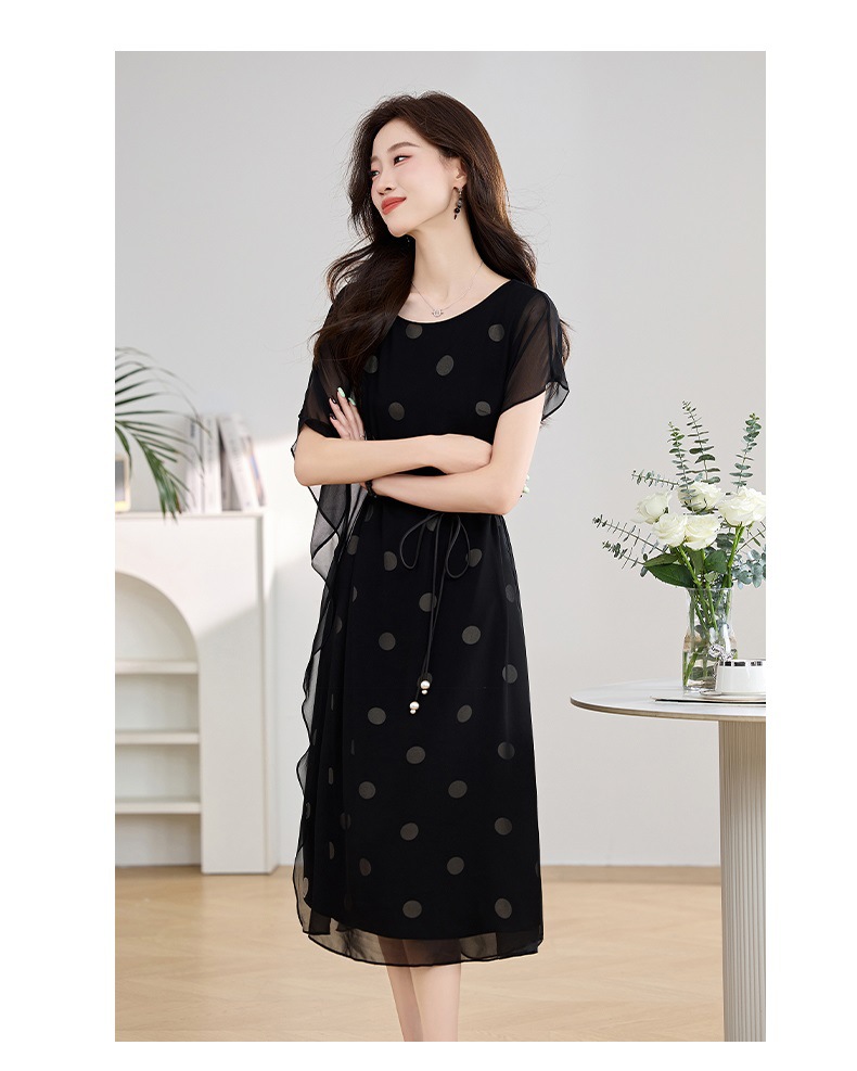 波点飘逸假两件减龄连衣裙QIXFS249830