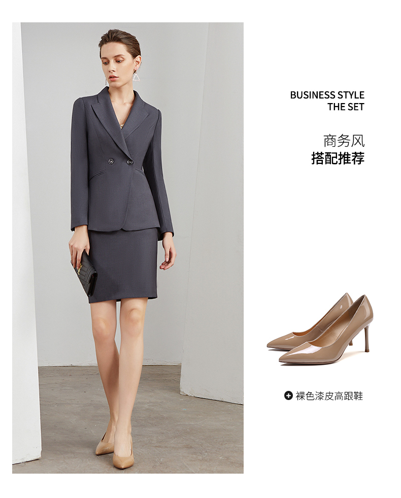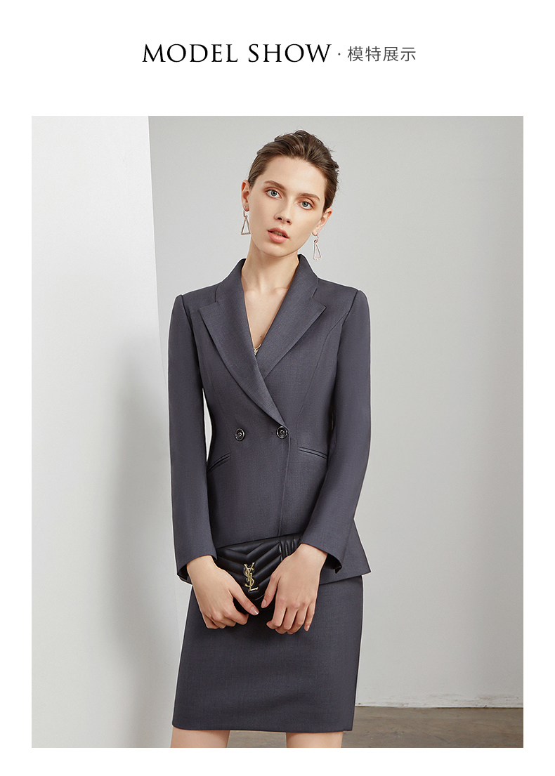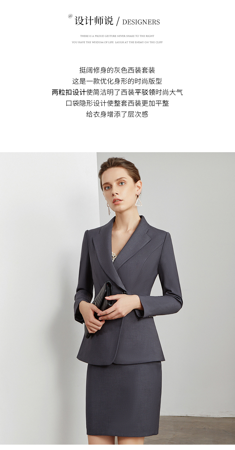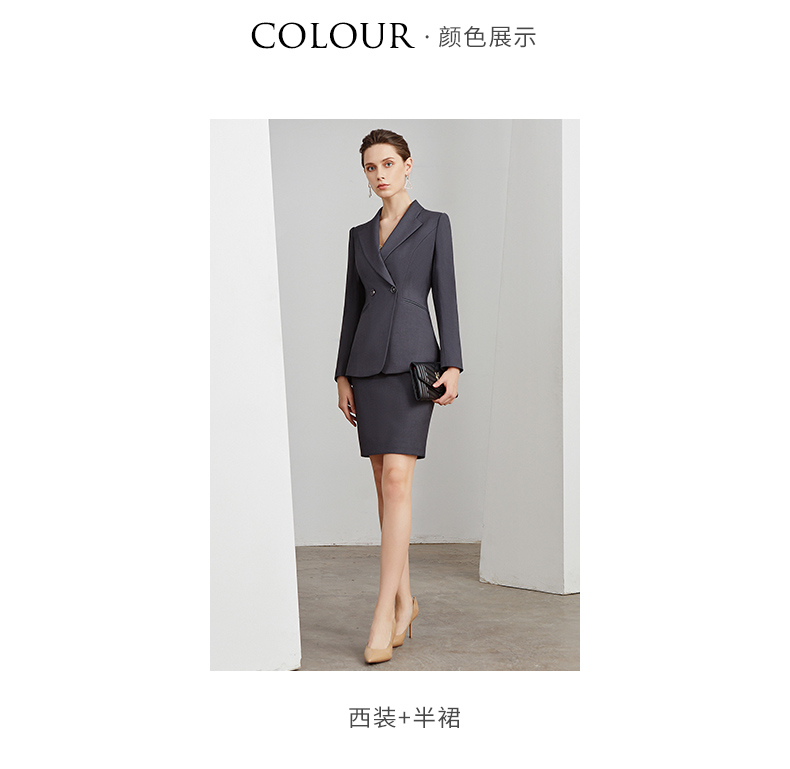 IWY/灰色西装上衣套裙女上班工作服白领职业装面试售楼部经理正装修身 C11101-E+S11101-E