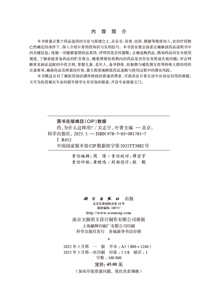 药,为什么这样用?大型药学知识普及丛书 关志宇 叶菁 主编 正确选购药品 熟知药品的安全使用规范 掌握用药注意事项 科学出版社