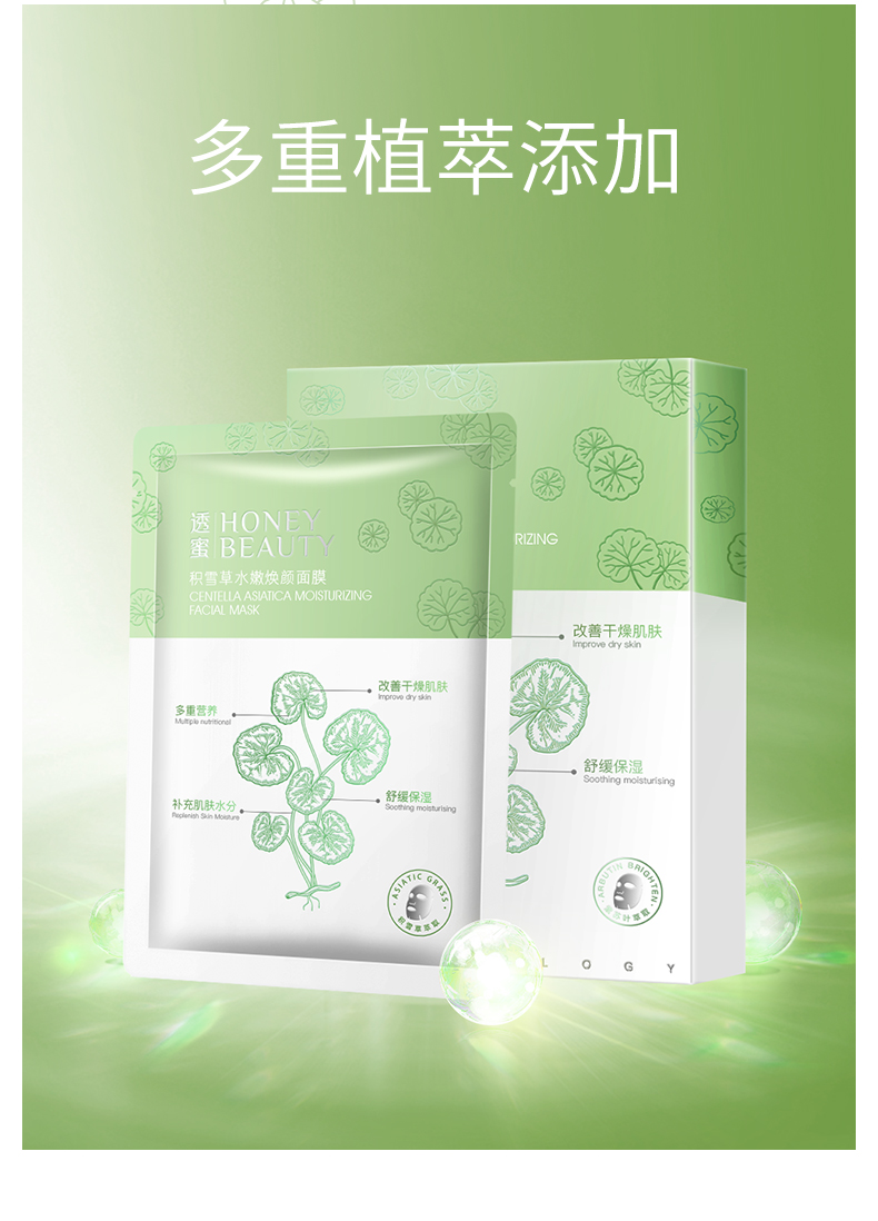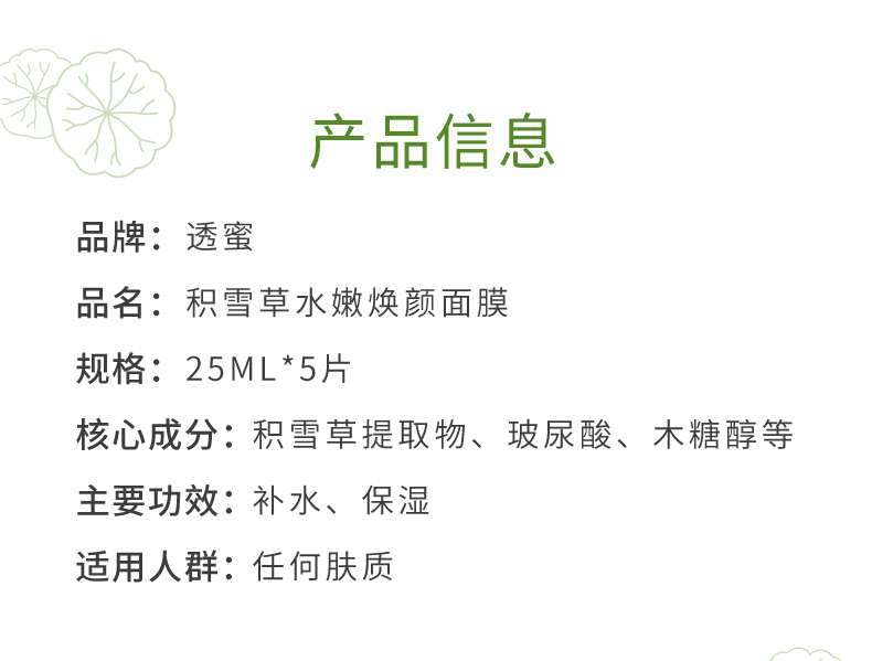 【活动价 ¥29.9/4盒】透蜜 积雪草水嫩焕颜面膜 25g*5片*2盒+山茶花舒颜保湿面膜5片/盒*2盒