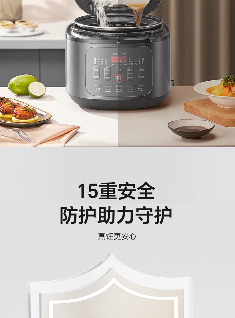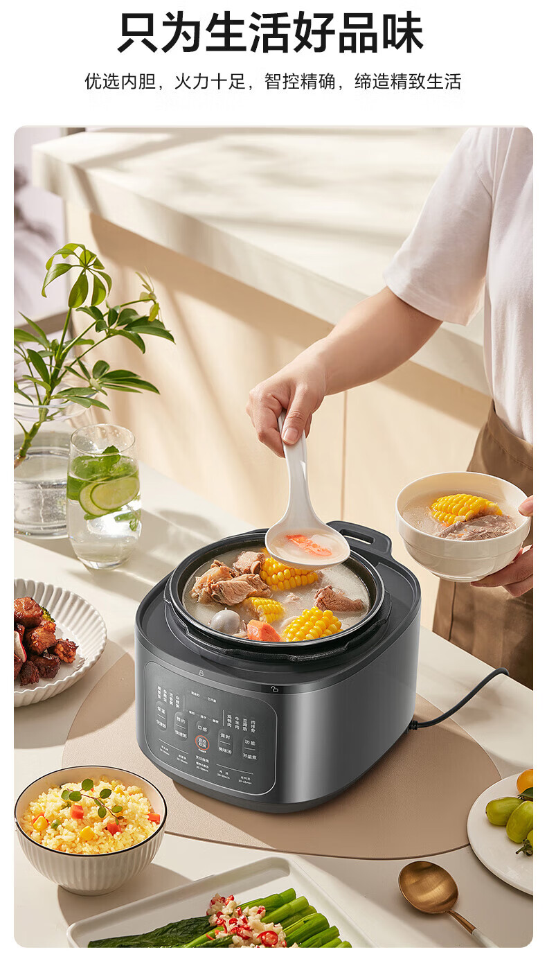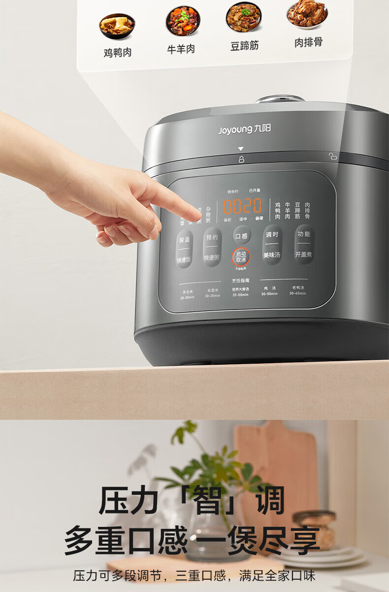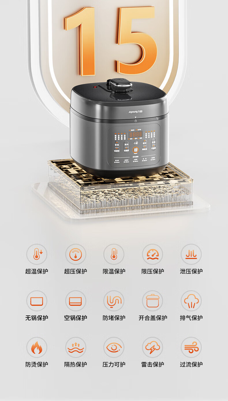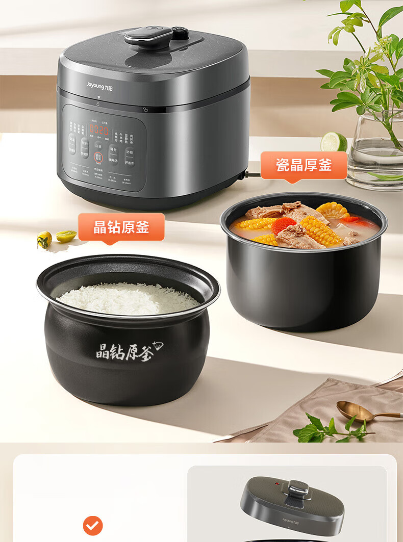 九阳(Joyoung) 大容量6L 电压力锅 双胆叠放 特色开盖收汁 16大功能键 晶钻原釜 智能加热 预约定时 双胆煮饭煲汤炖肉 Y-60H200