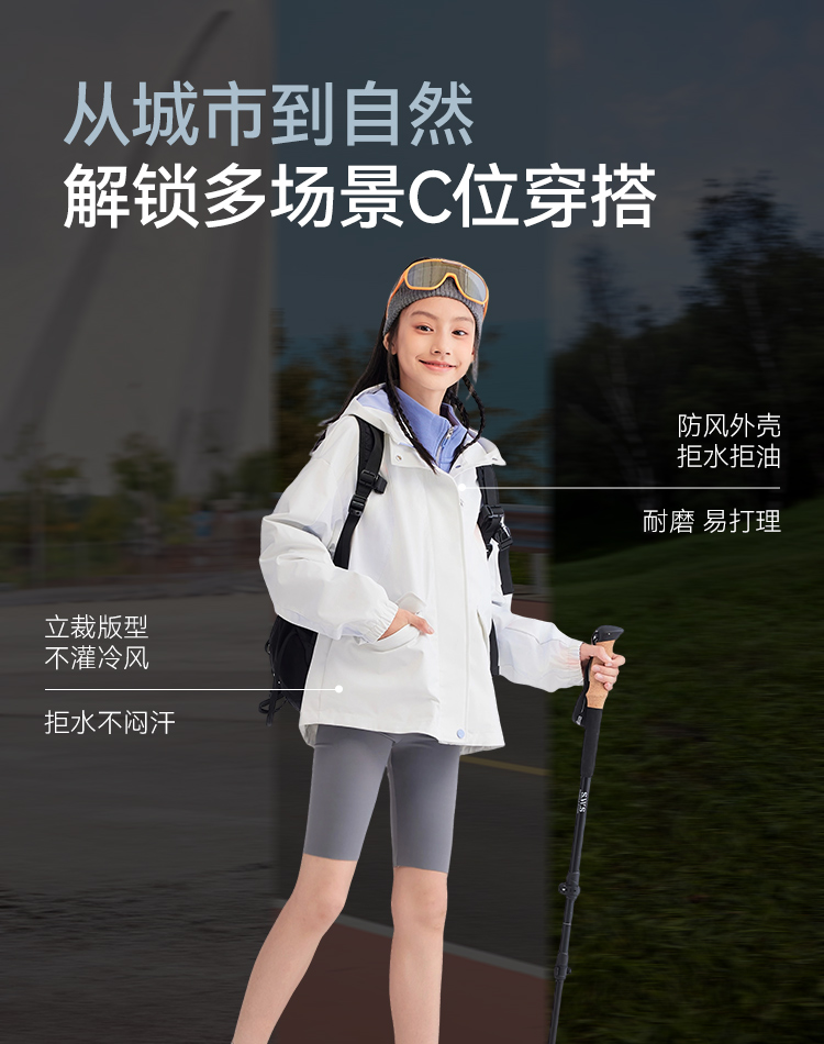 水孩儿童装女童外套薄2025秋季新品中大童防泼水透湿风衣连帽上衣