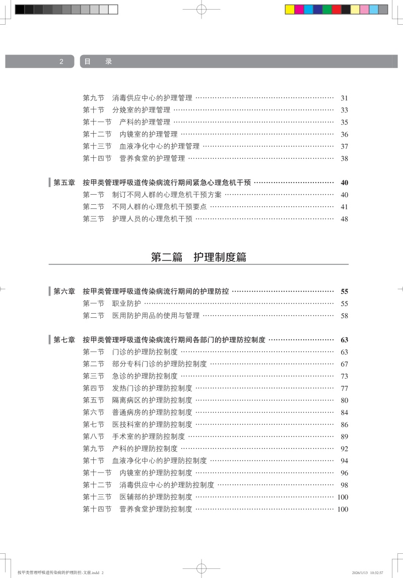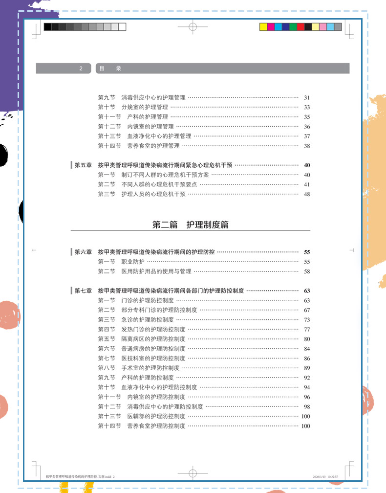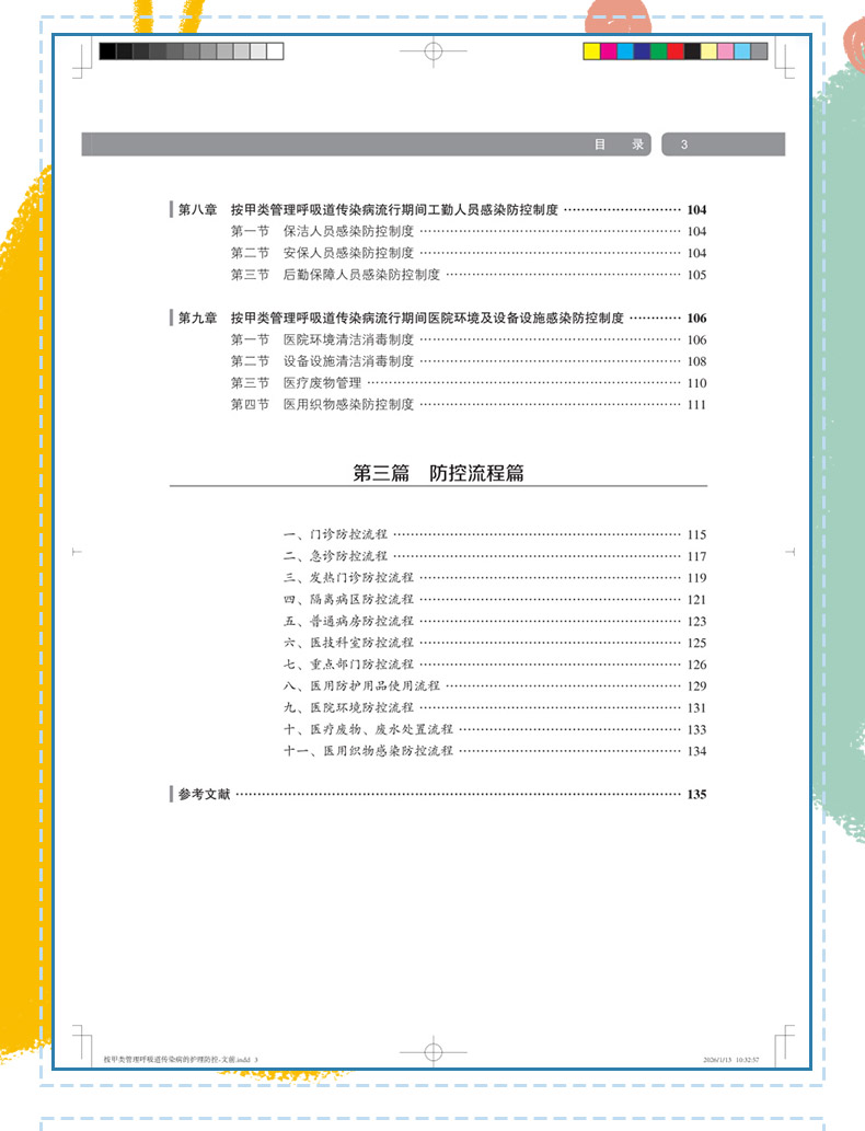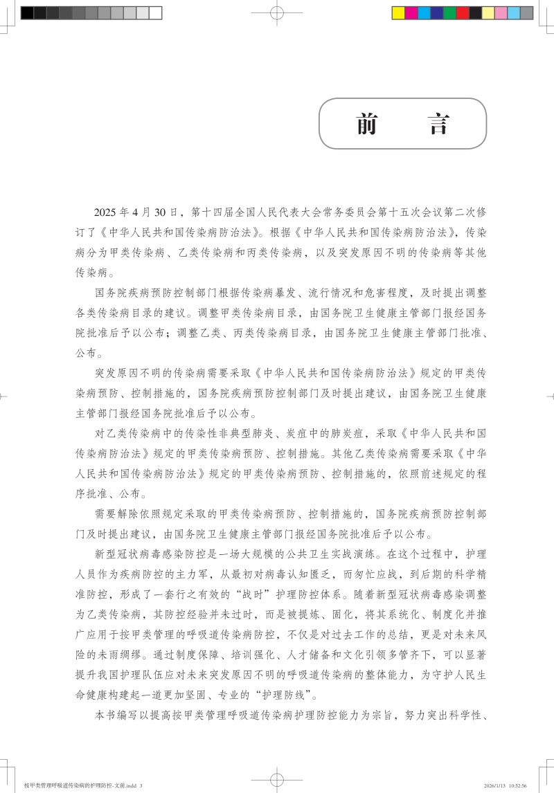 本书以提高呼吸道传染病护理防控能力为宗旨,在编写内容和形式上努力突出科学性、实用性、工具性等特色。全书共分为三篇,包括护理管理篇、护理制度篇、防控流程篇,内容涉及疾病概论、疾病流行期间的护理人力资源管理、患者的护理管理、防护物资的管理、疾病流行期间的护理防控及感染防控、医院各部门及特殊人群的护理管理等,系统全面介绍了按甲类管理呼吸道传染病的护理防控工作,内容实用,贴近临床工作,旨在为护理人员提供按甲类管理呼吸道传染病护理防控工作的重要参考依据。