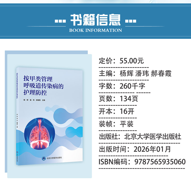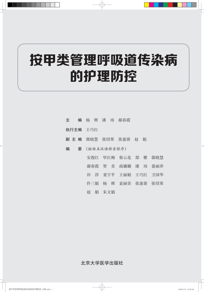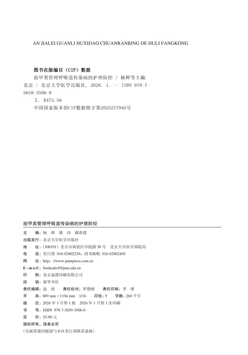 按甲类管理呼吸道传染病的护理防控 杨辉 潘玮 郝春霞 系统全面介绍按甲类管理呼吸道传染病的护理防控工作等 北京大学医学出版社
