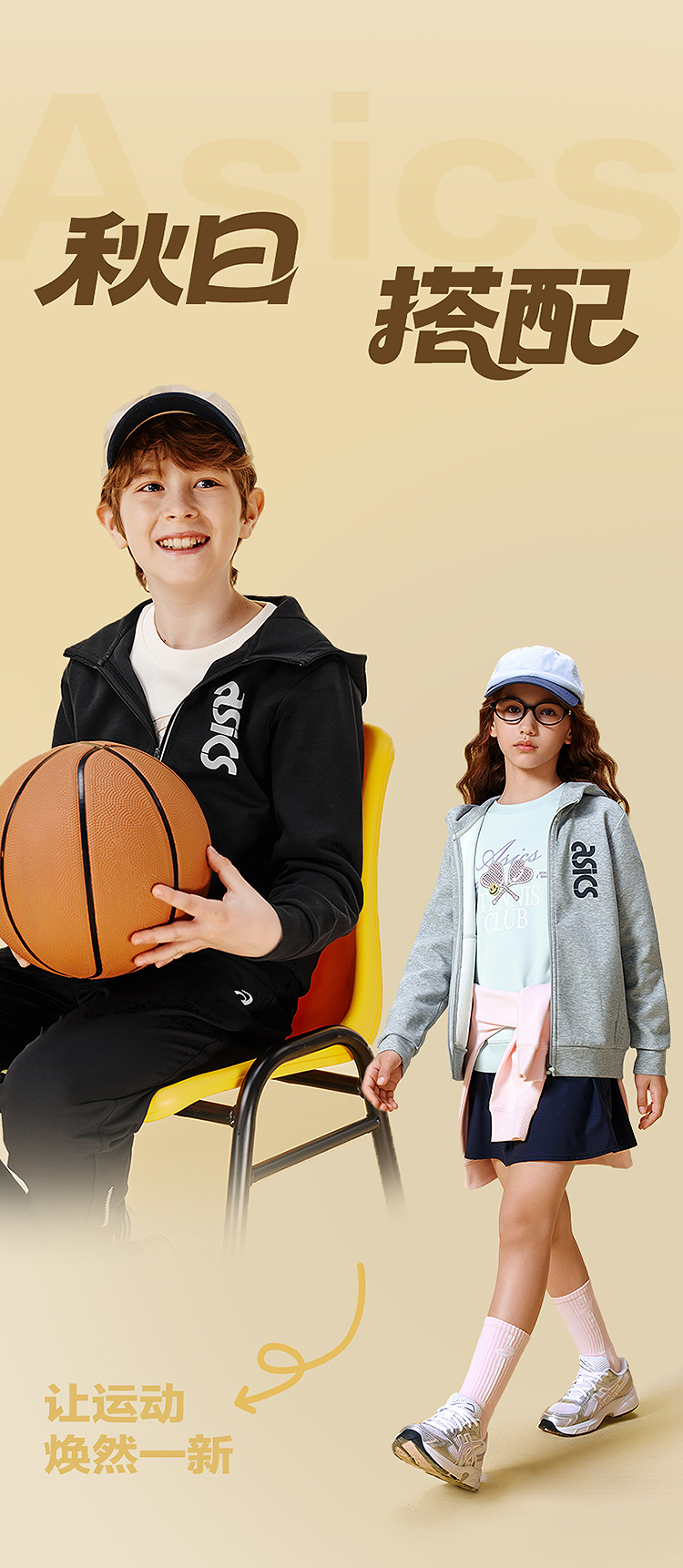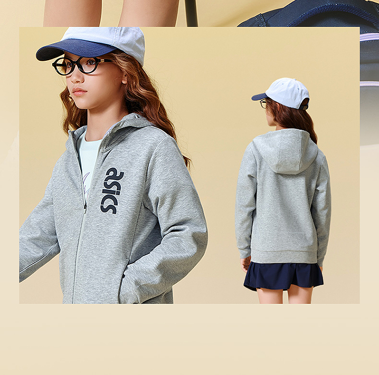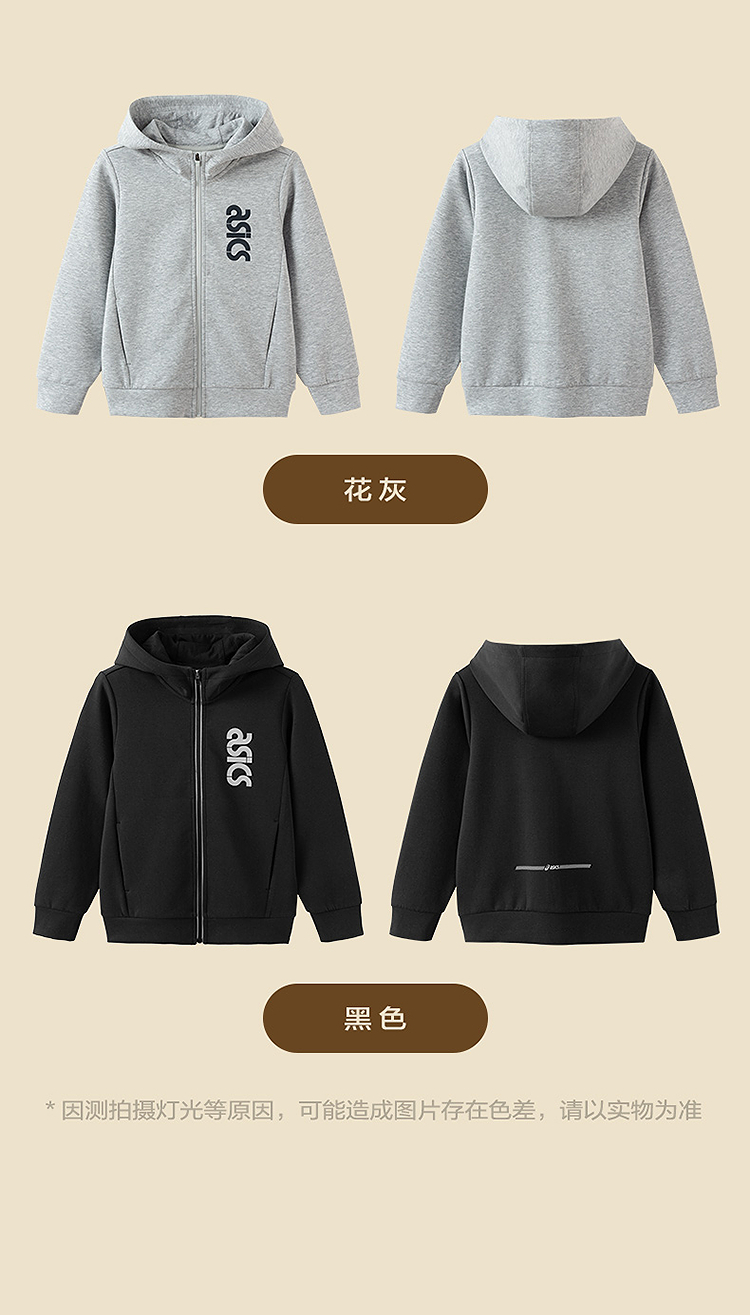 ASICS/亚瑟士童装25年秋季新款运动保暖卫衣开衫时尚百搭针织外套