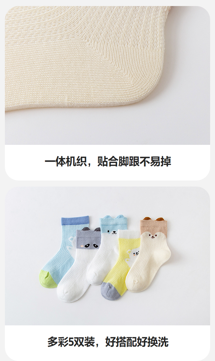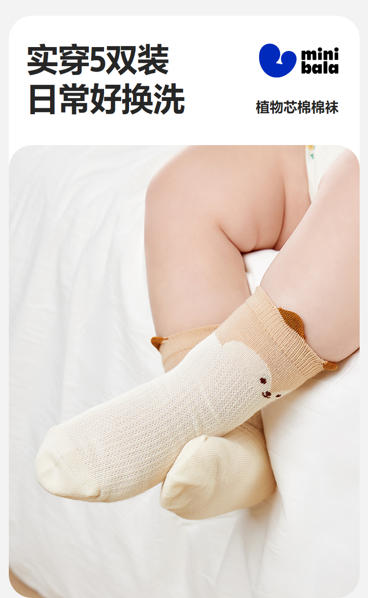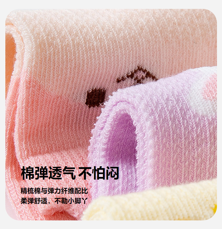 【5双装】迷你巴拉男女童亲肤无骨透气袜子宝宝棉弹袜不勒脚