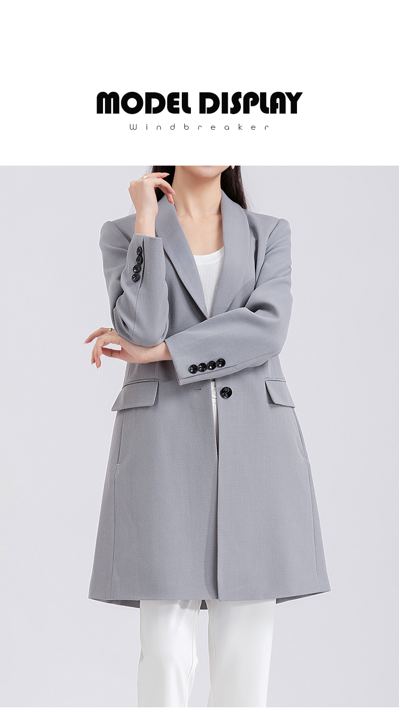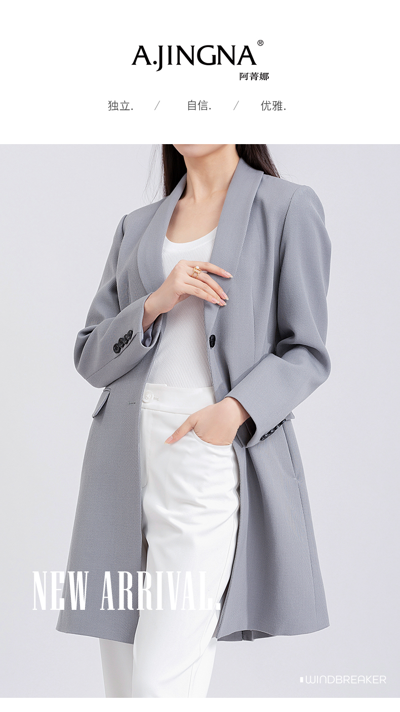 【积分兑换】阿菁娜经典平驳领西装式风衣修身优雅简约中长款大衣A27C205019.1