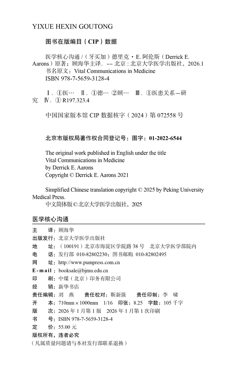 医学核心沟通 北京大学医学人文学院医患沟通译丛 顾海华 从不同的切入点对影响医患沟通的各种因素进行分析 北京大学医学出版社