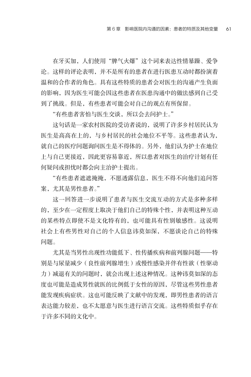 本书与读者分享了长期以来作者对良好沟通的重要性的认识和知识,以及其在研究医学文献中的发现。本书审慎地展示了作者在三个方面全面的研究: 对医疗服务提供者与患者沟通的文献的研究、对沟通和沟通态度的实证研究, 以及对医疗服务中沟通这一社会文化现象的伦理分析。它将介绍沟通过程的各个方面,提供来自世界各地的重要建议。它将对不同文化和社会中医务人员和医疗专业人员的沟通行为产生积极影响,同时教育并惠及所有接受医疗服务的人。