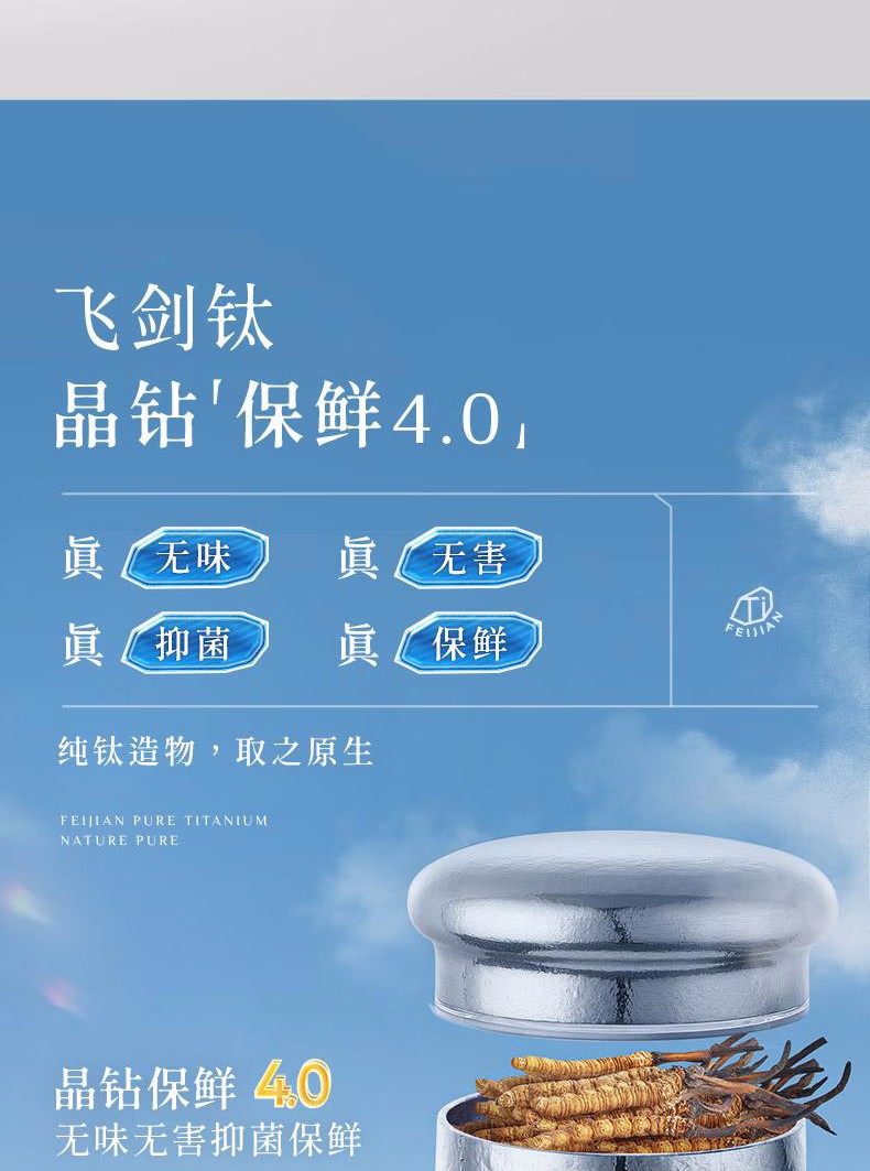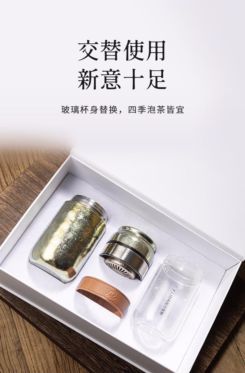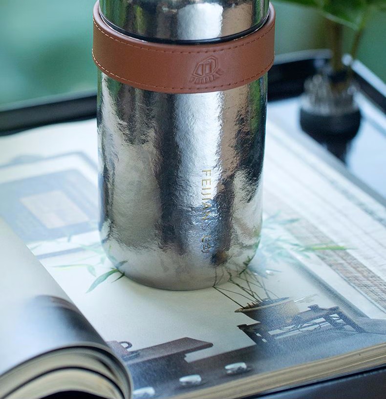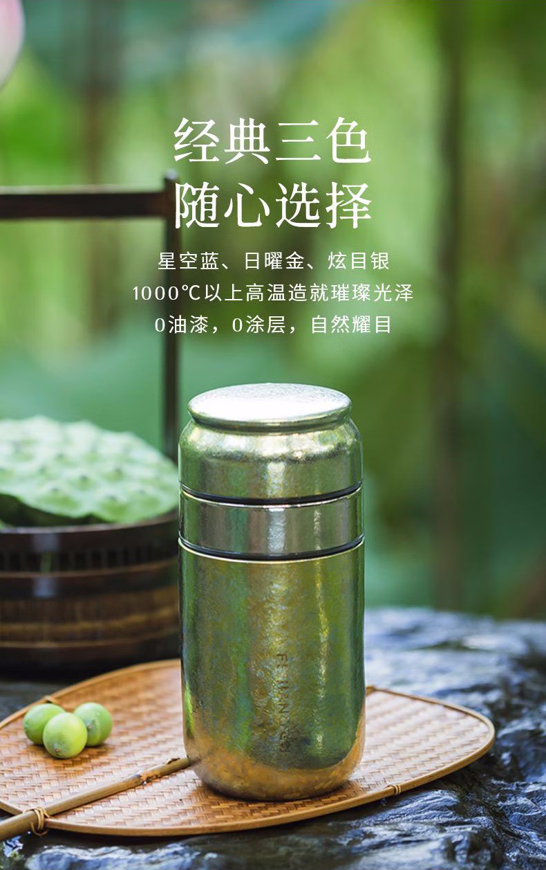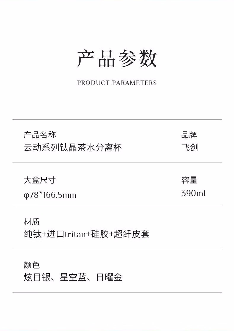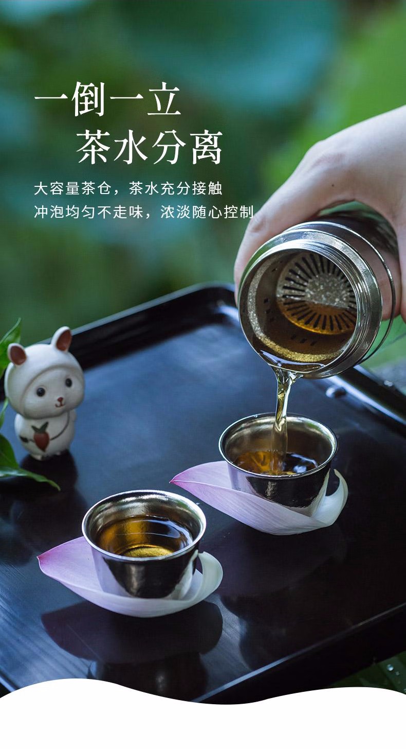 飞剑纯钛保温杯云动系列钛晶茶水分离杯 双层杯茶仓焖泡