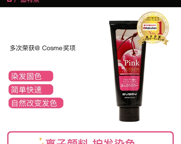 【粉色公主不掉色的神器】anna donna Every天然速效固色染色护发素 粉色 160g
