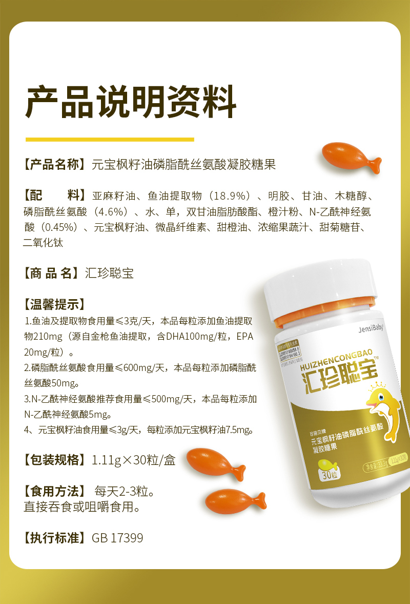 汇珍聪宝 元宝枫籽油磷脂酰丝氨酸凝胶糖果孕婴童胎儿眼脑同补