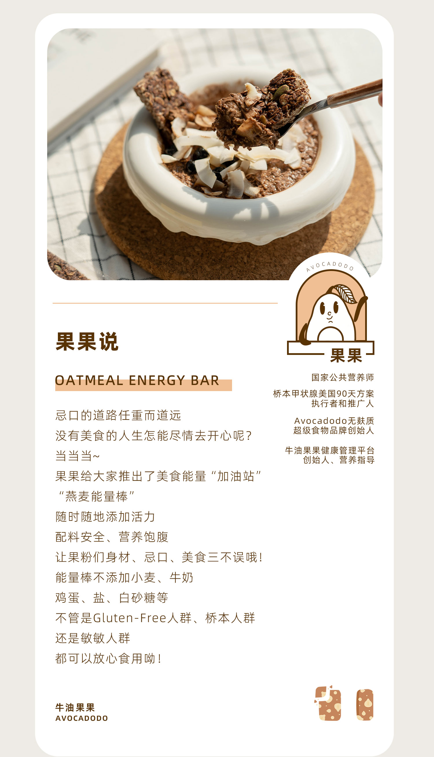 Avocadodo燕麦能量棒可可南瓜子不加小麦蛋奶敏宝牛油果果桥本
