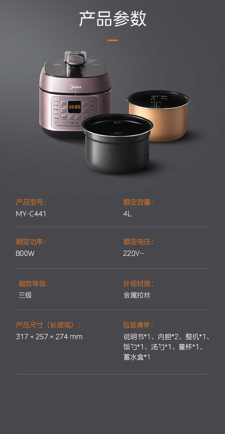 美的(510585)电压力锅 MY-C441 YLC441 800W 单台
