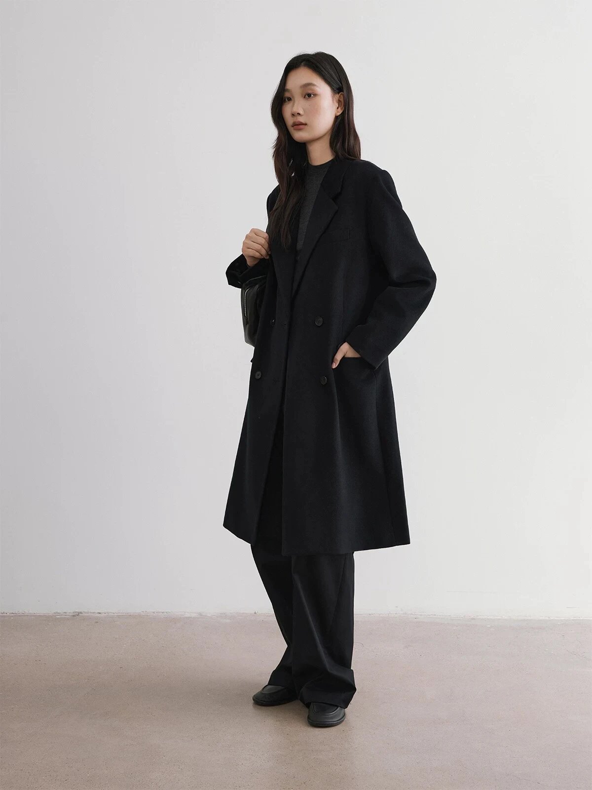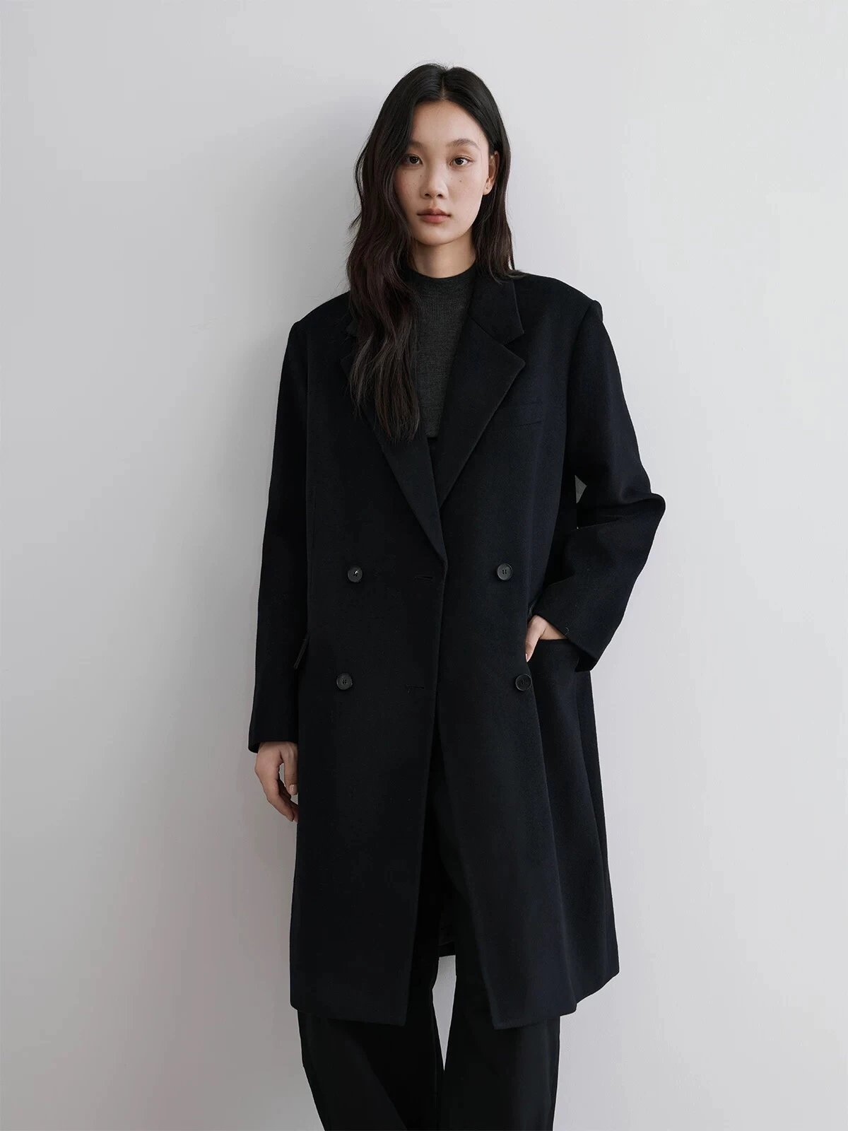 福利回馈 特价重磅 初剪羊毛西装领中长款大衣 超细羊毛呢气质西装大衣