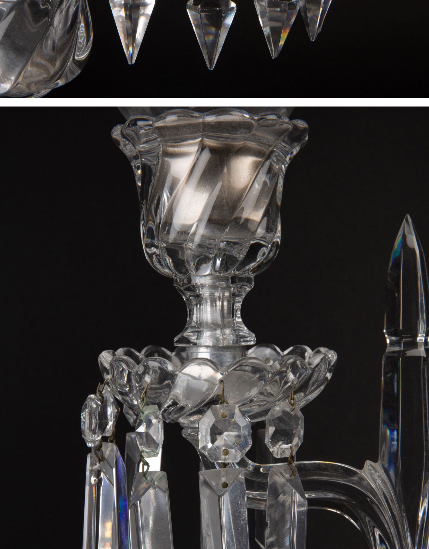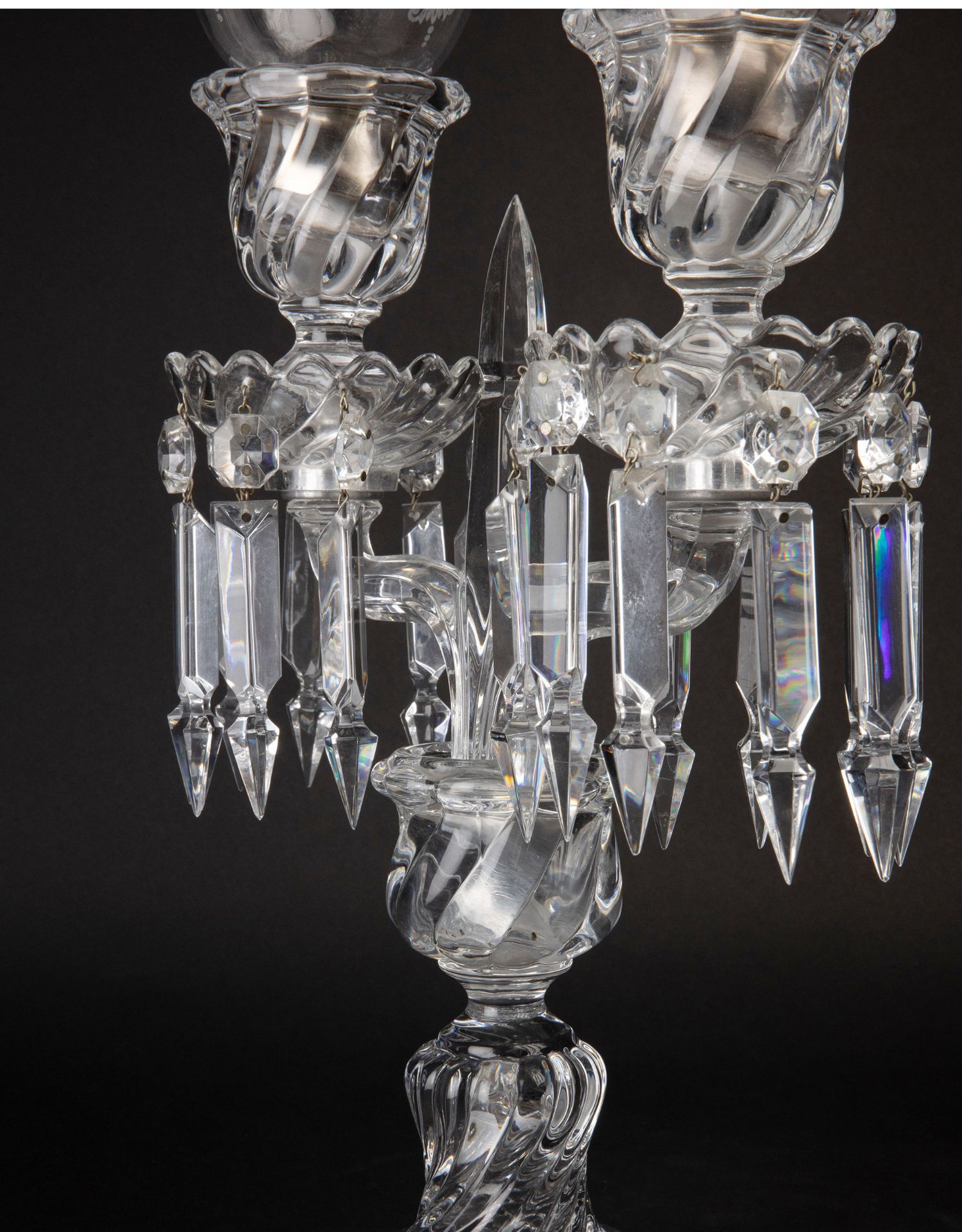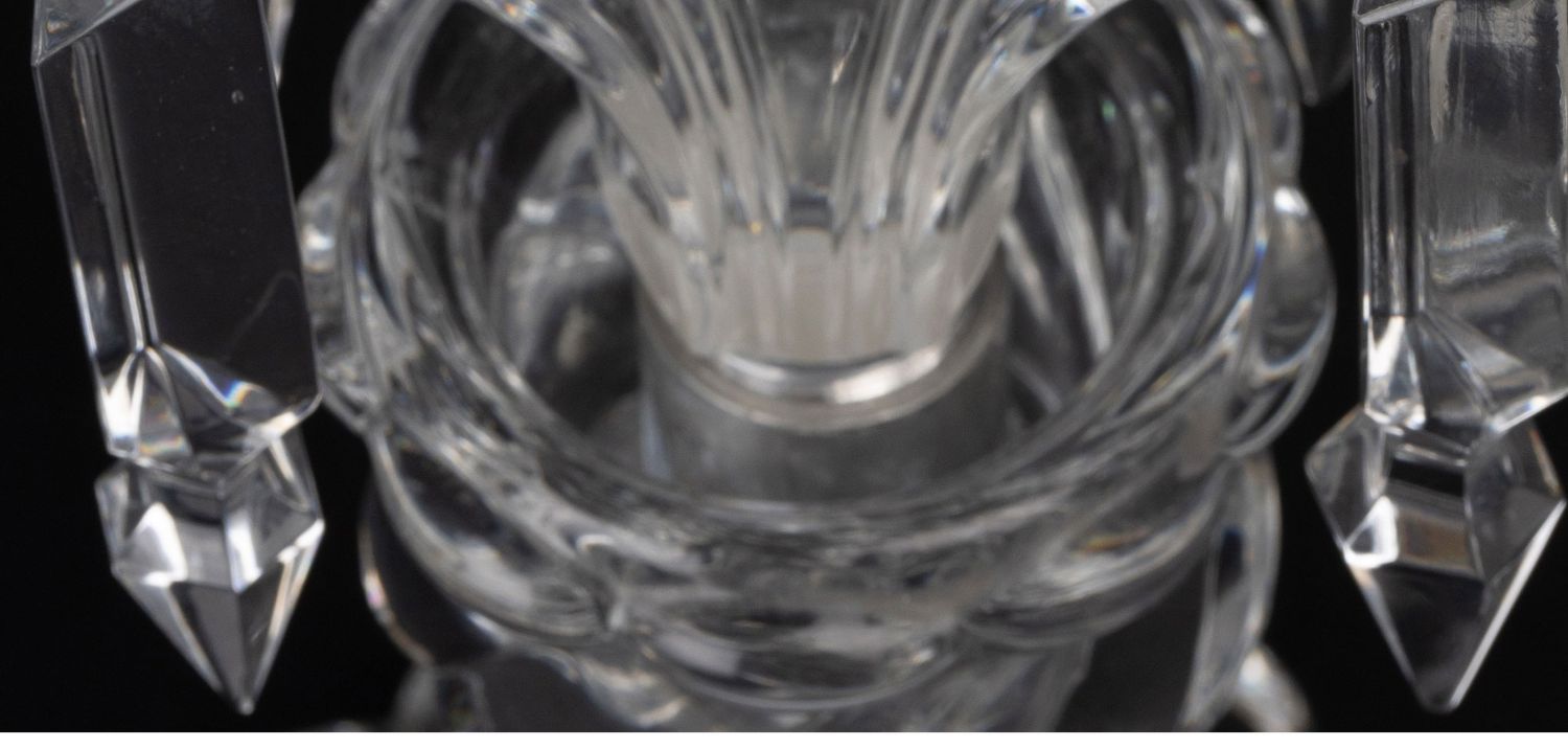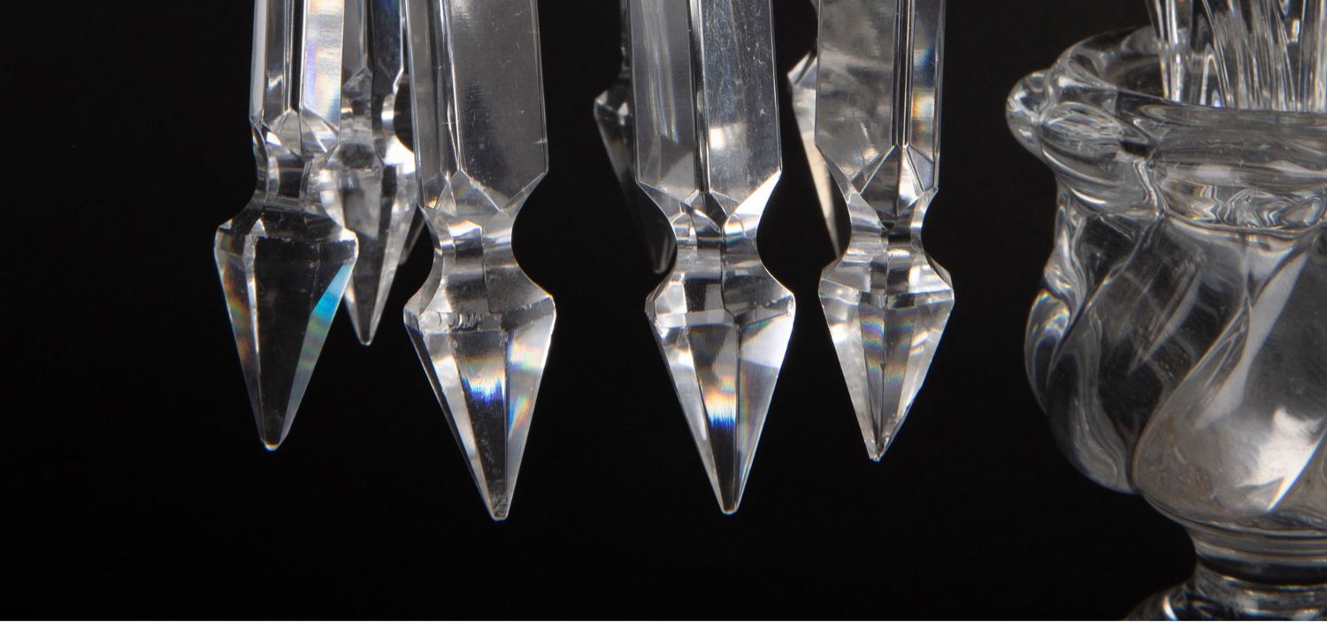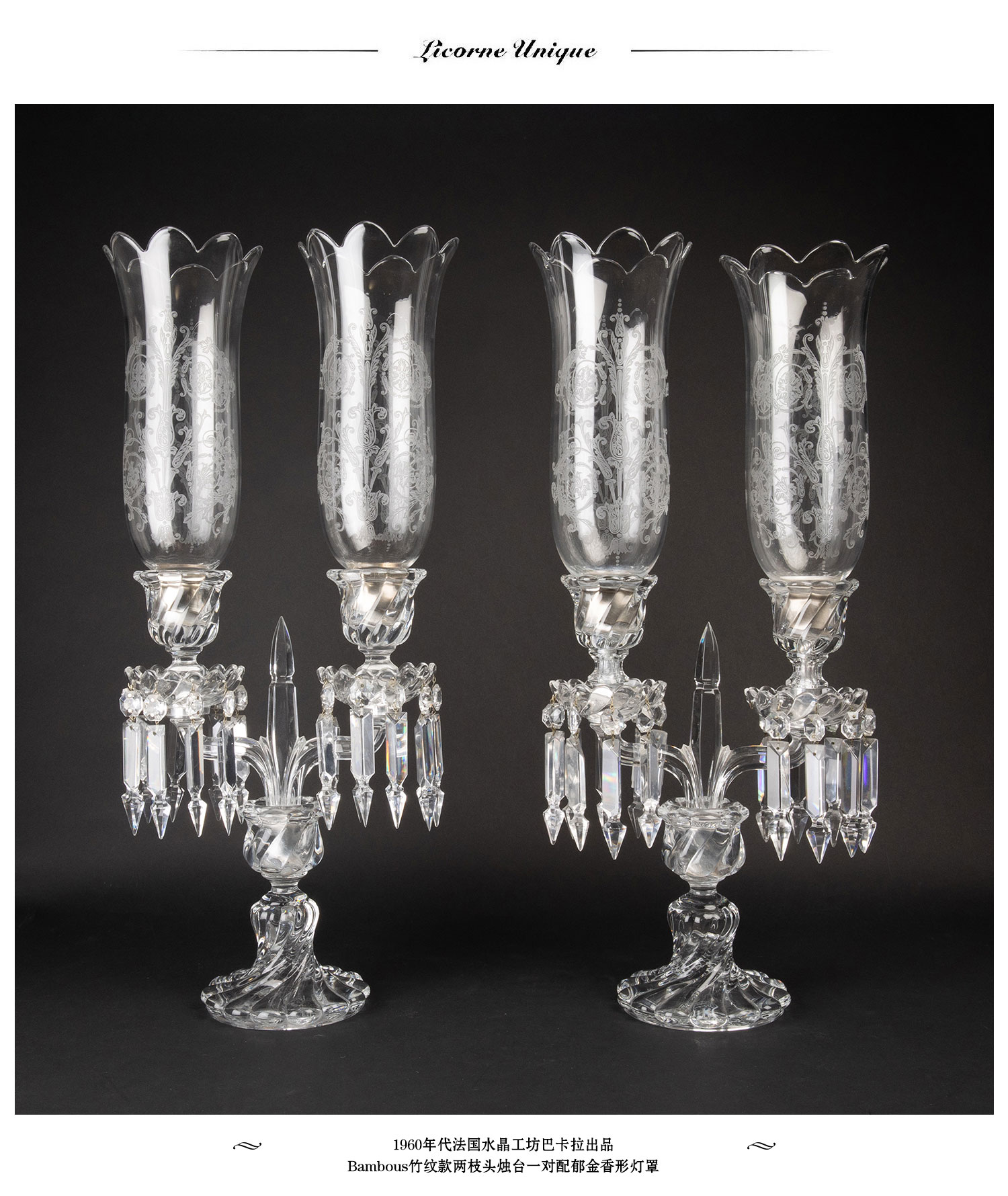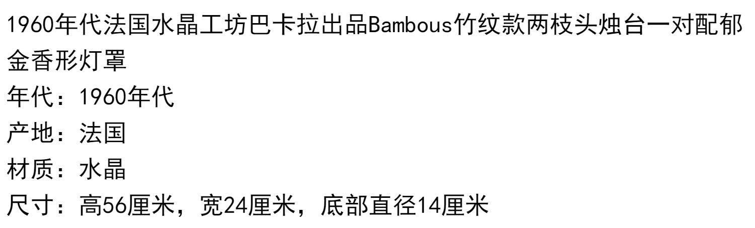 独角鹿西洋古董法国巴卡拉竹纹两枝头水晶烛台一对郁金香形灯罩