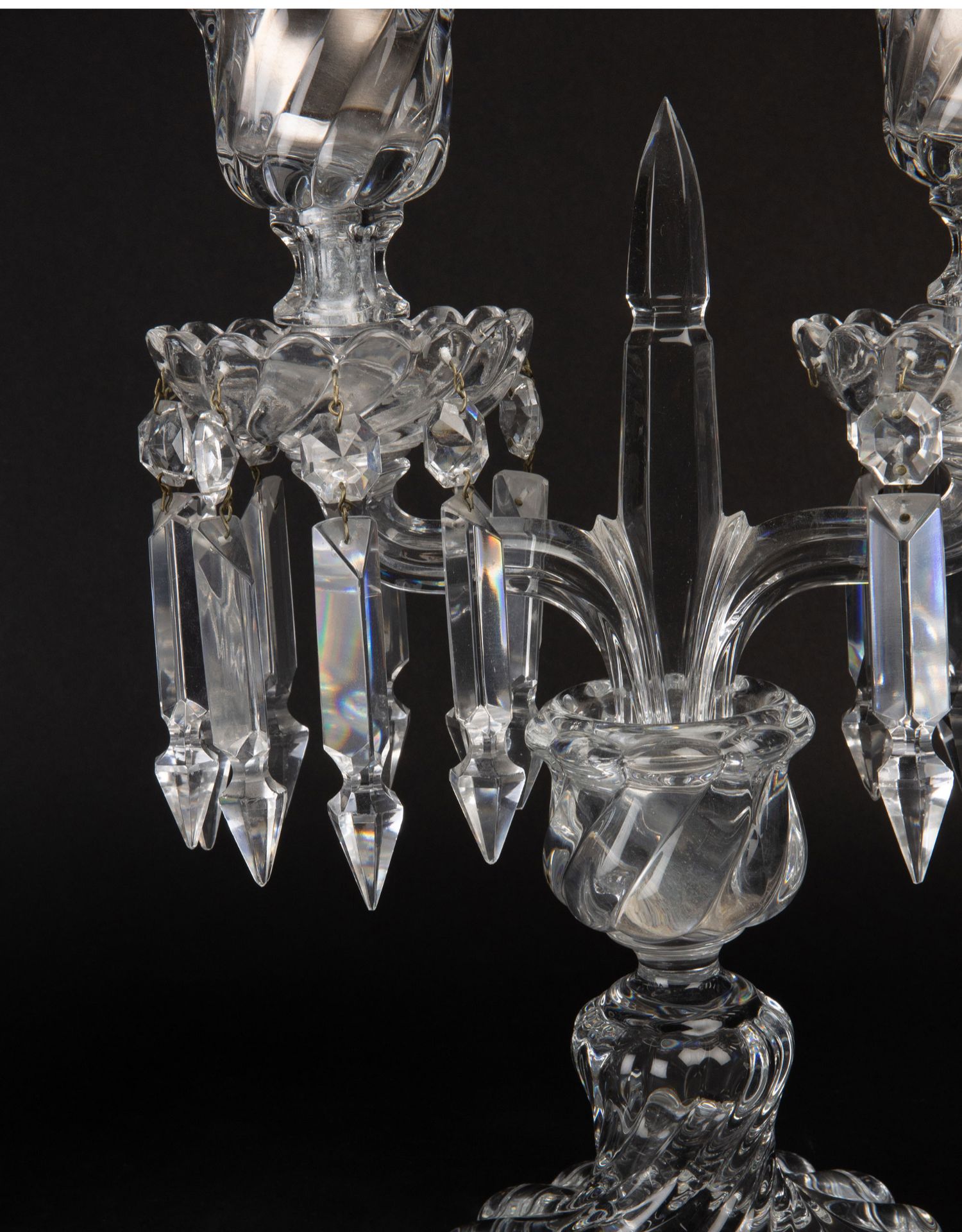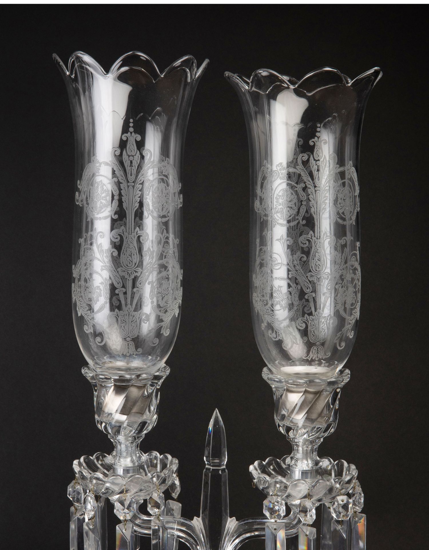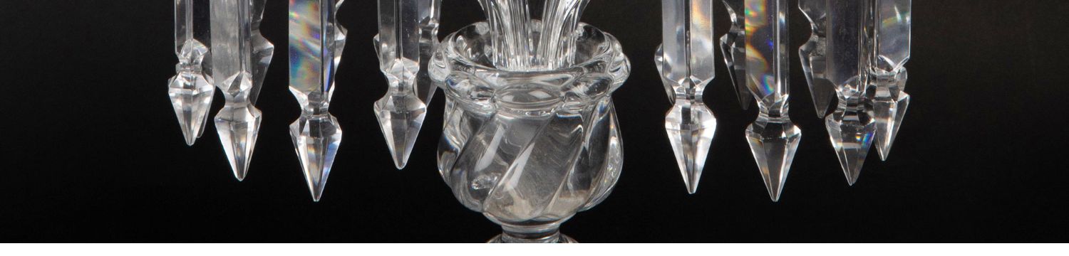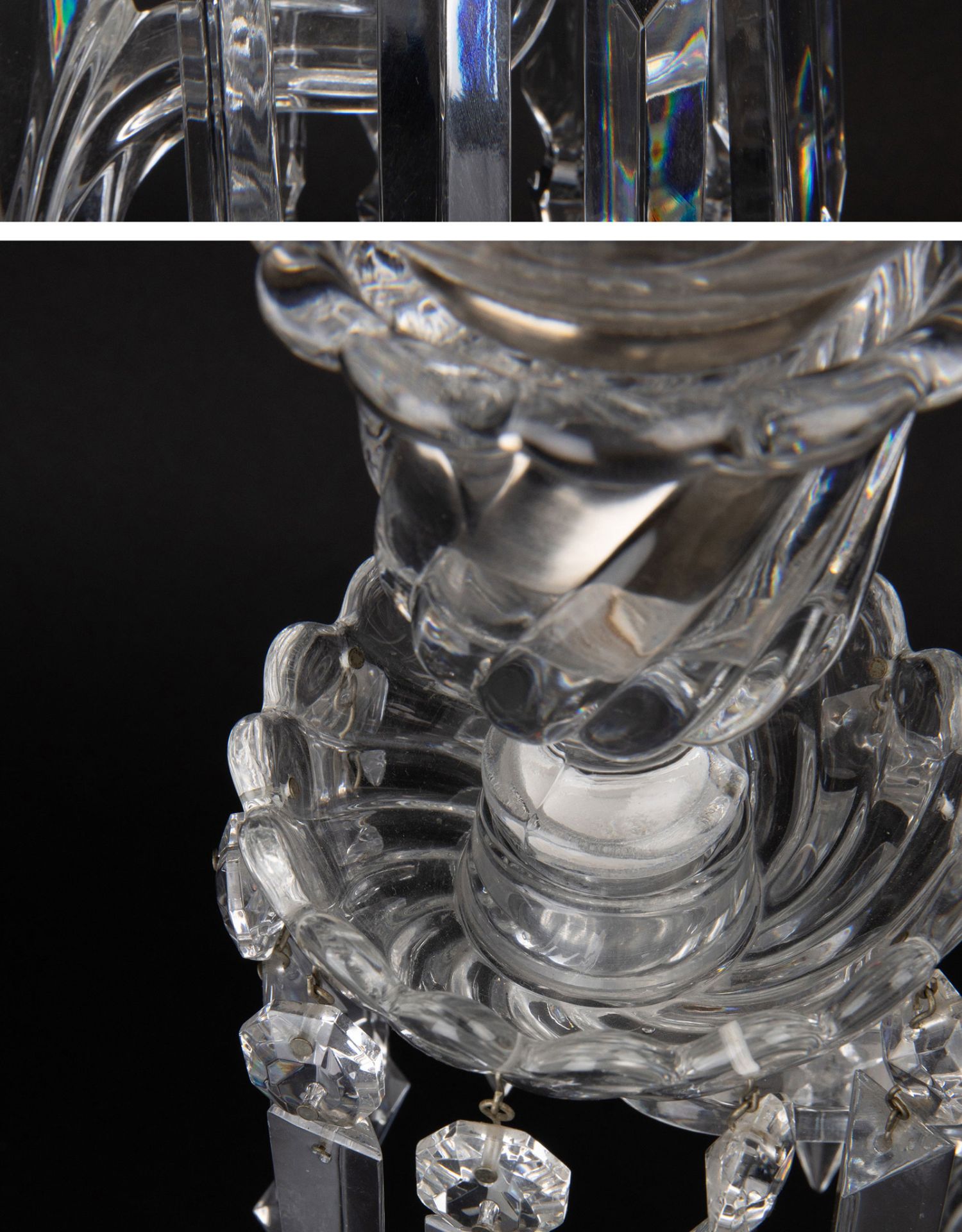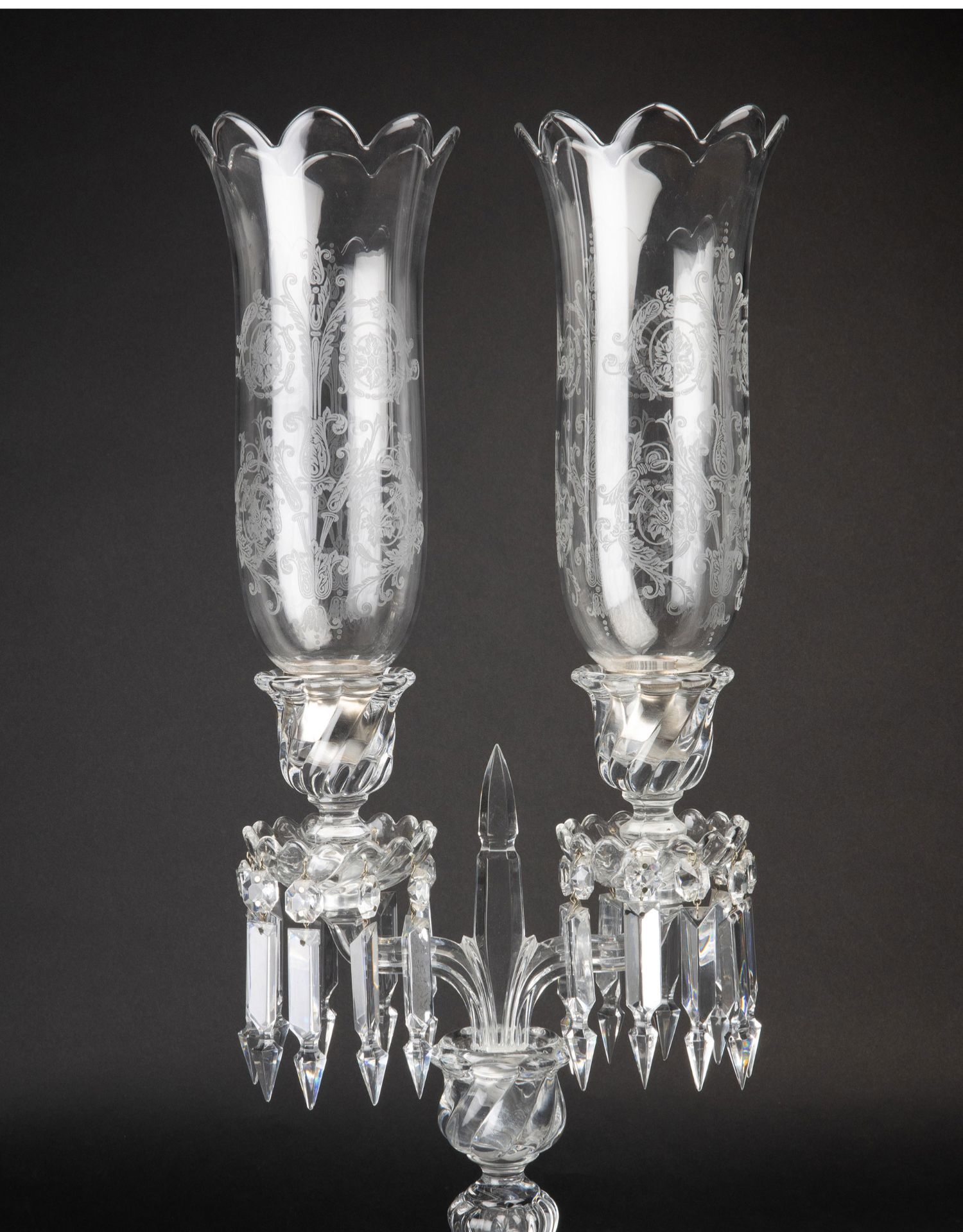 独角鹿西洋古董法国巴卡拉竹纹两枝头水晶烛台一对郁金香形灯罩