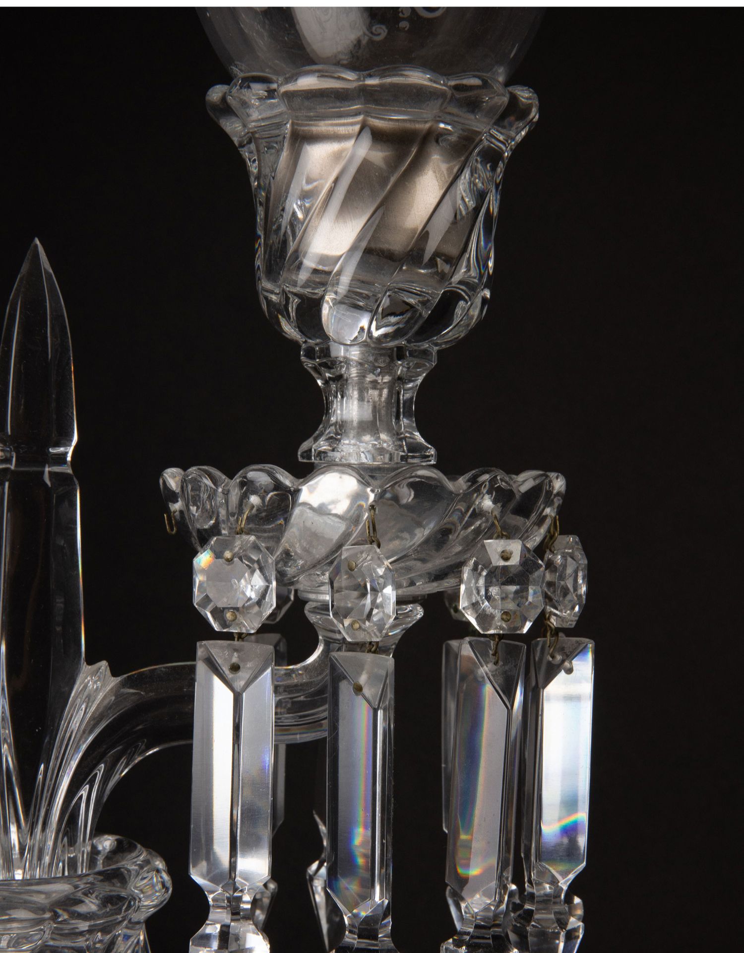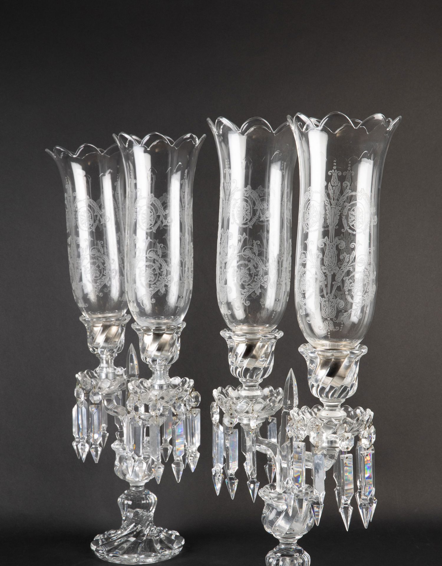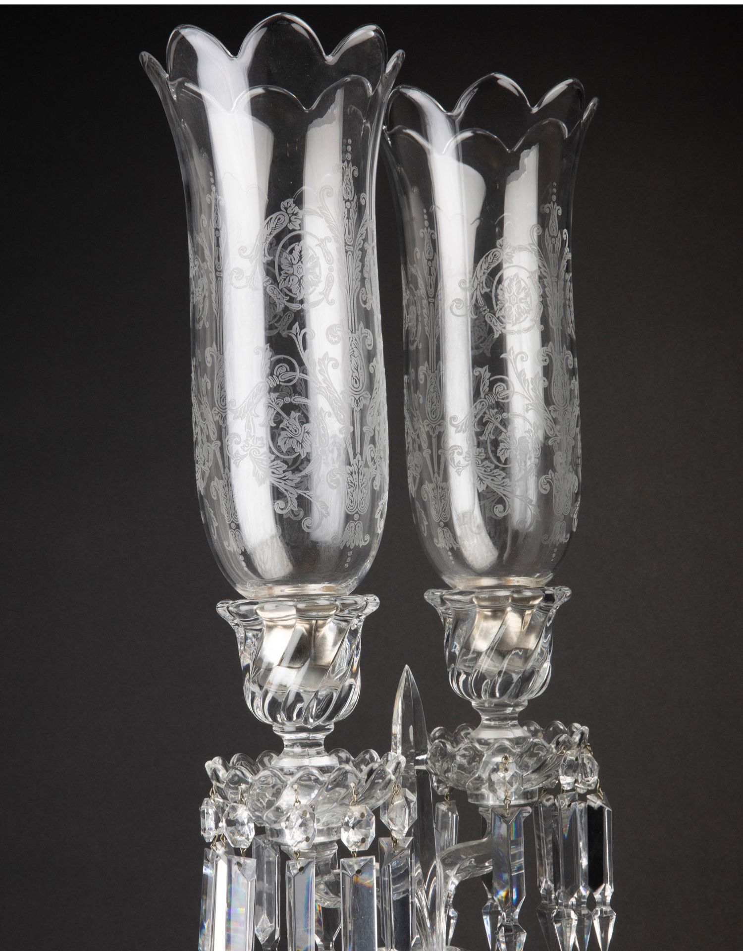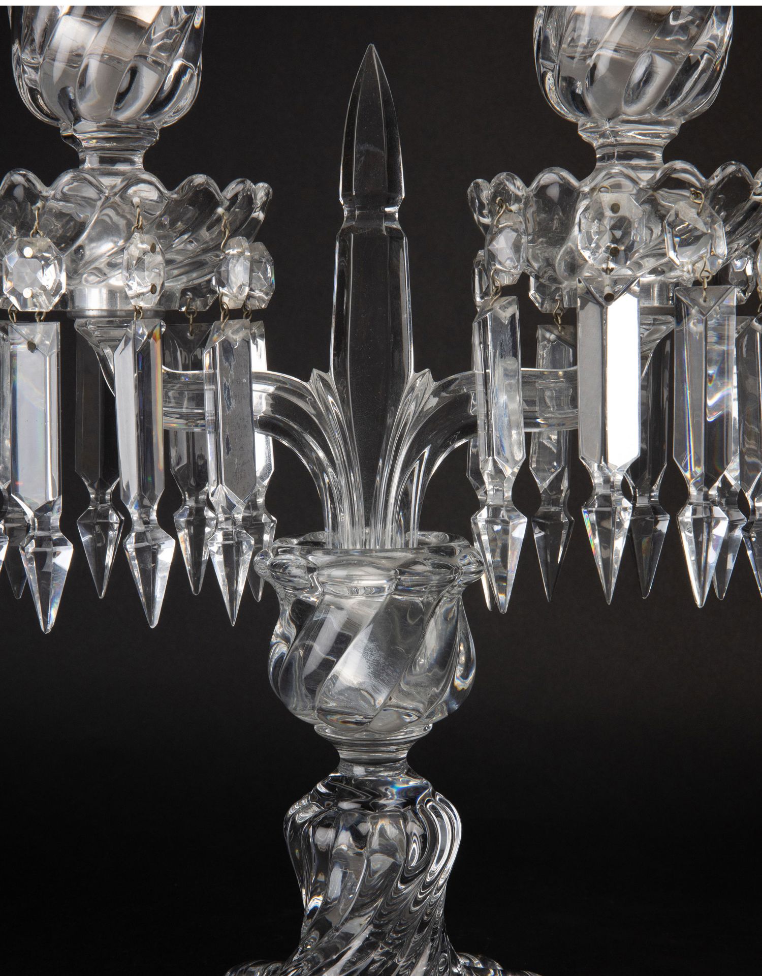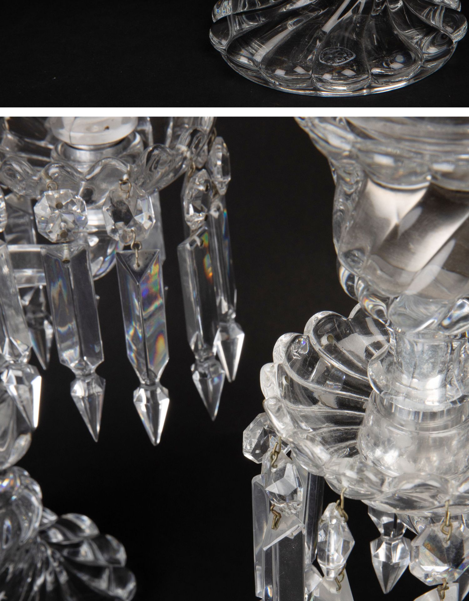 独角鹿西洋古董法国巴卡拉竹纹两枝头水晶烛台一对郁金香形灯罩