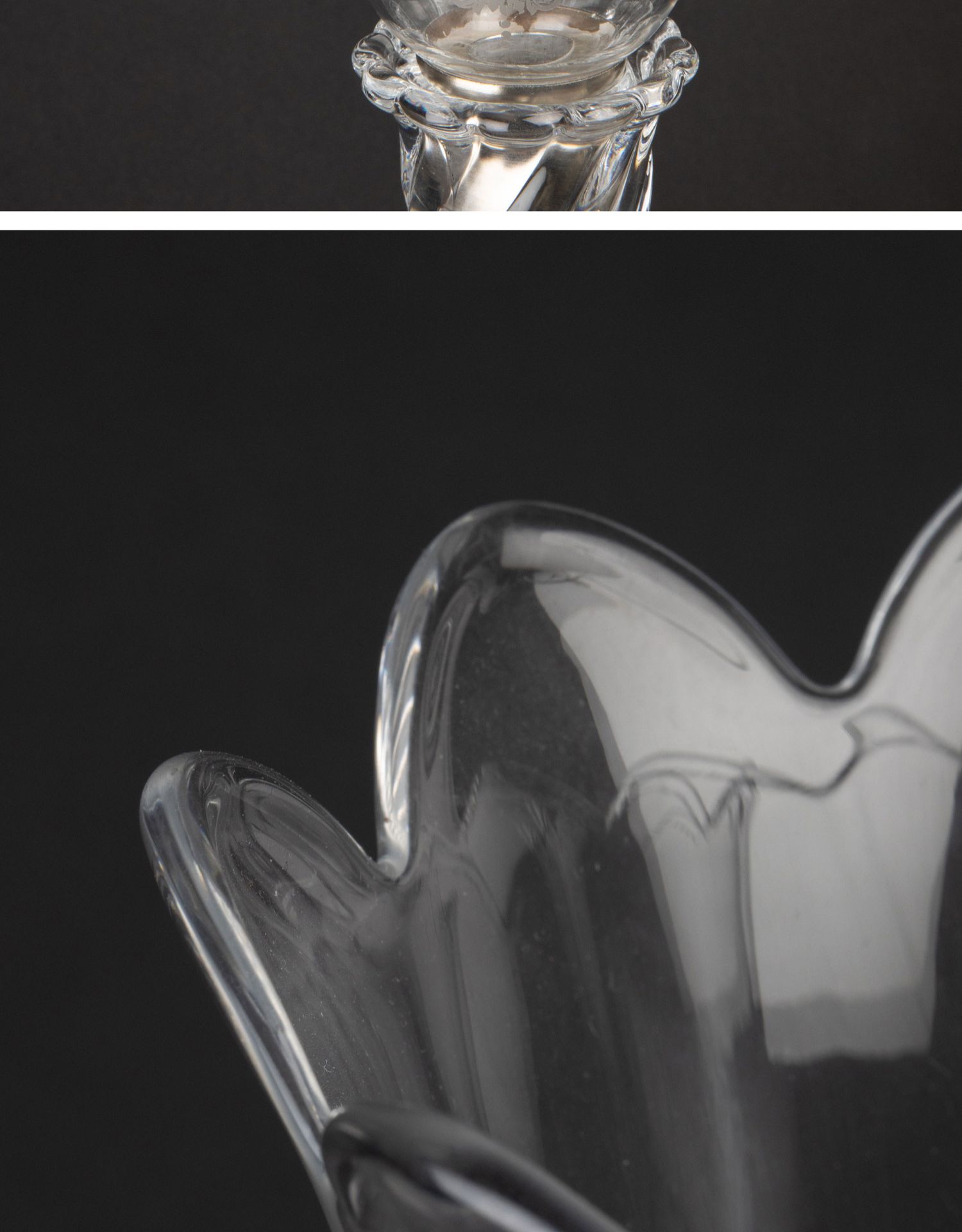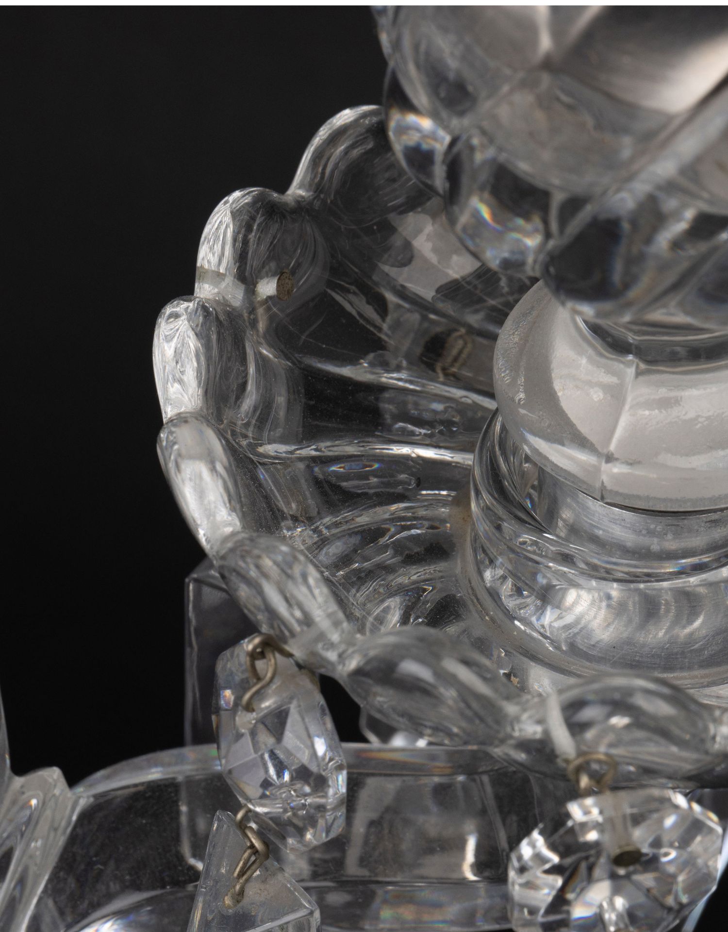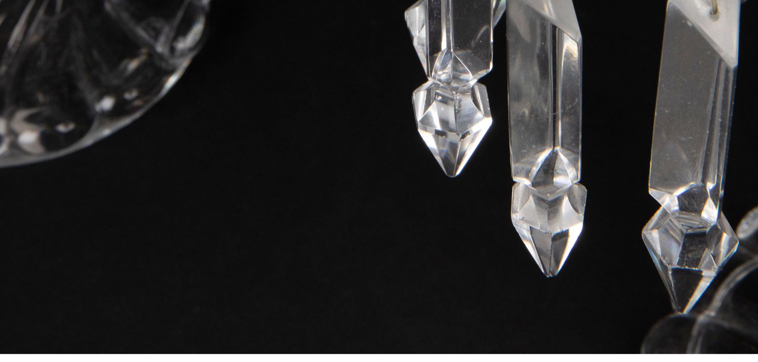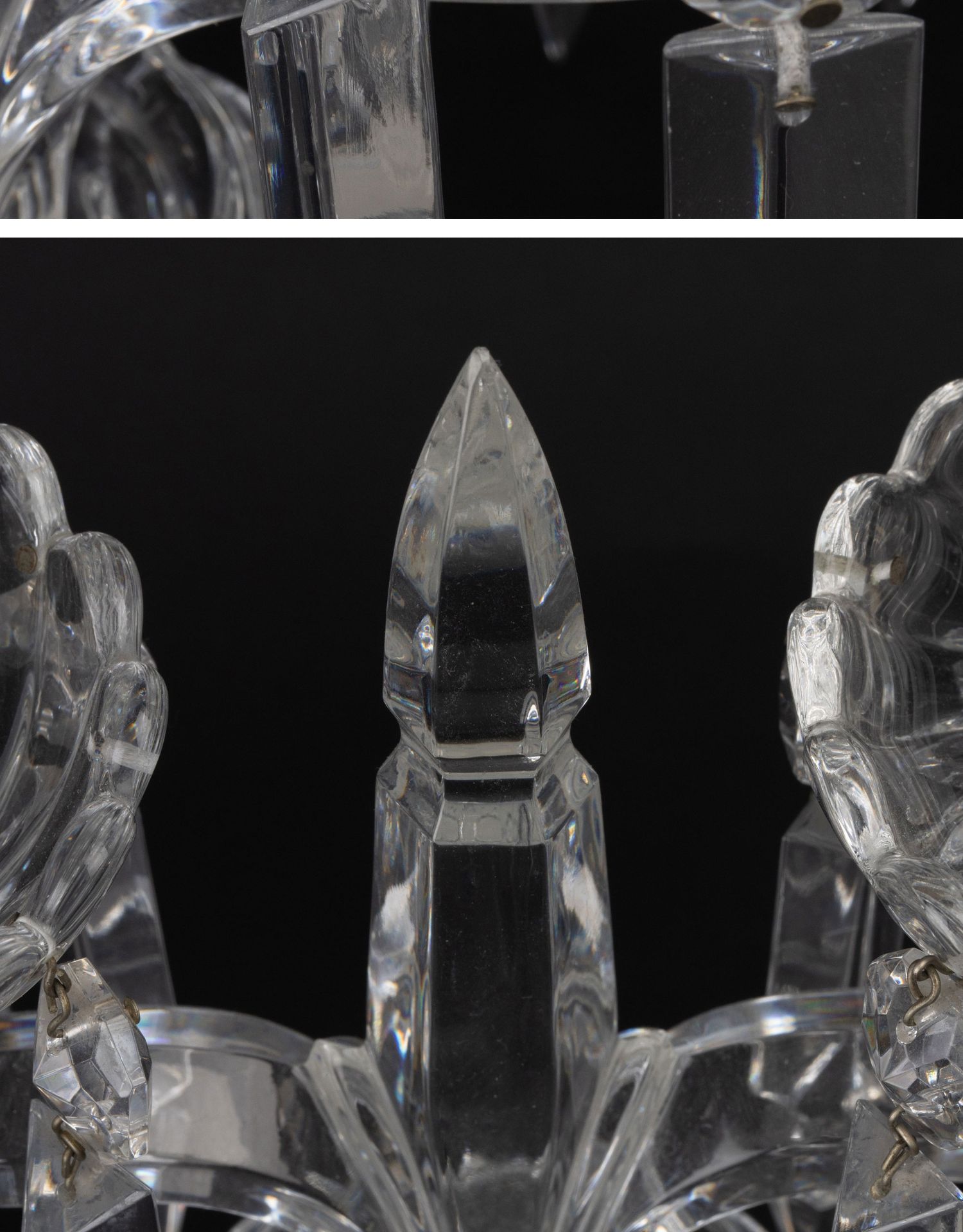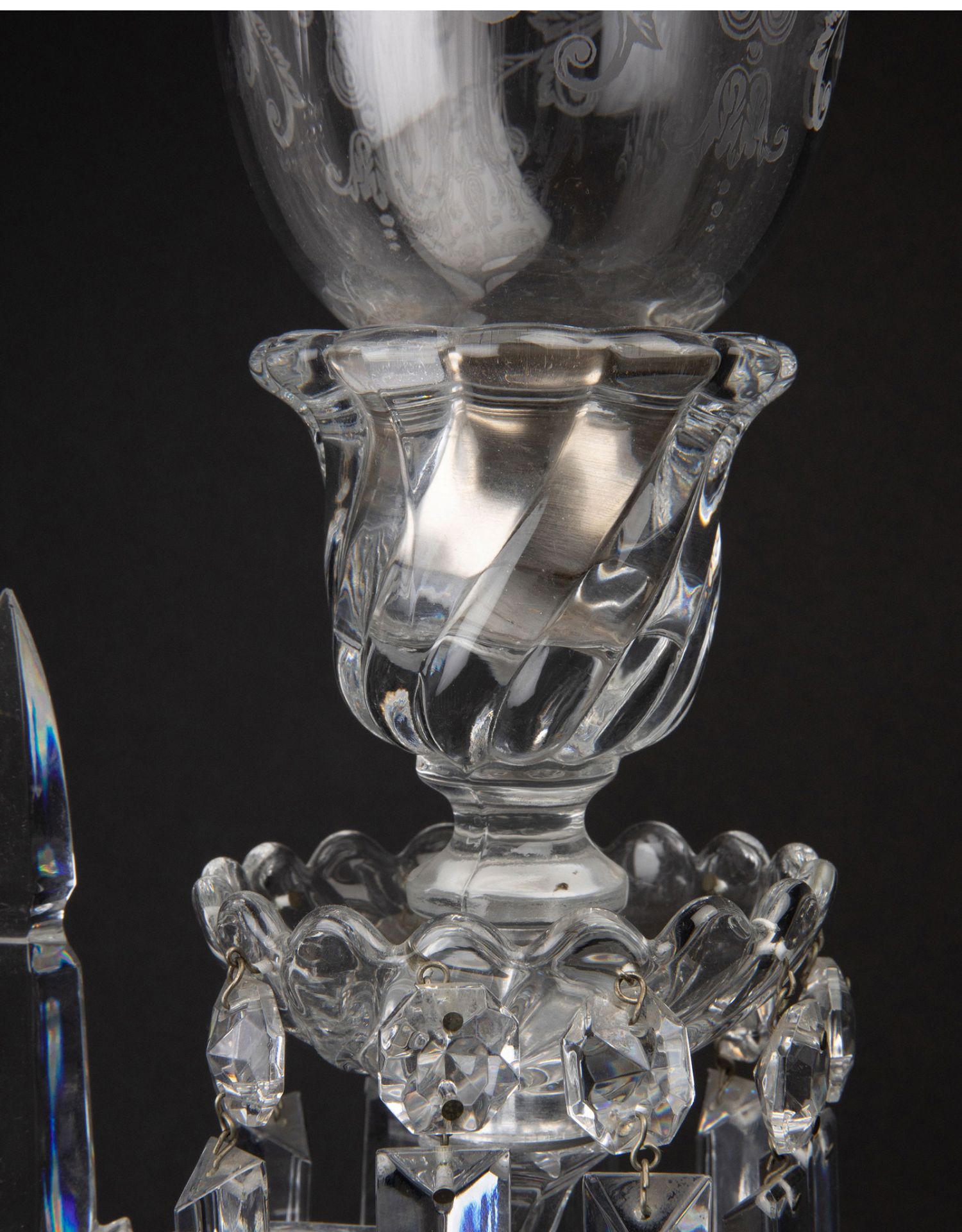 独角鹿西洋古董法国巴卡拉竹纹两枝头水晶烛台一对郁金香形灯罩