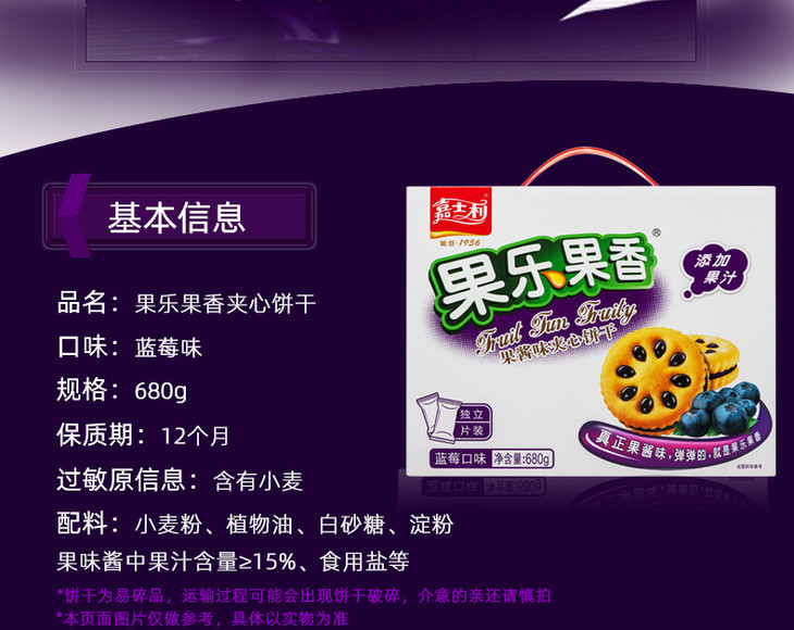 嘉士利果乐果香蓝莓味夹心饼干680g
