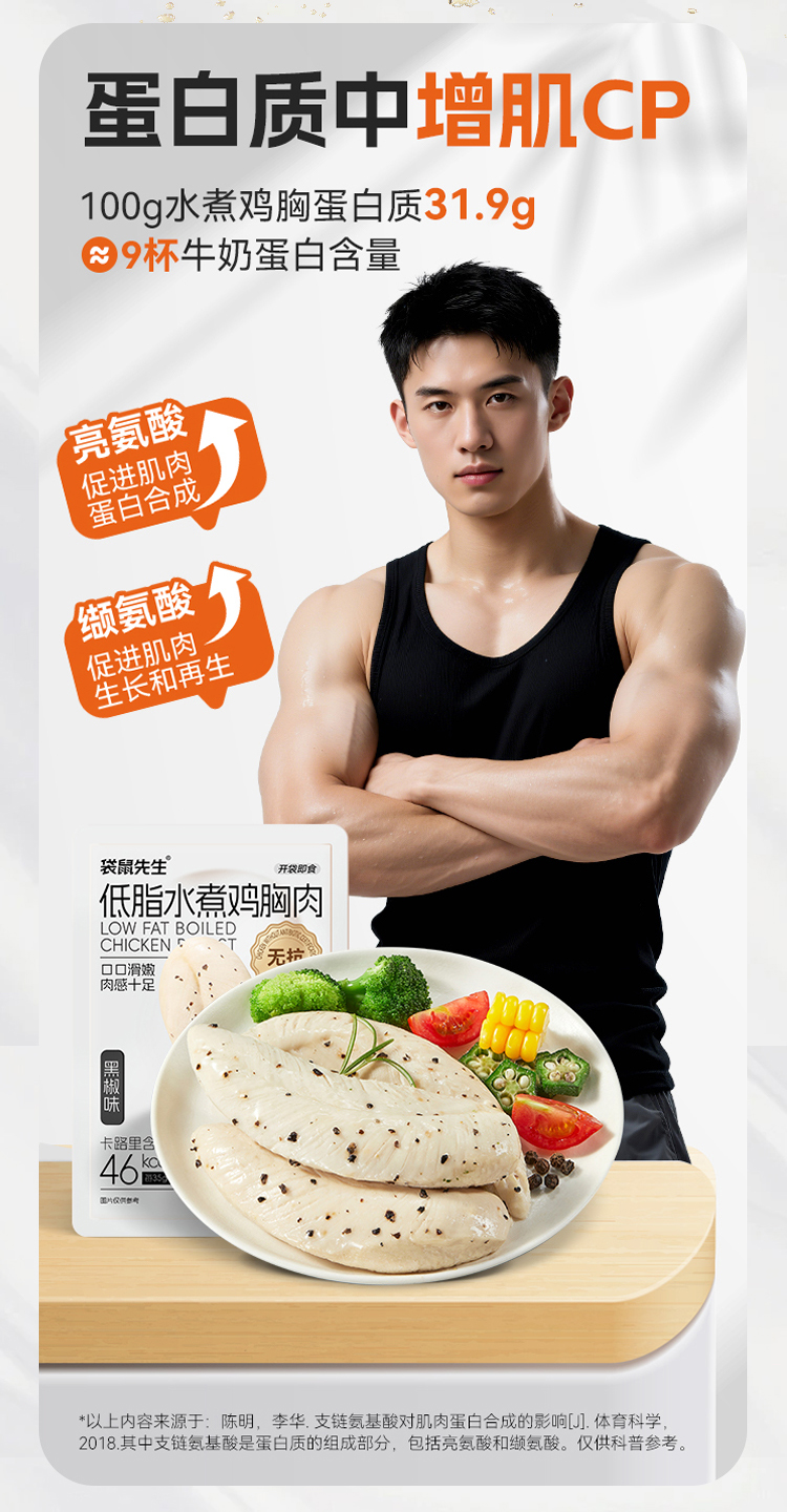 【袋鼠先生】新品低脂无抗生素水煮鸡胸40g