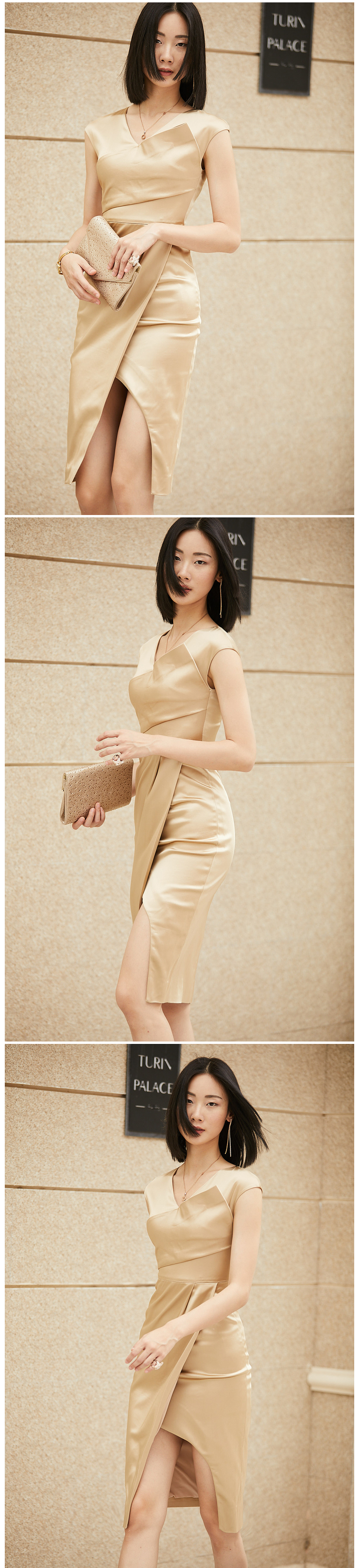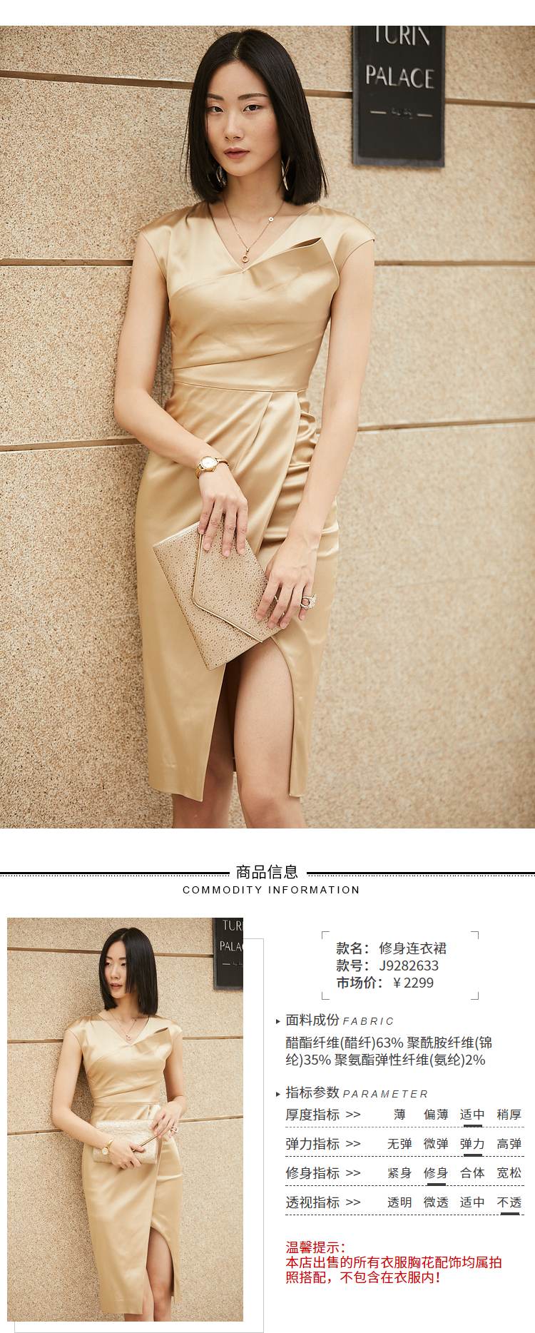 孤品 J9282633颈袖添香季新款修身显瘦女装御姐风气质包臀醋酸缎面连衣裙J9282633