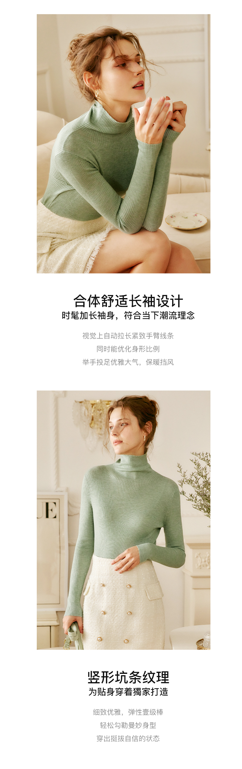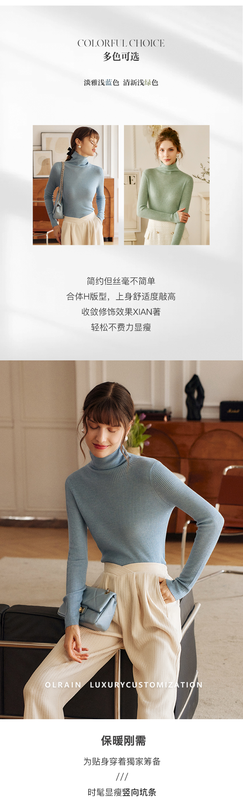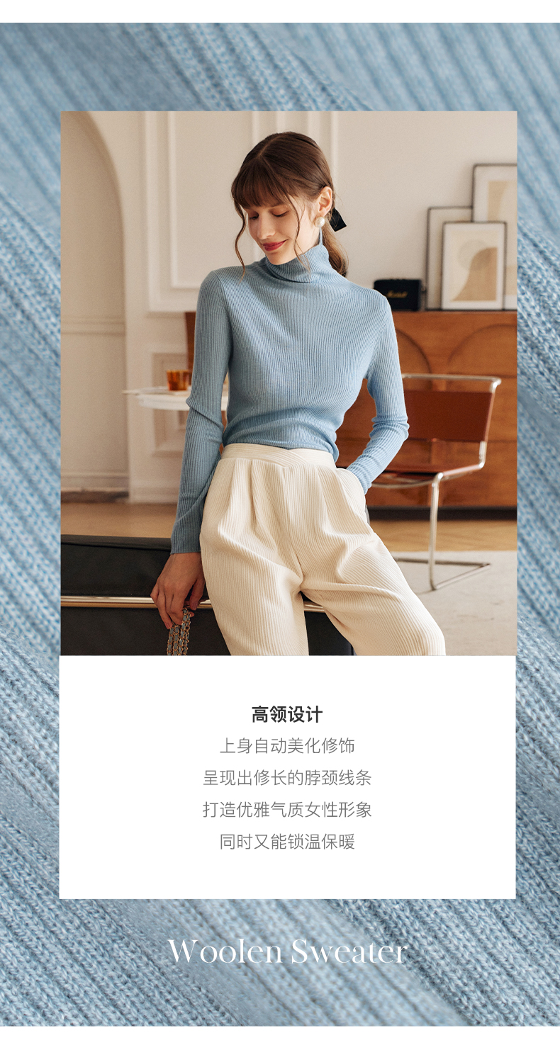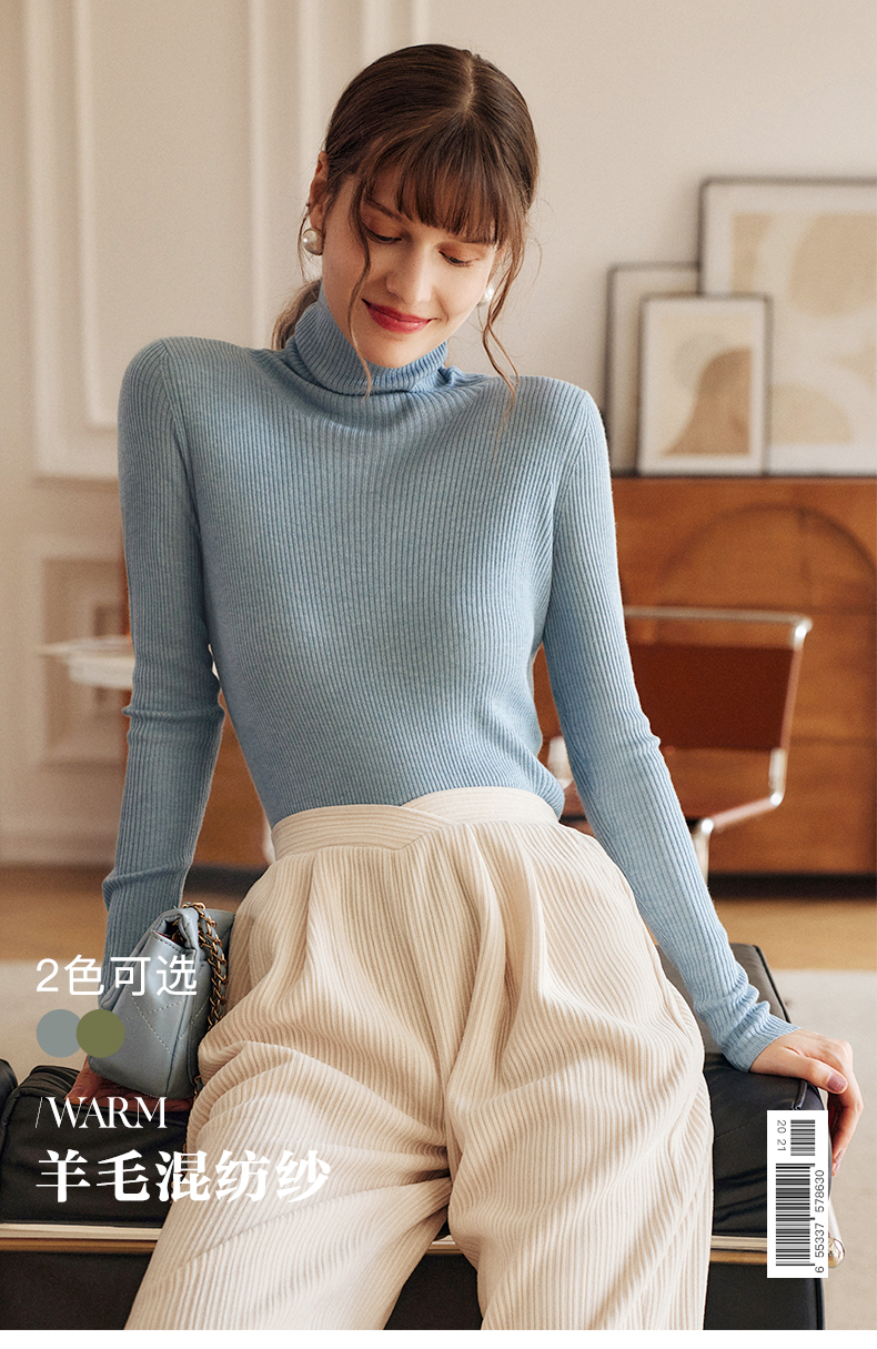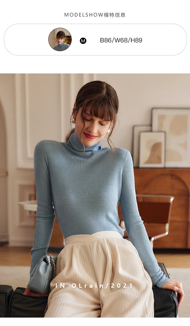 欧芮儿高领毛衣女春季新款2025修身显瘦羊毛内搭针织打底纯色上衣