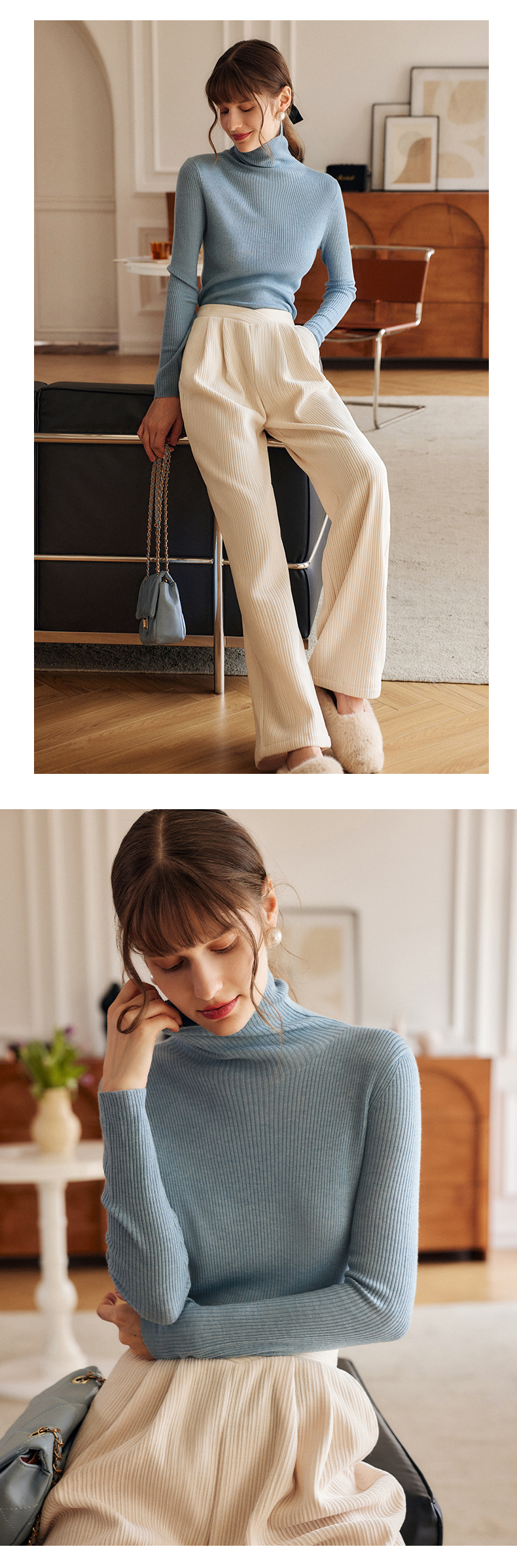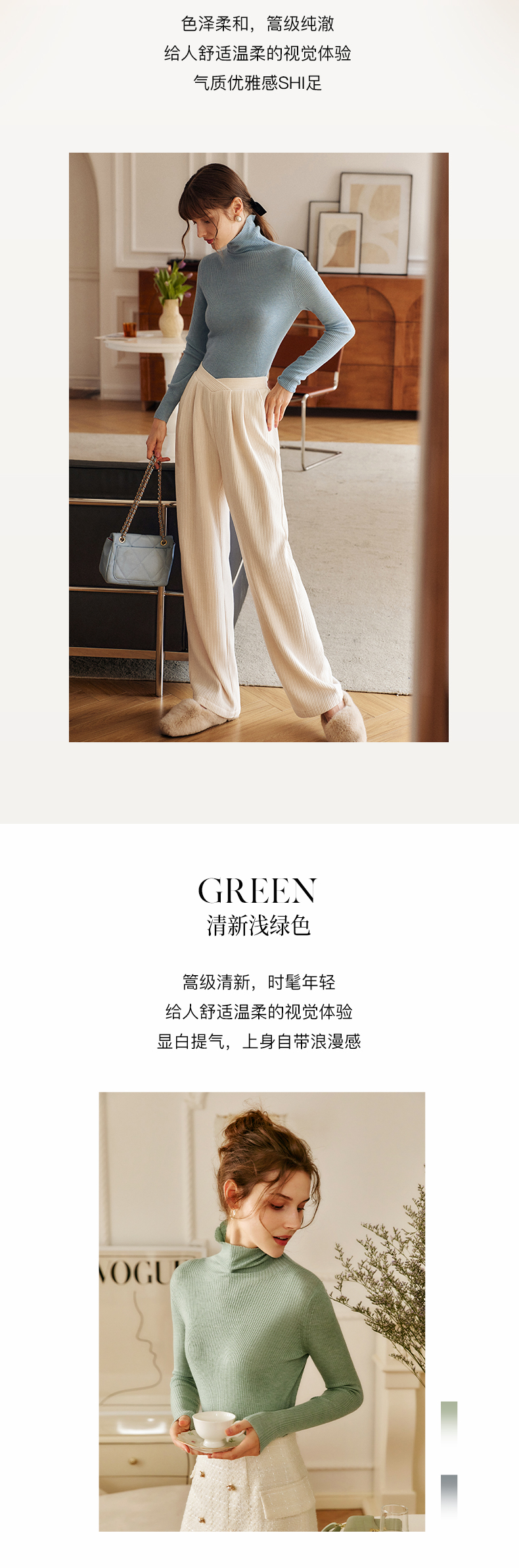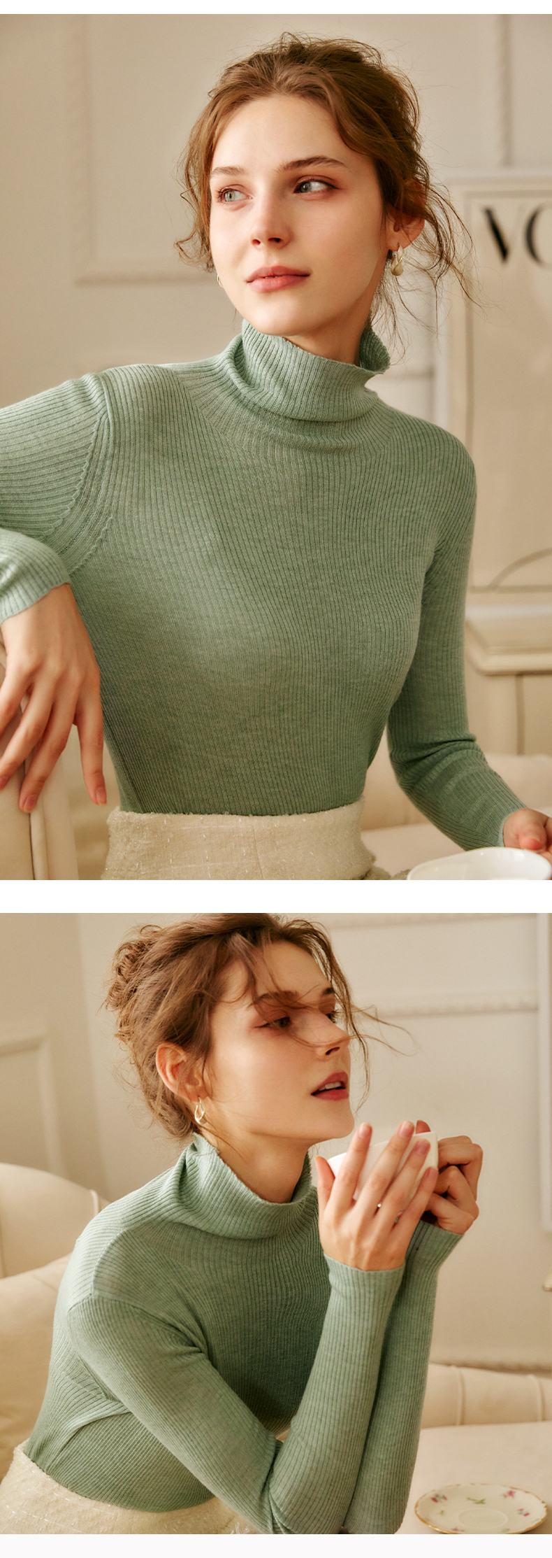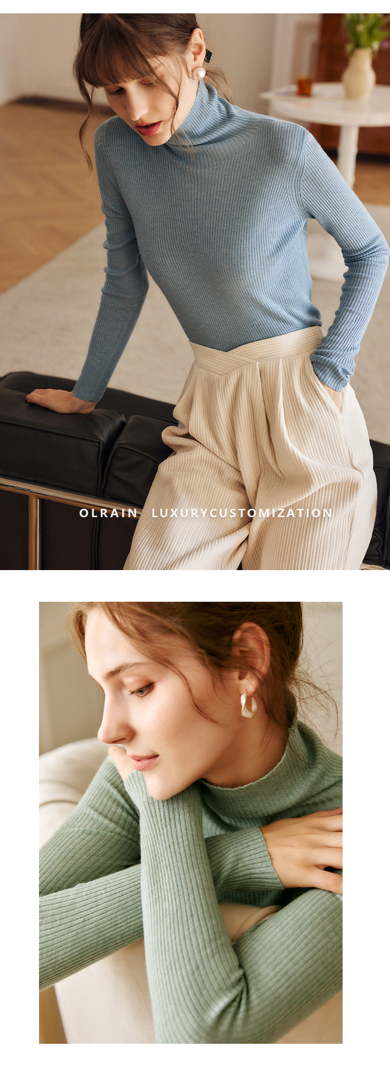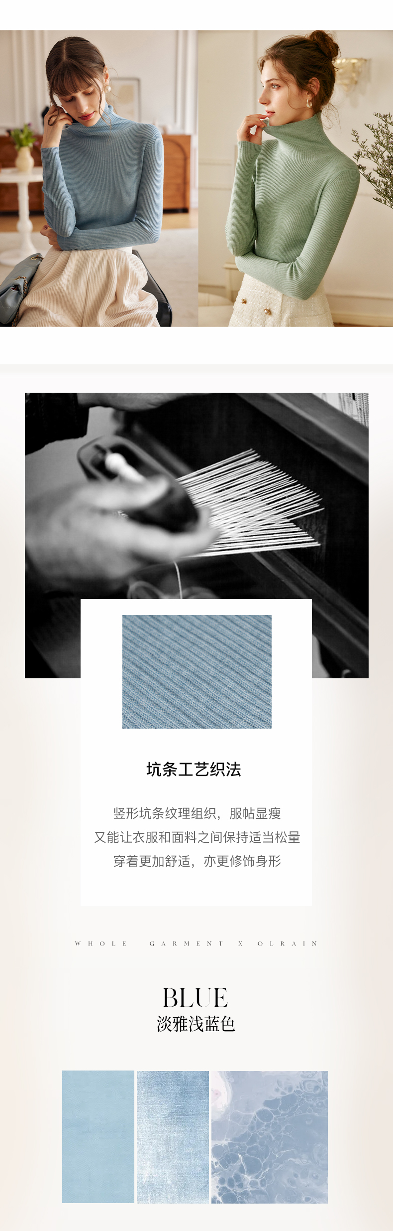欧芮儿高领毛衣女春季新款2025修身显瘦羊毛内搭针织打底纯色上衣