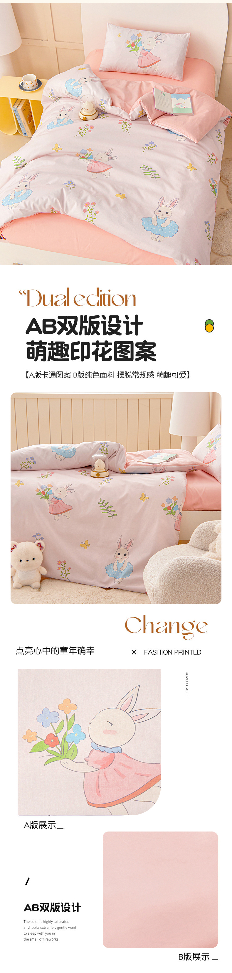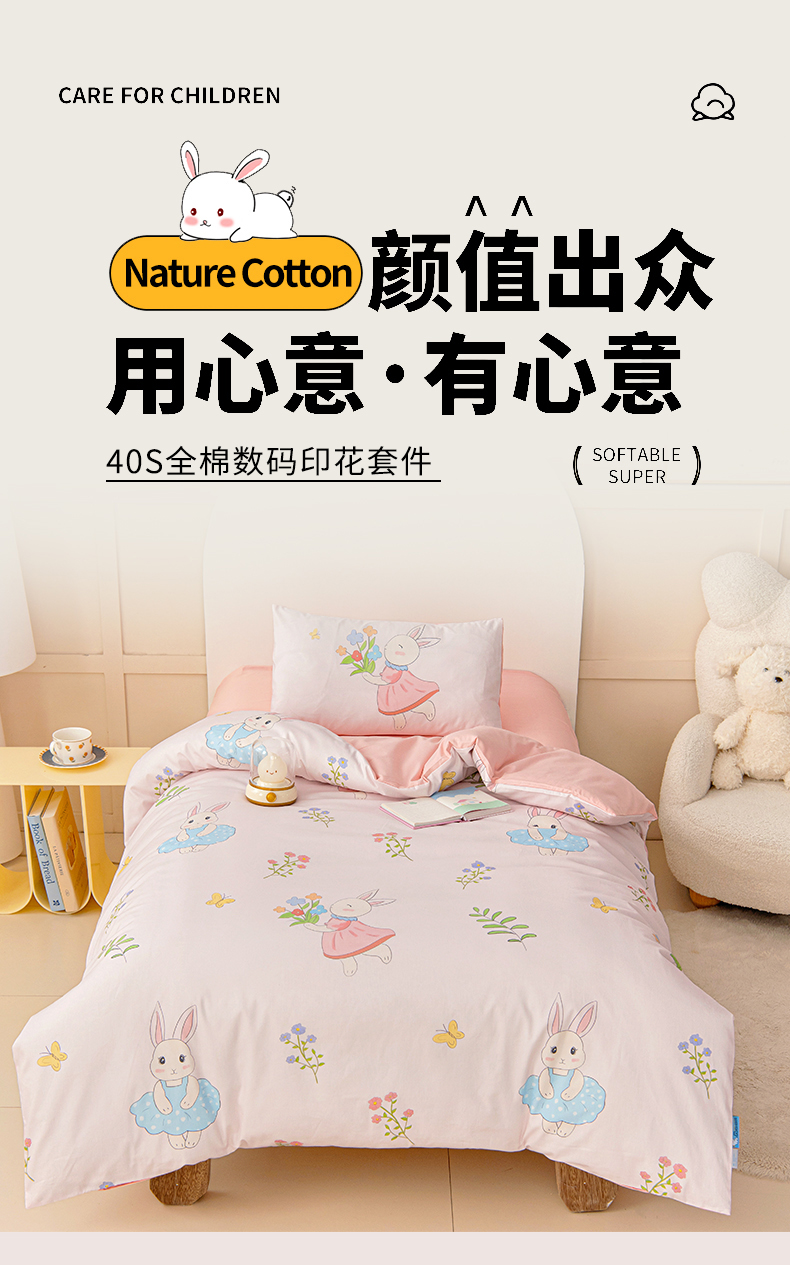小象咘叮 A类全棉纯棉40支数码印花幼儿园入园三件套 17色可选