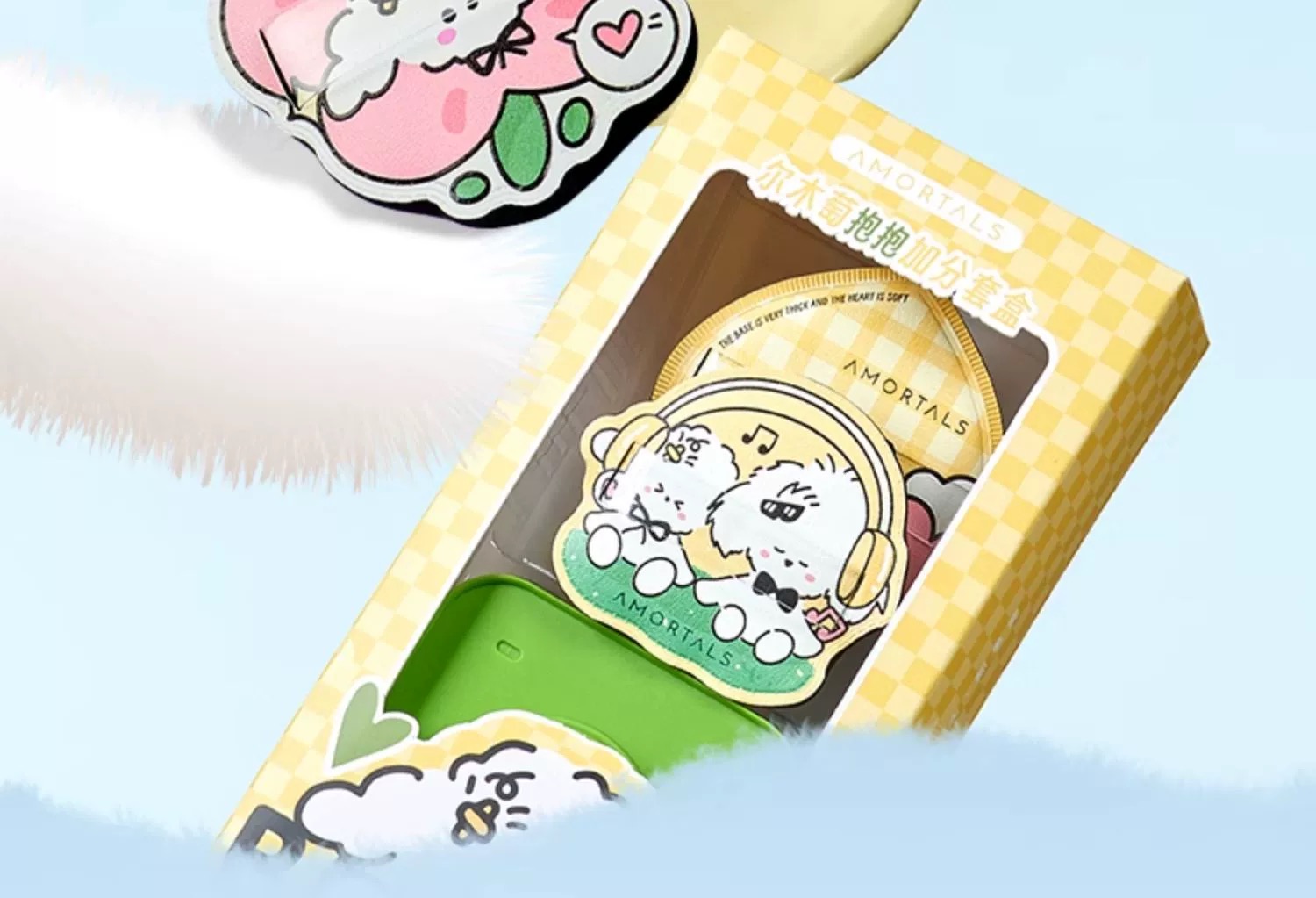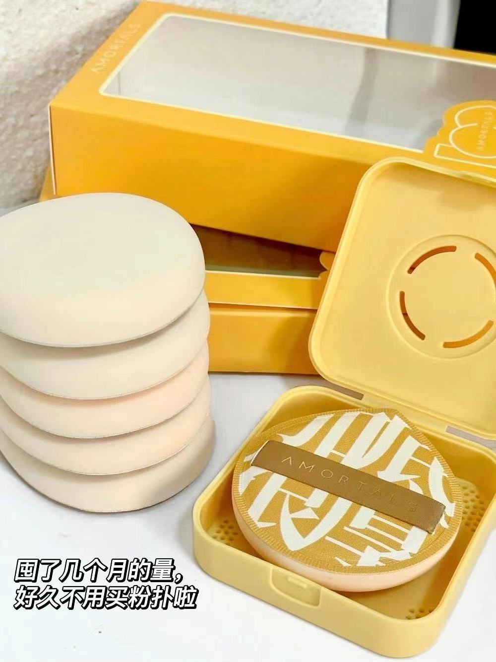 尔木萄100分粉扑 /抱抱修狗 超软不吃粉美妆蛋棉花糖粉扑套盒 2个粉扑带收纳盒