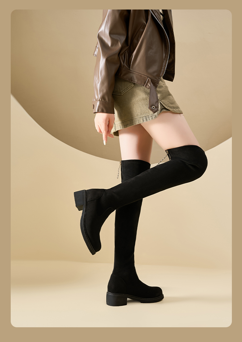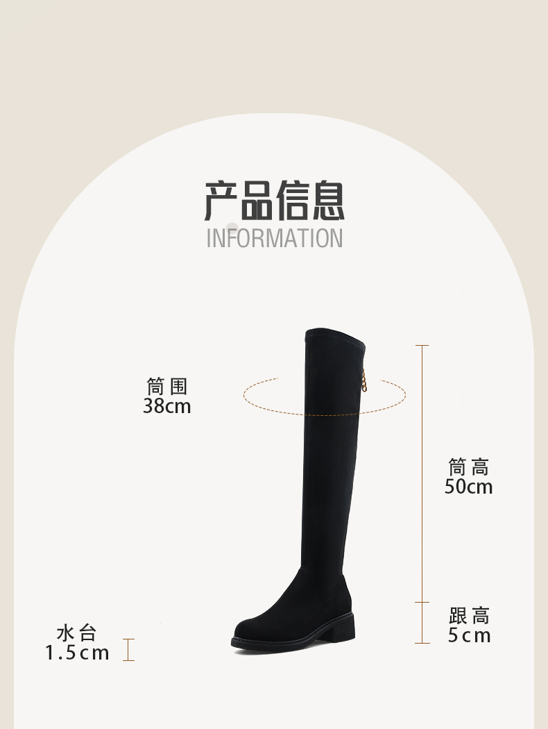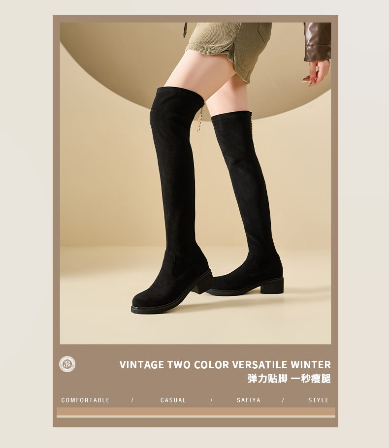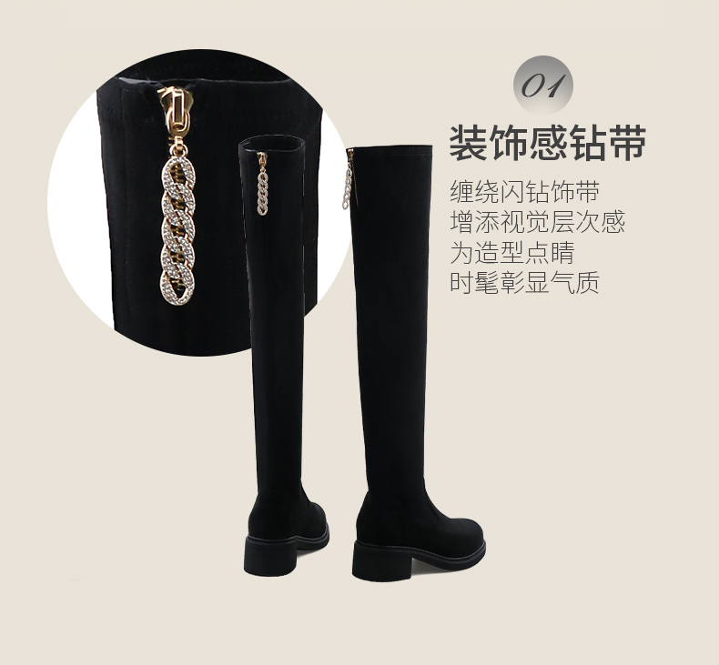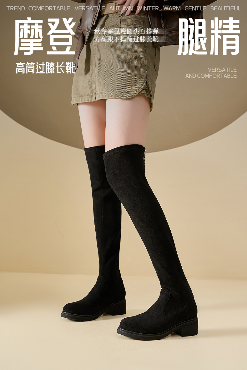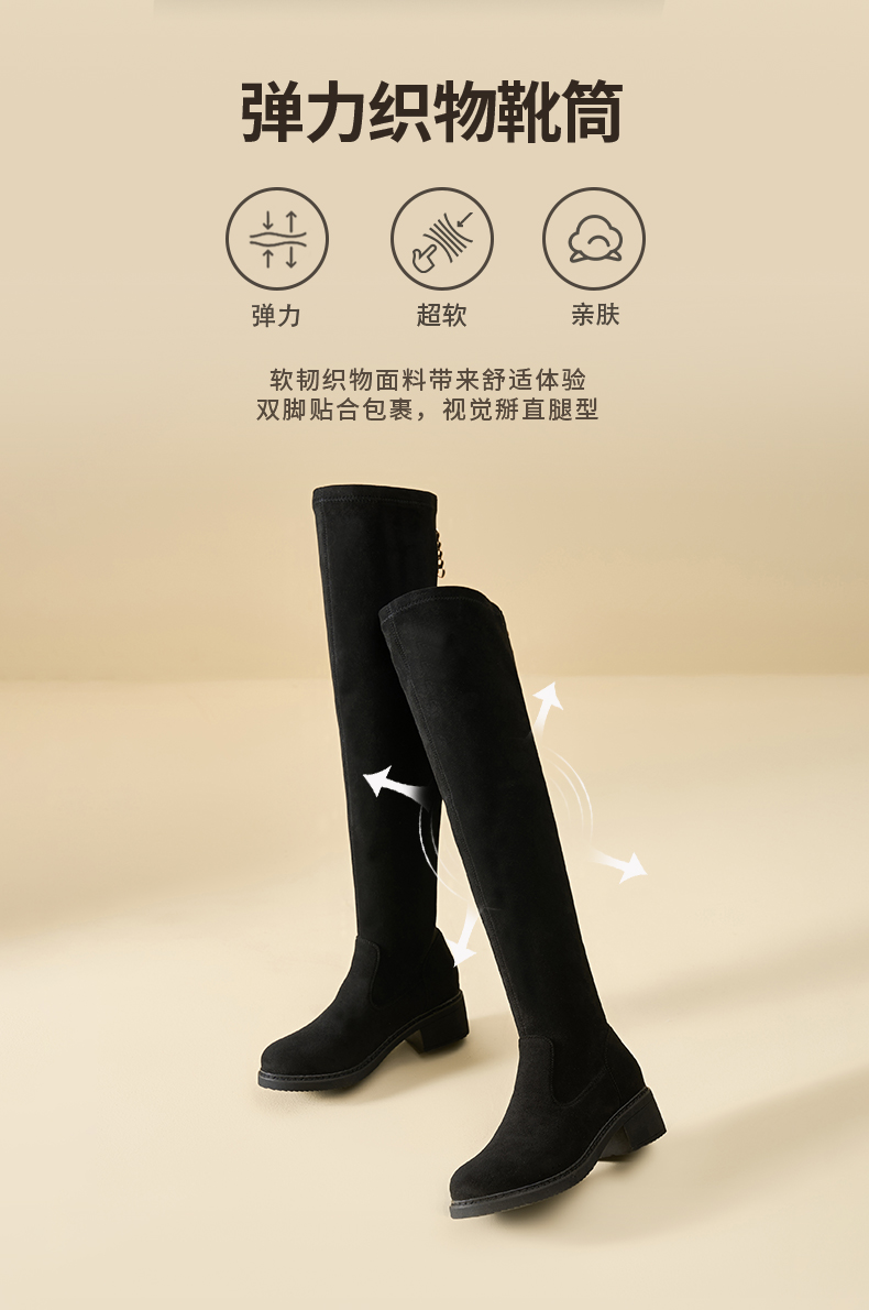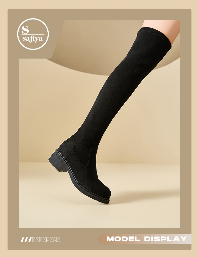 Safiya/索菲娅秋冬显瘦圆头百搭弹力高跟不掉筒过膝长靴 SF44117097 /SF44119097