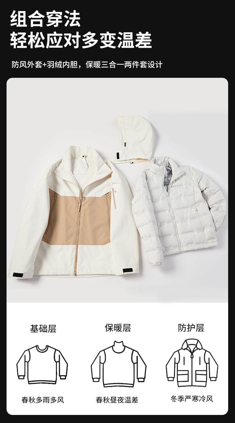 【热销爆款】羽绒三合一冲锋衣|-25℃极寒防护|90%白鸭绒填充|BS9808YR-LY