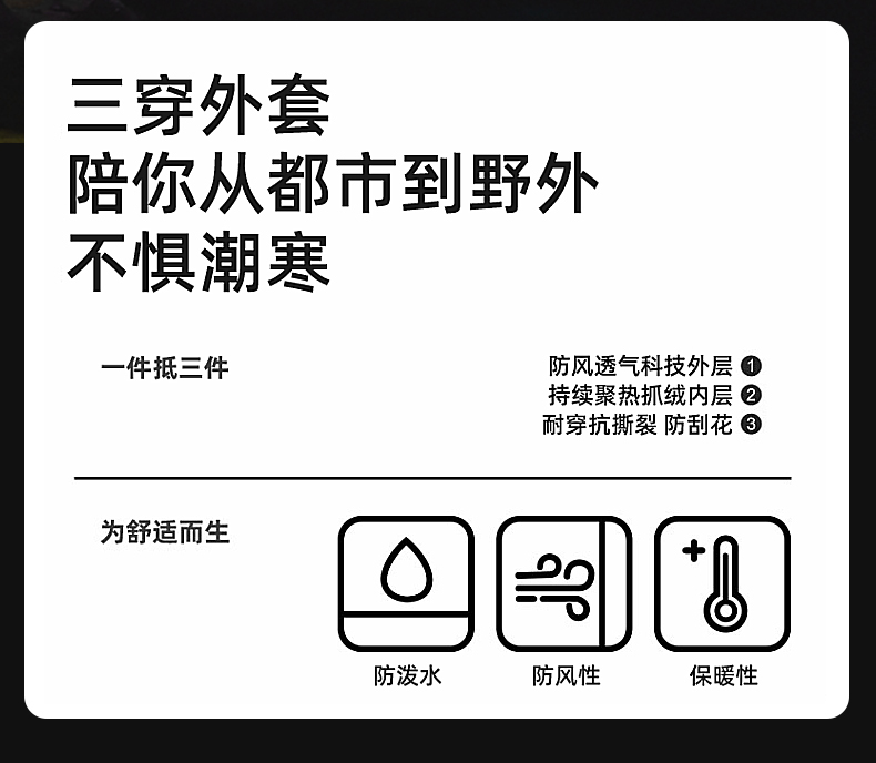 【热销爆款】}秋冬季三合一可拆卸情侣防护外套冲锋衣防风运动外套 BST8611