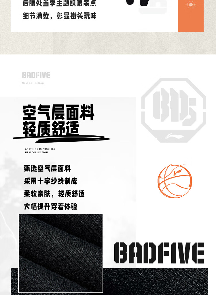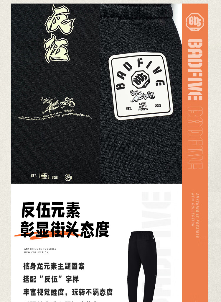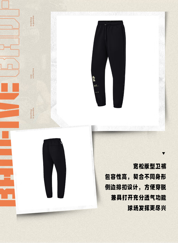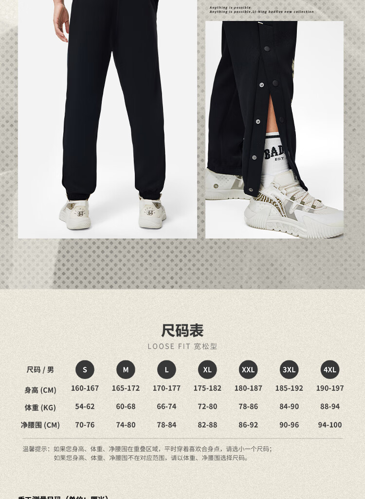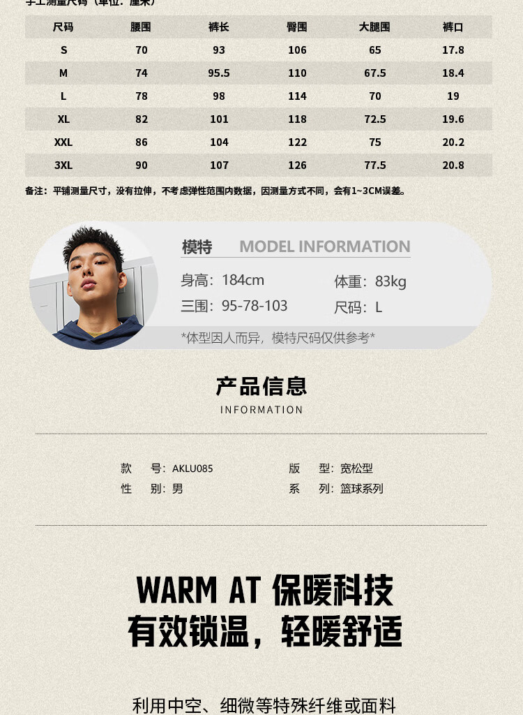 李宁反伍实战系列丨保暖卫裤男子卫裤2024图案字母束脚运动裤AKLU085