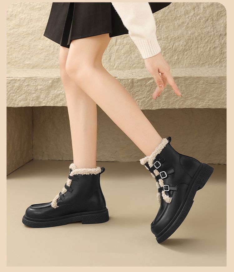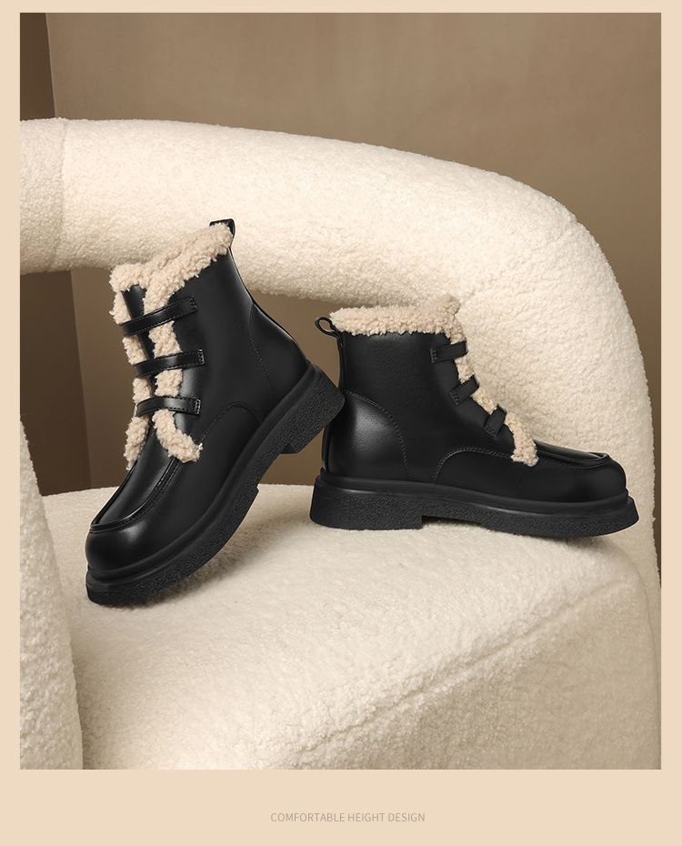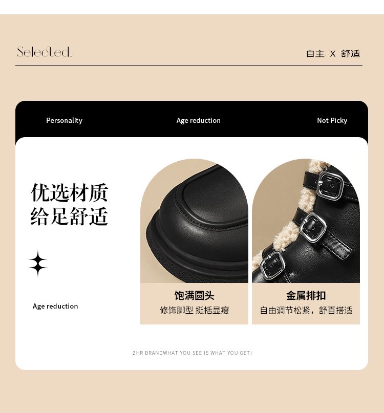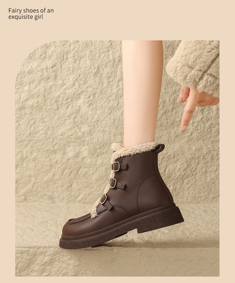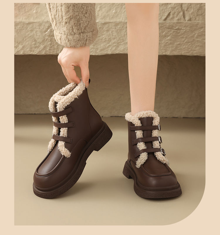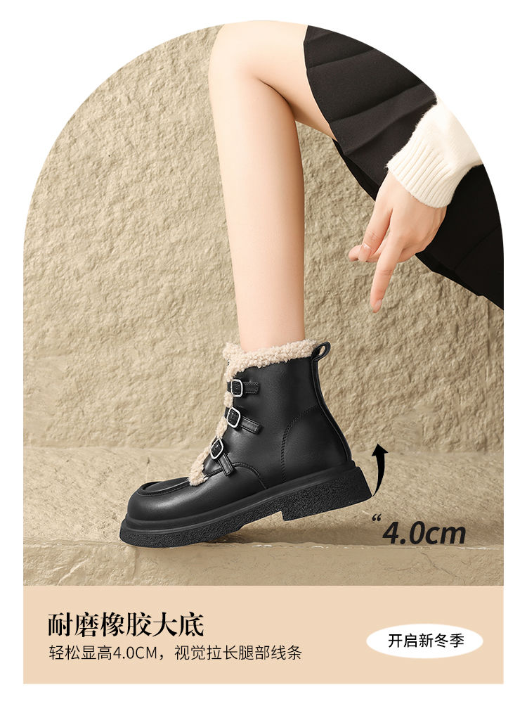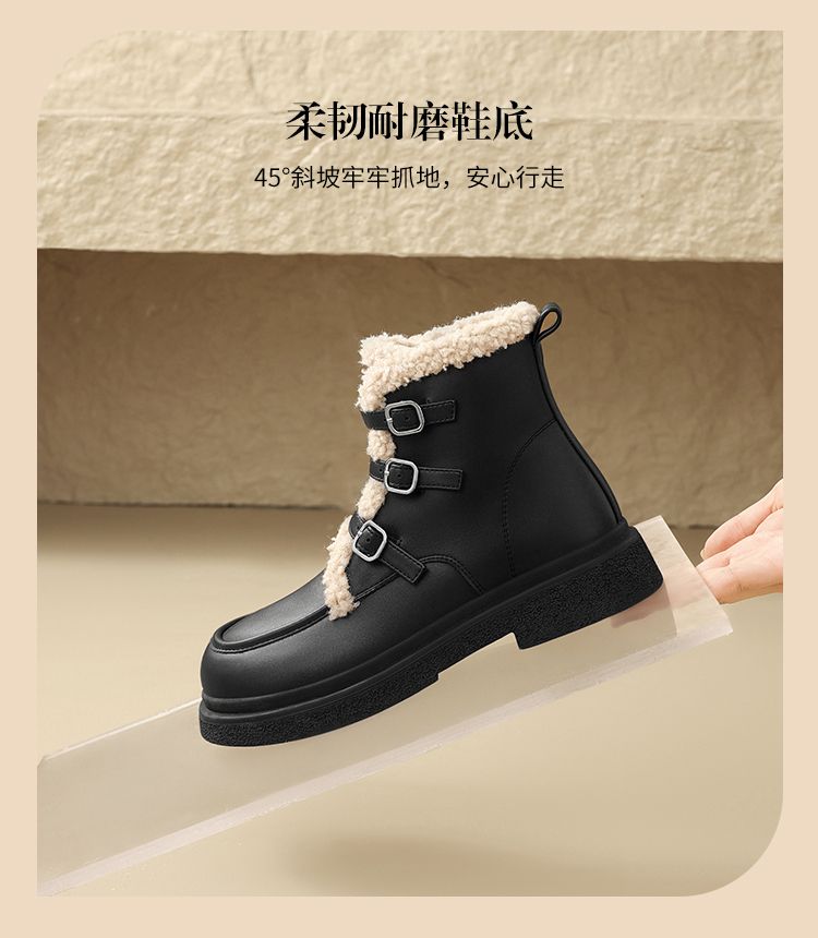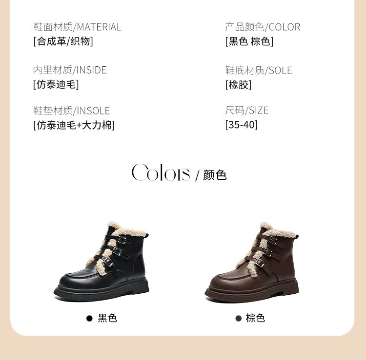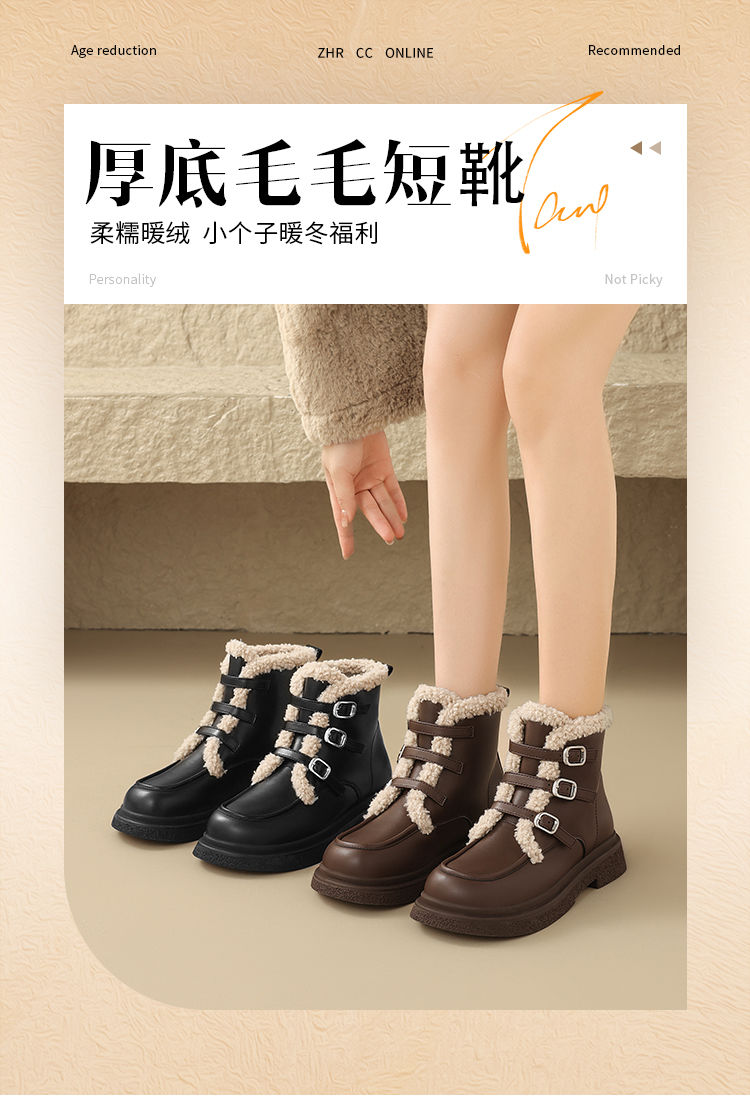 ZHR英伦风马丁靴女靴2024秋冬新款百搭加绒短靴平底保暖毛毛棉鞋