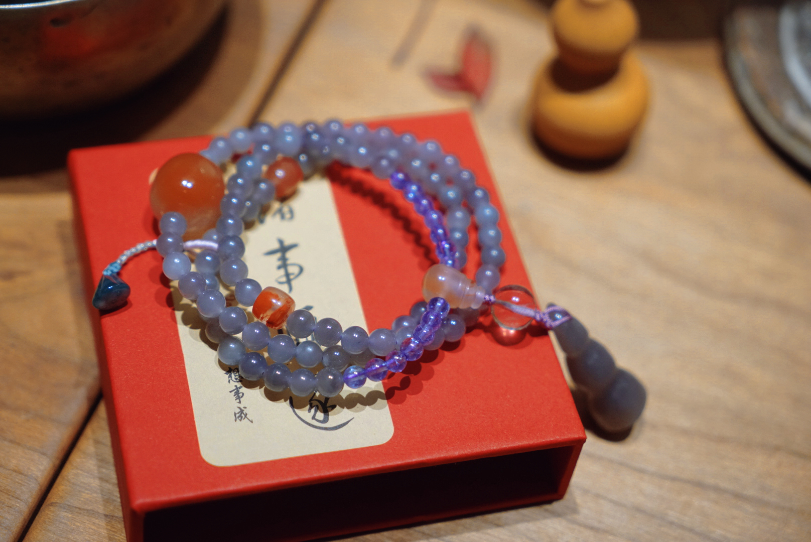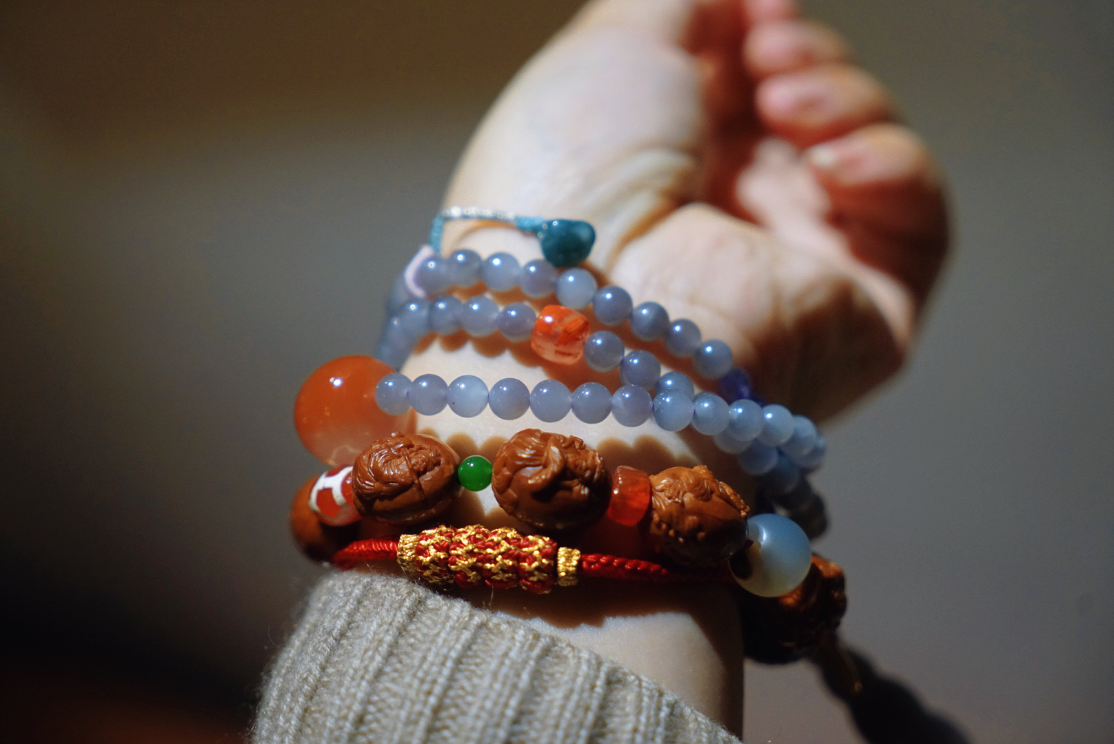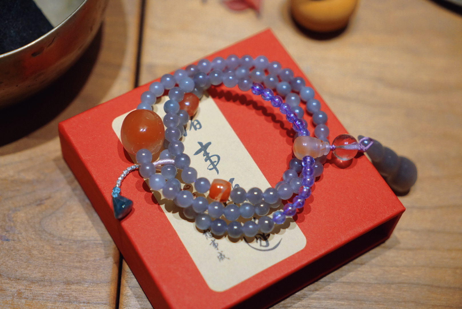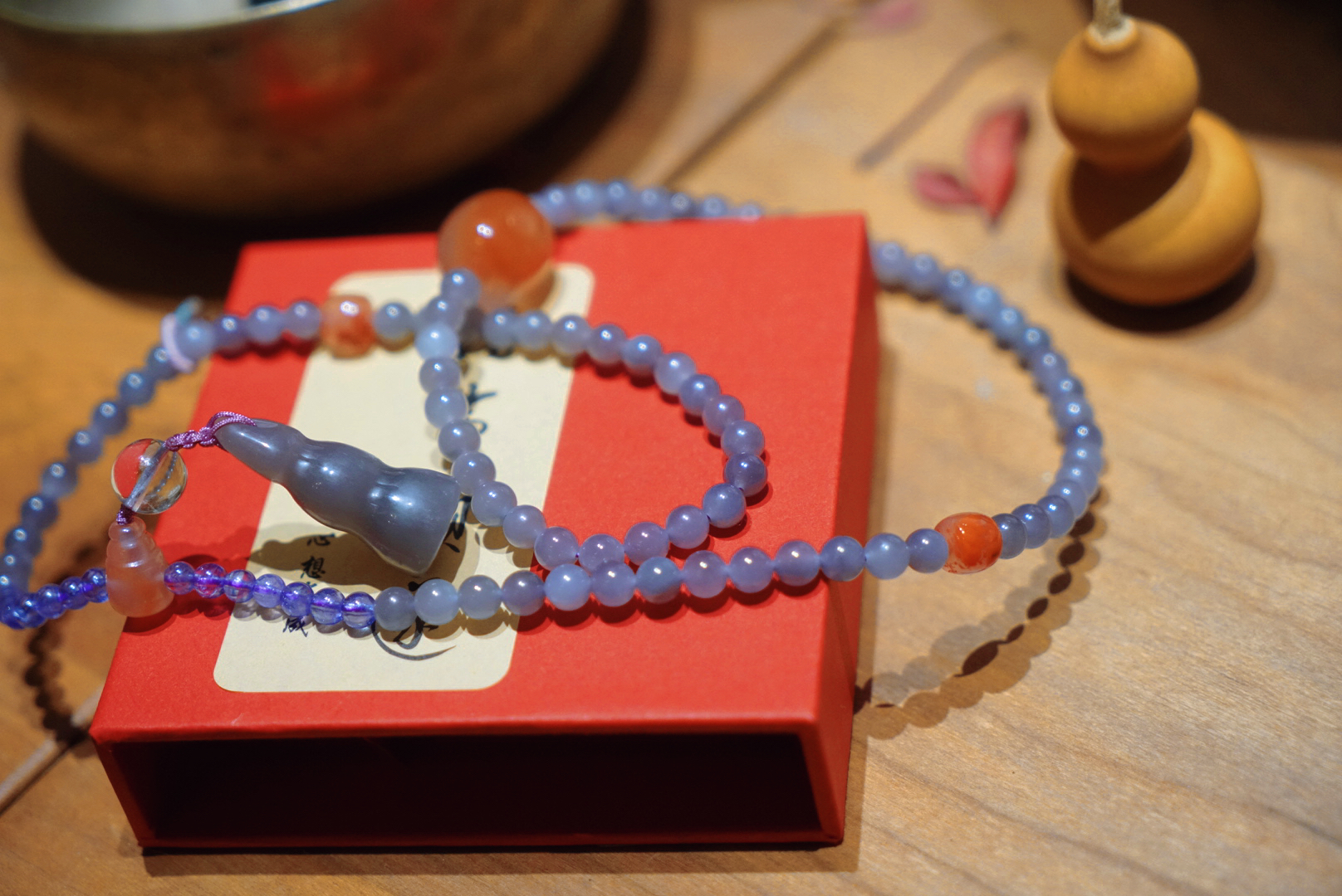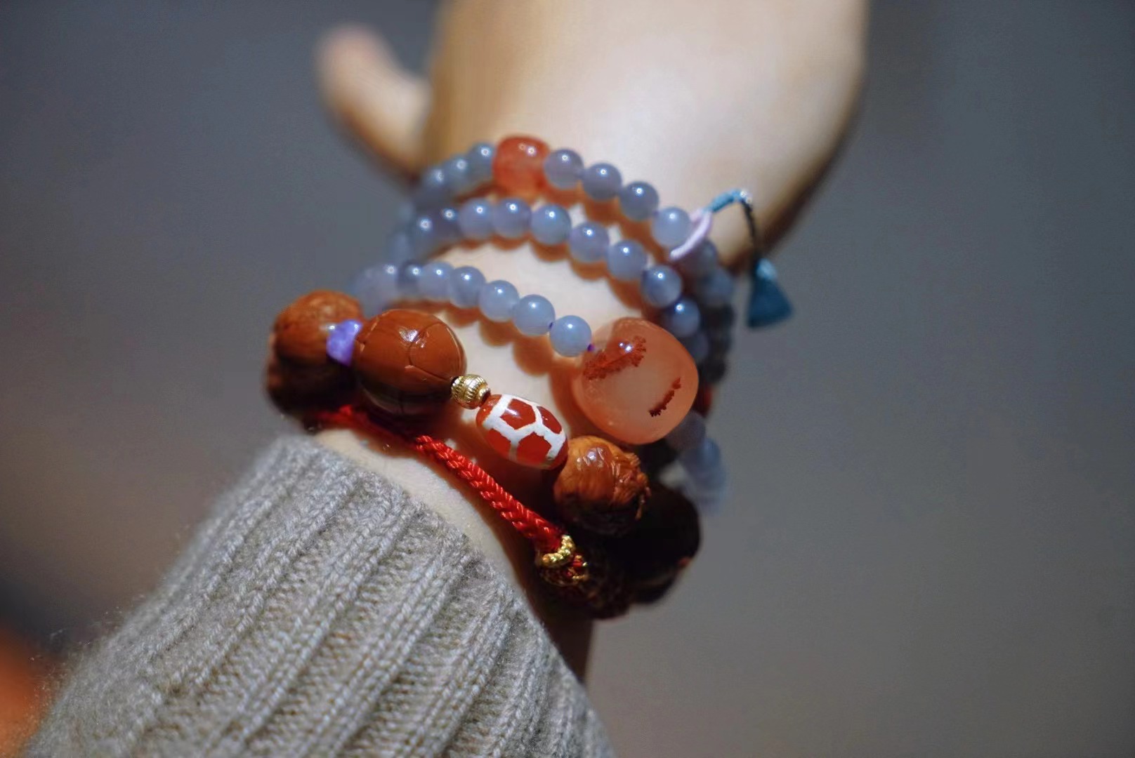 2024九紫离火运,人肯定是跟着运走,这条烟紫和田玉水头好颜色漂亮,搭配的南红也是万里挑一的大珠珠,双色意境感,一面是饱满的橘红,一面是梦幻般的意境~像是湖面上的莲叶~每一颗遇到都是缘分,每一颗都不一样。侧挂是蓝色碧玺莲蓬~