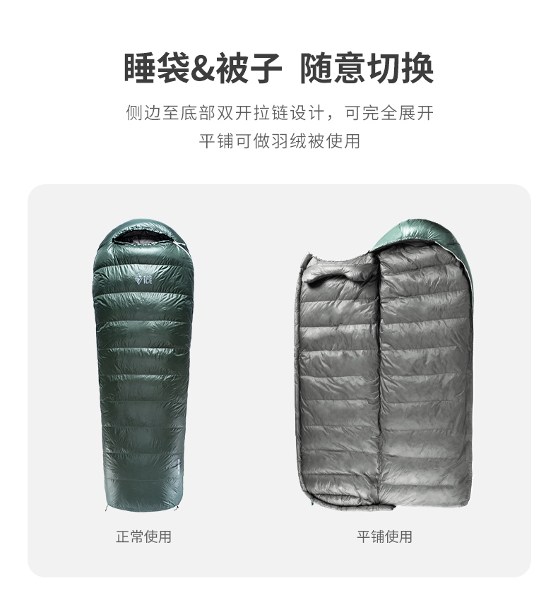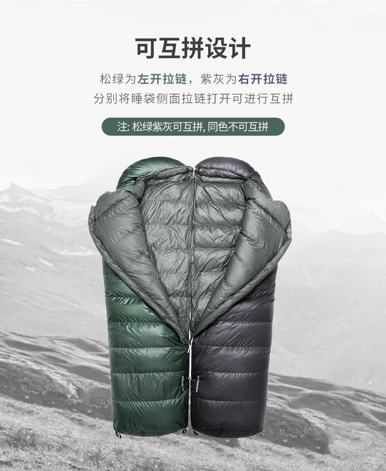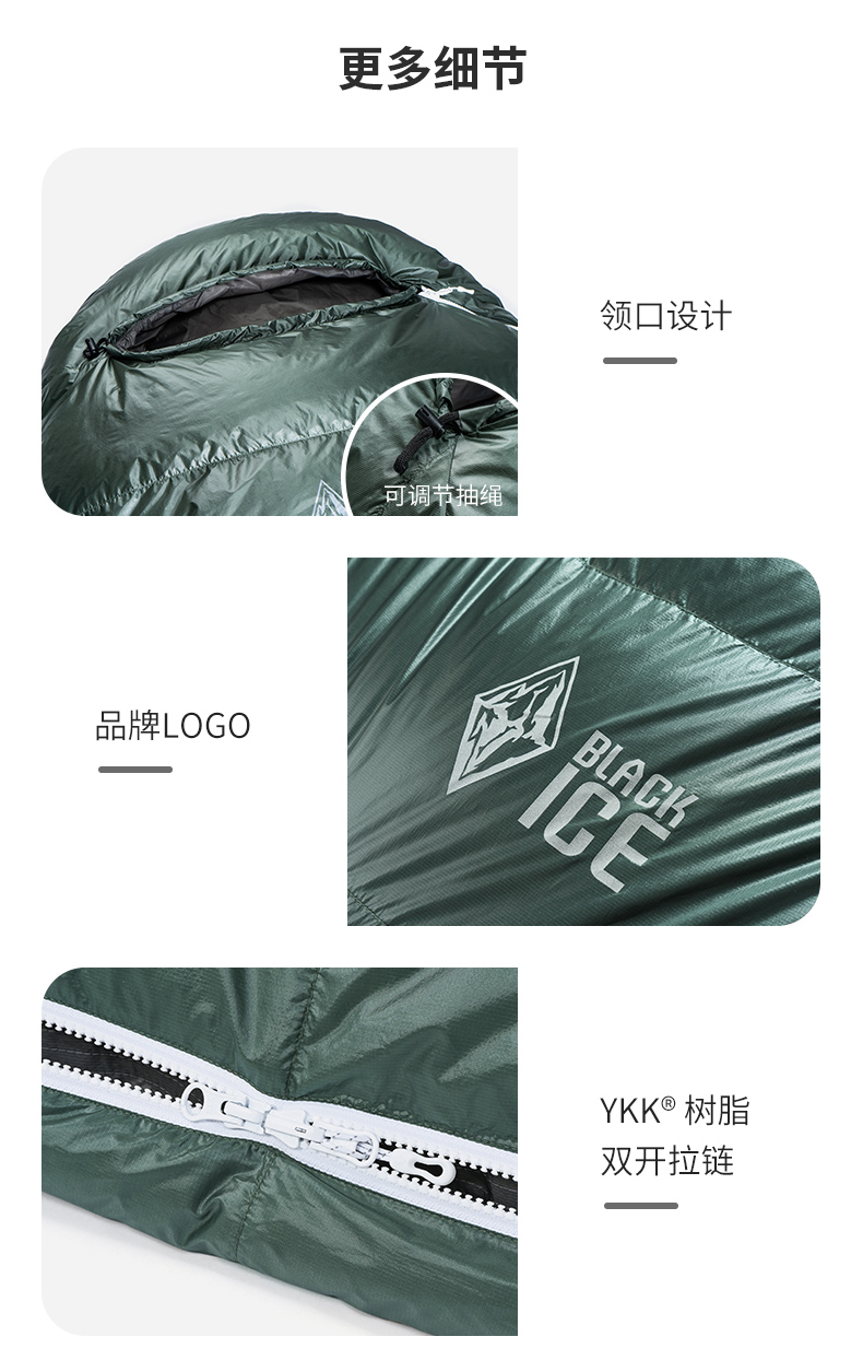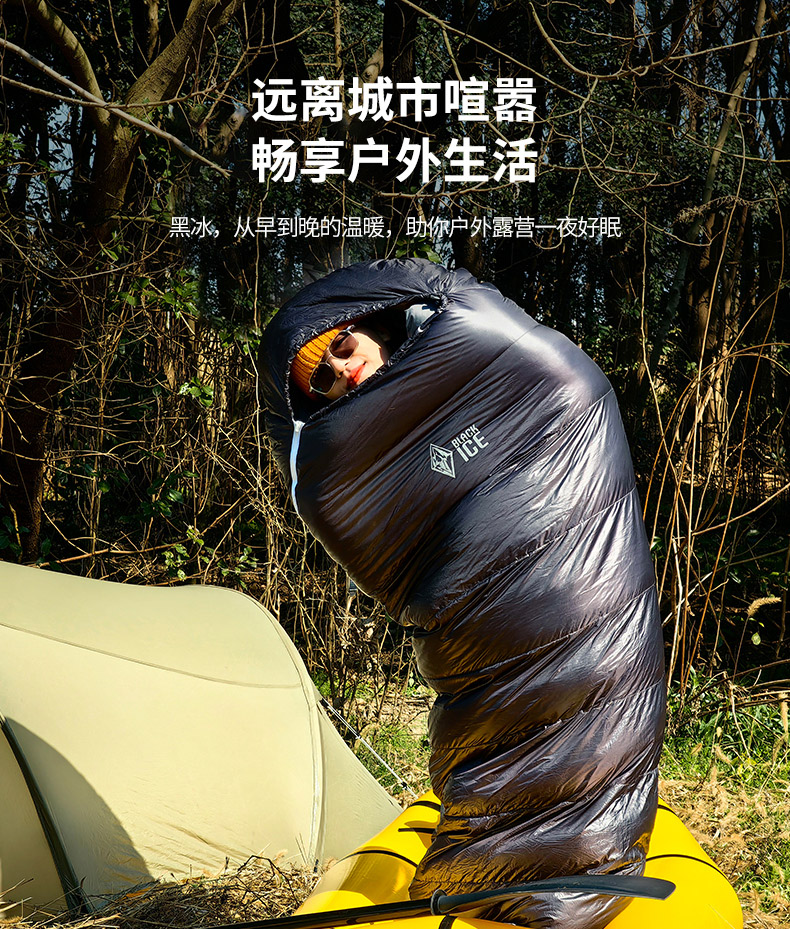 黑冰E400/E700/E1000户外露营睡袋鹅绒信封式羽绒睡袋可拼接(新标准)