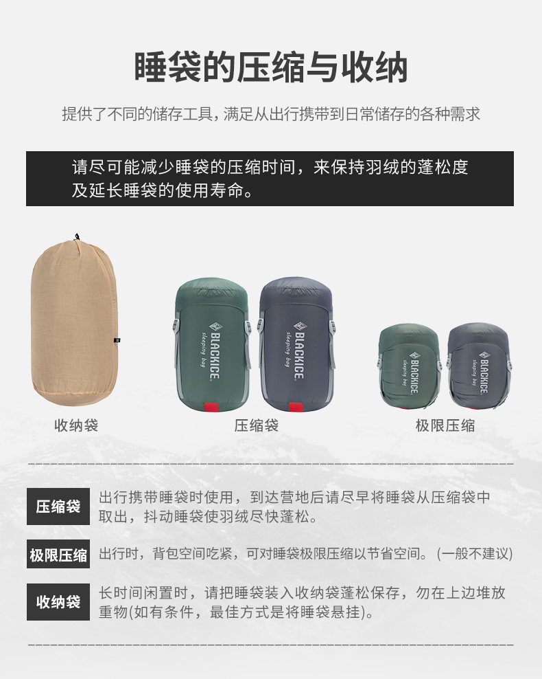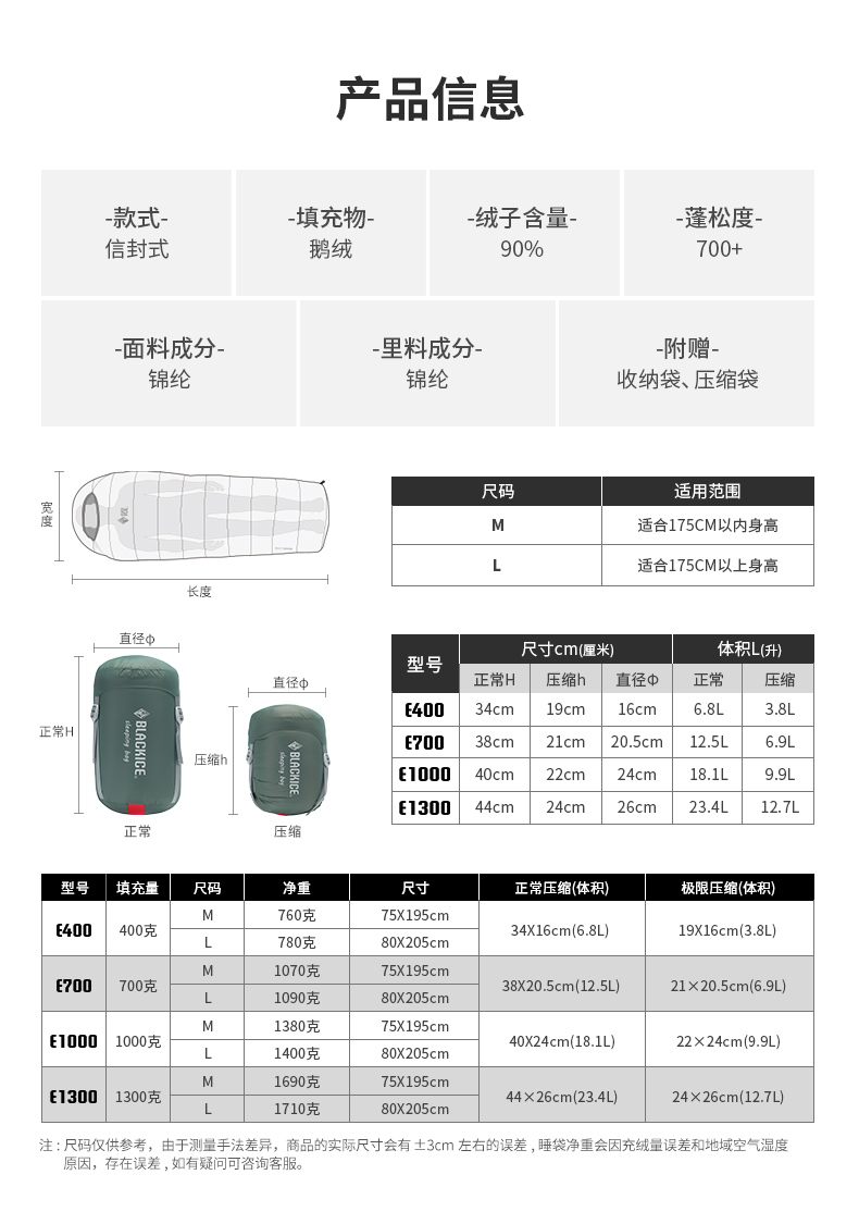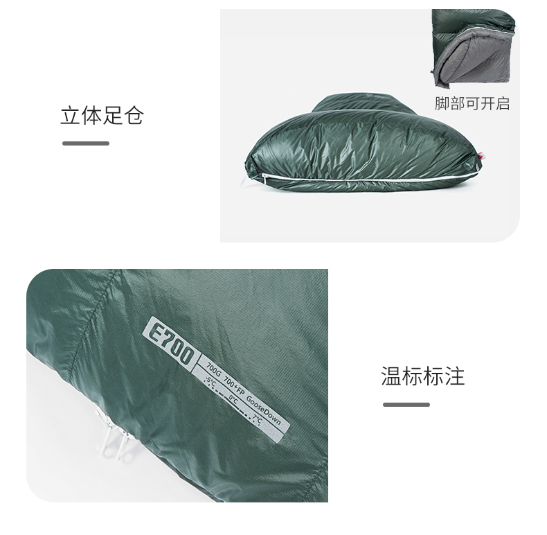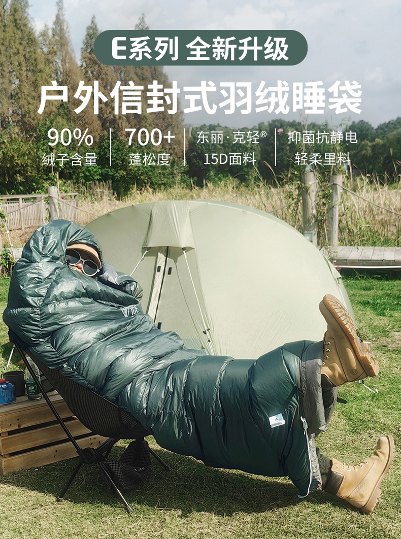 黑冰E400/E700/E1000户外露营睡袋鹅绒信封式羽绒睡袋可拼接(新标准)