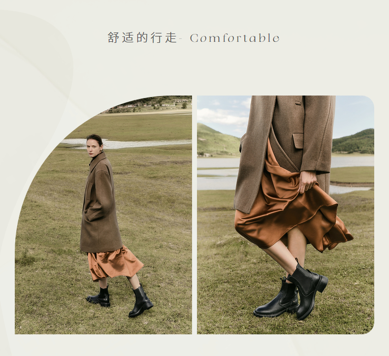 natursun英伦风切尔西靴黑色烟筒靴厚底简约时装短靴女鞋N24567607