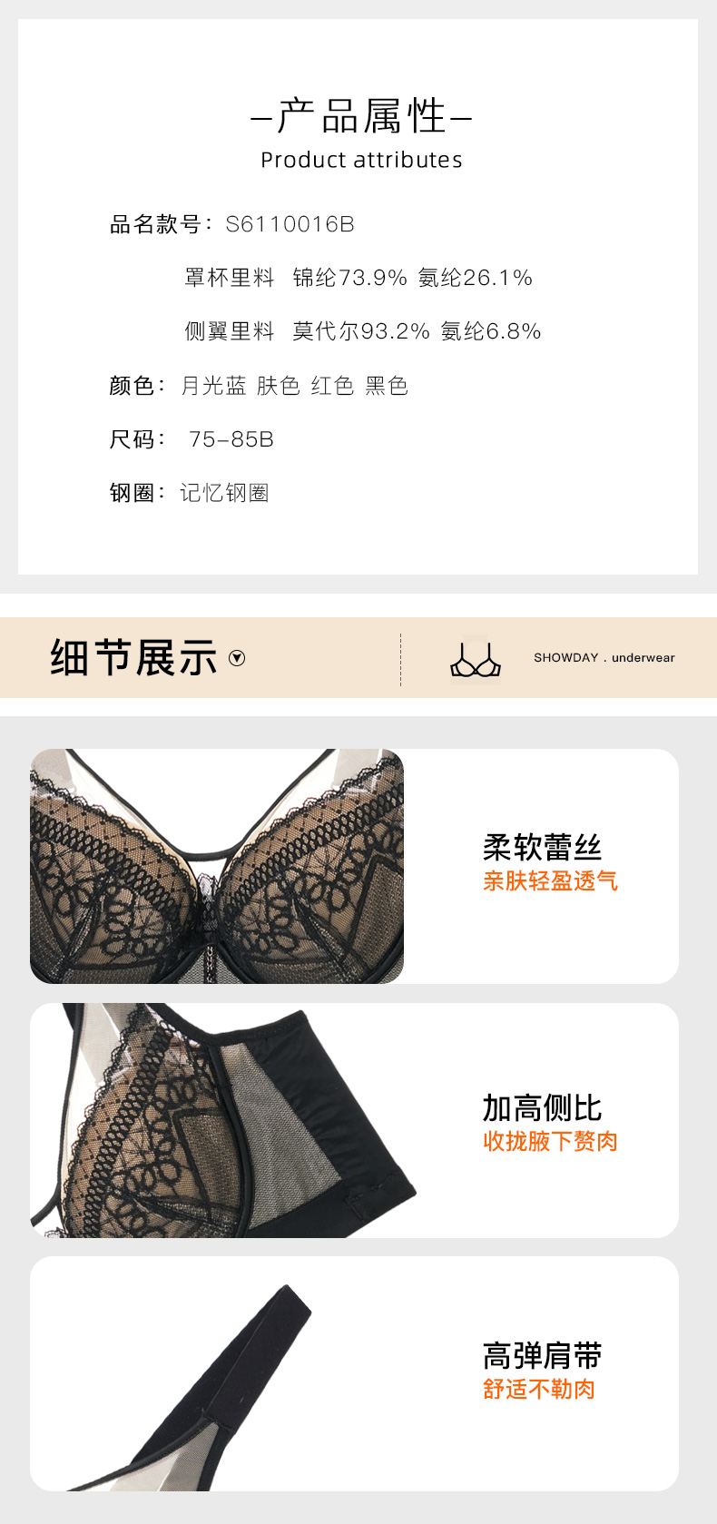 【6.9折限时优惠】【B杯单件】【秀黛】摩登线韵记忆圈中薄杯文胸S6110016B【门店同款】