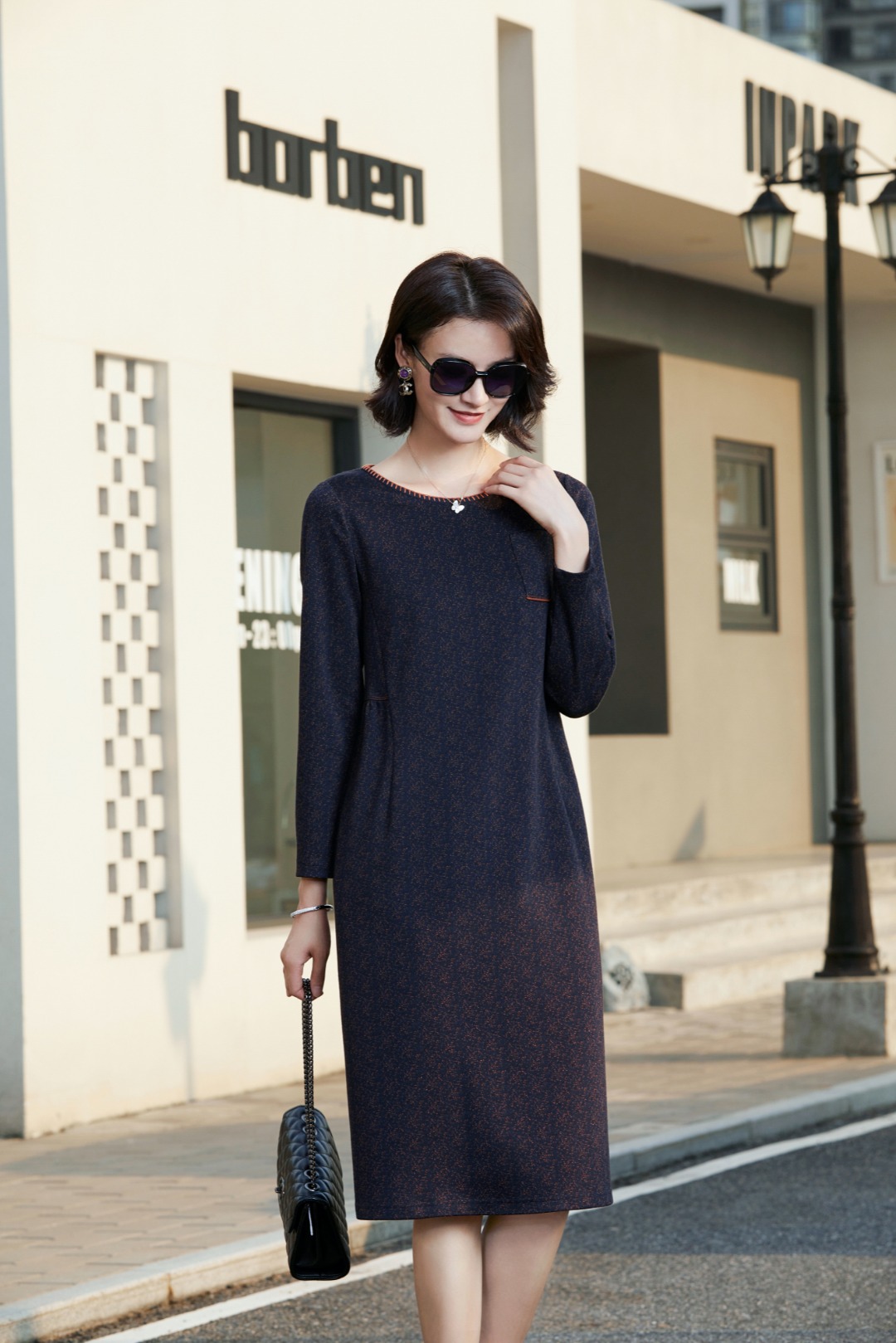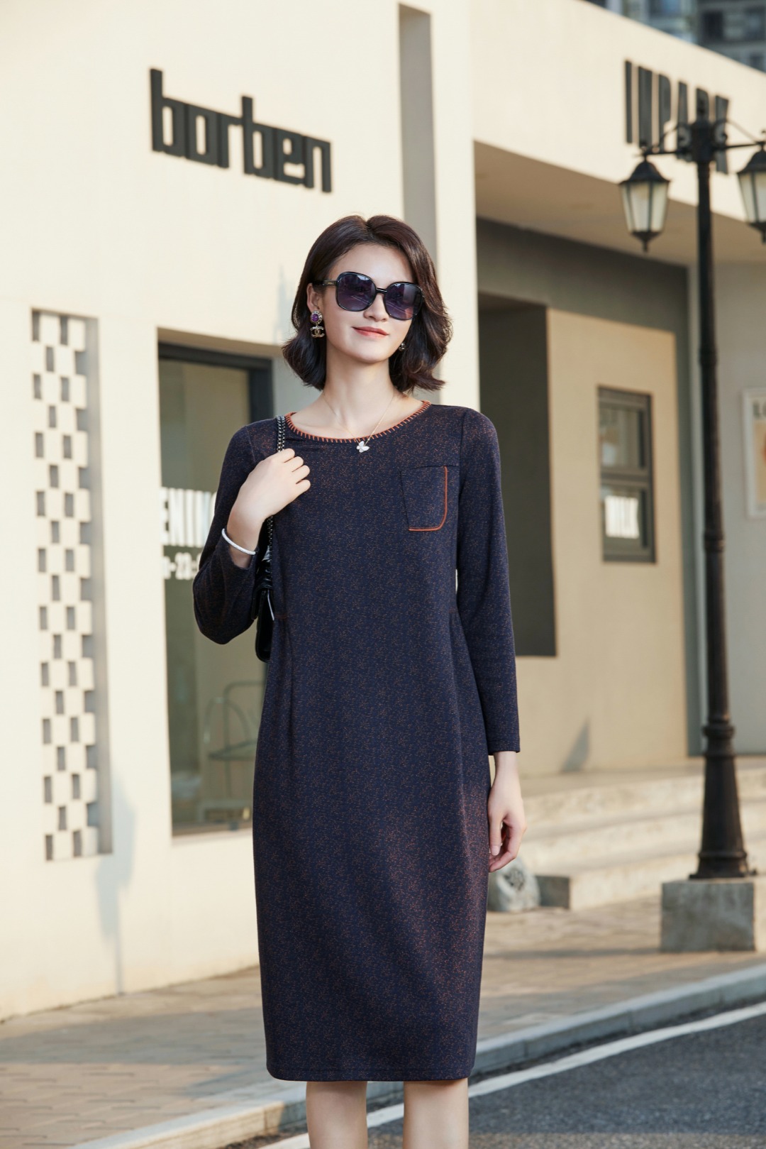 5910 # 蓝 M-L 高端气质低圆领弹性修身显瘦女士长袖连衣裙 气质优雅 大方得体 上身很有气质 高腰显瘦版型 遮胯遮腿粗 梨形身材也可以驾驭