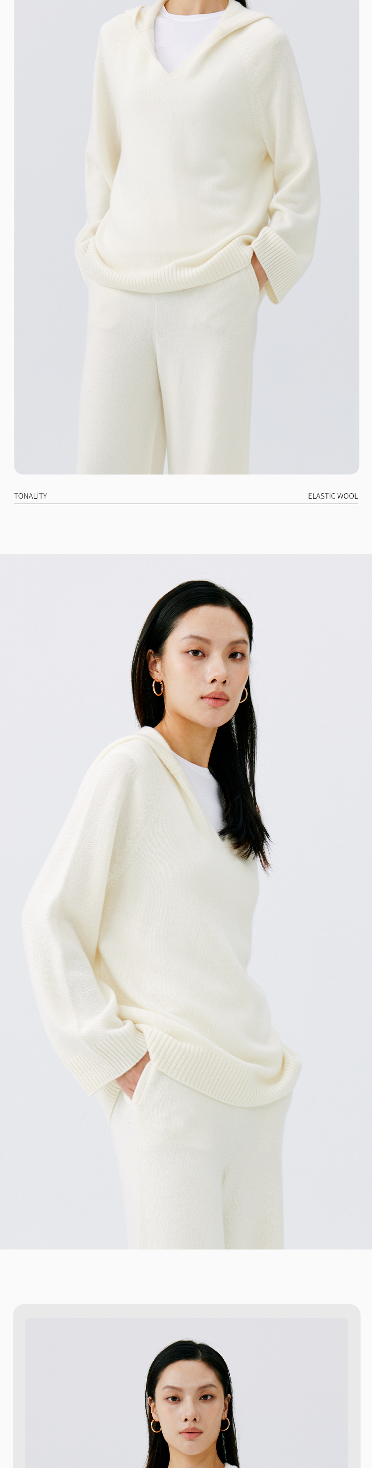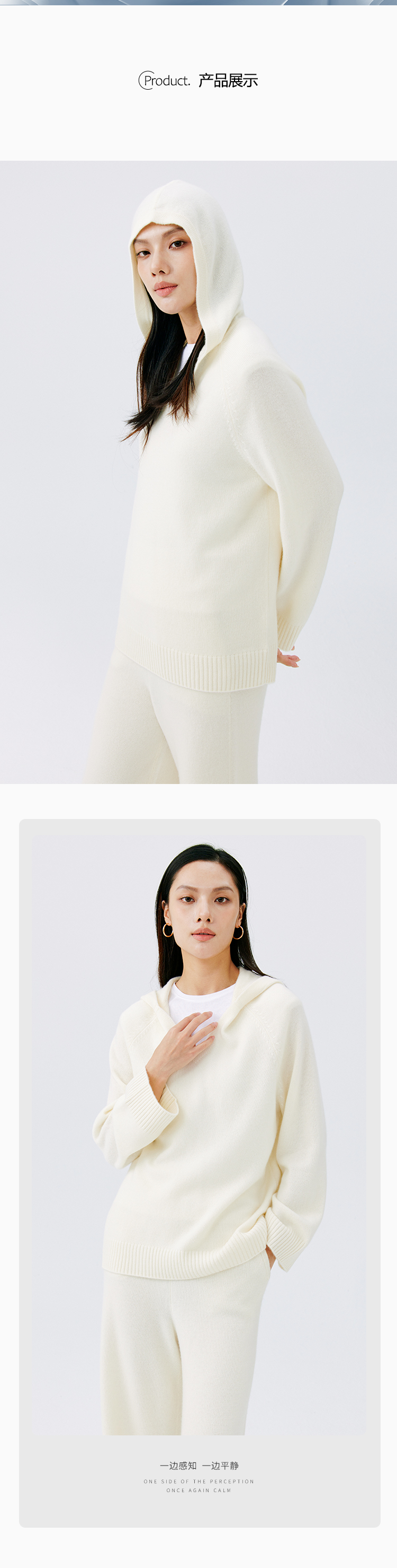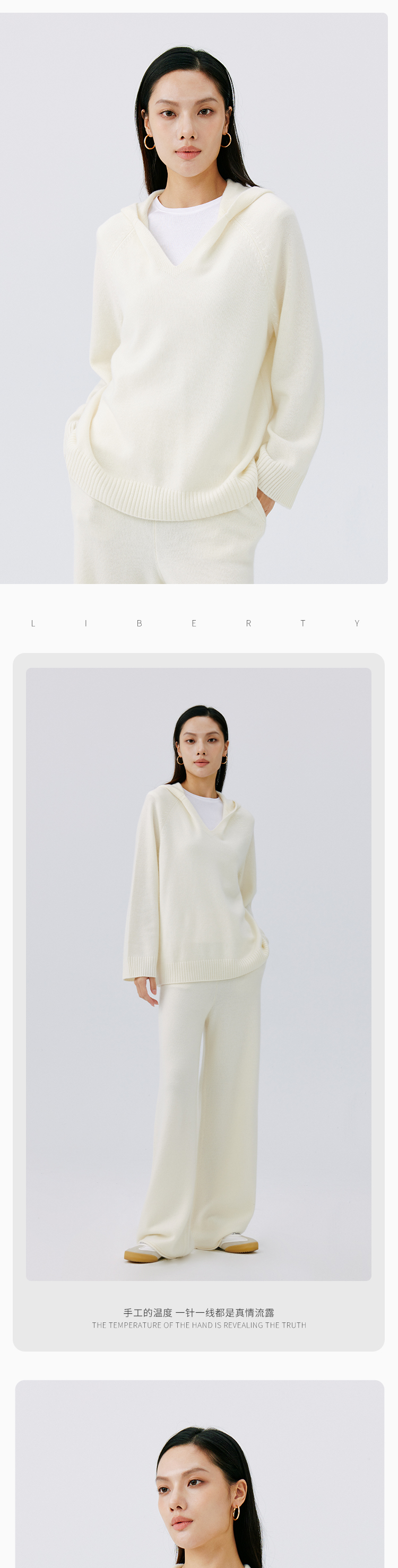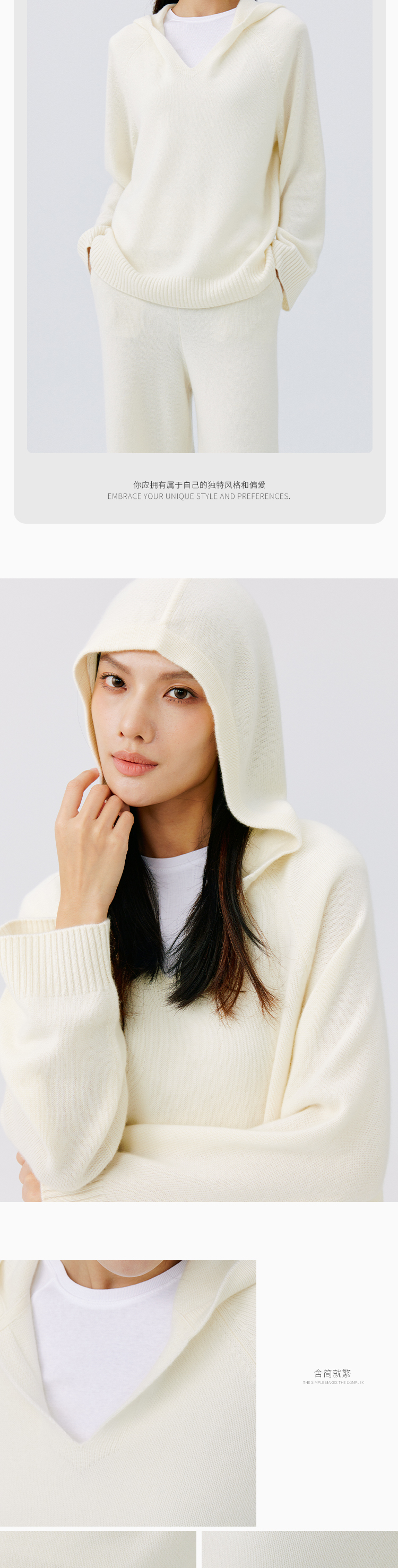东黎 • 秀场同款 山羊绒女士秋冬V领连帽套头衫 4326
