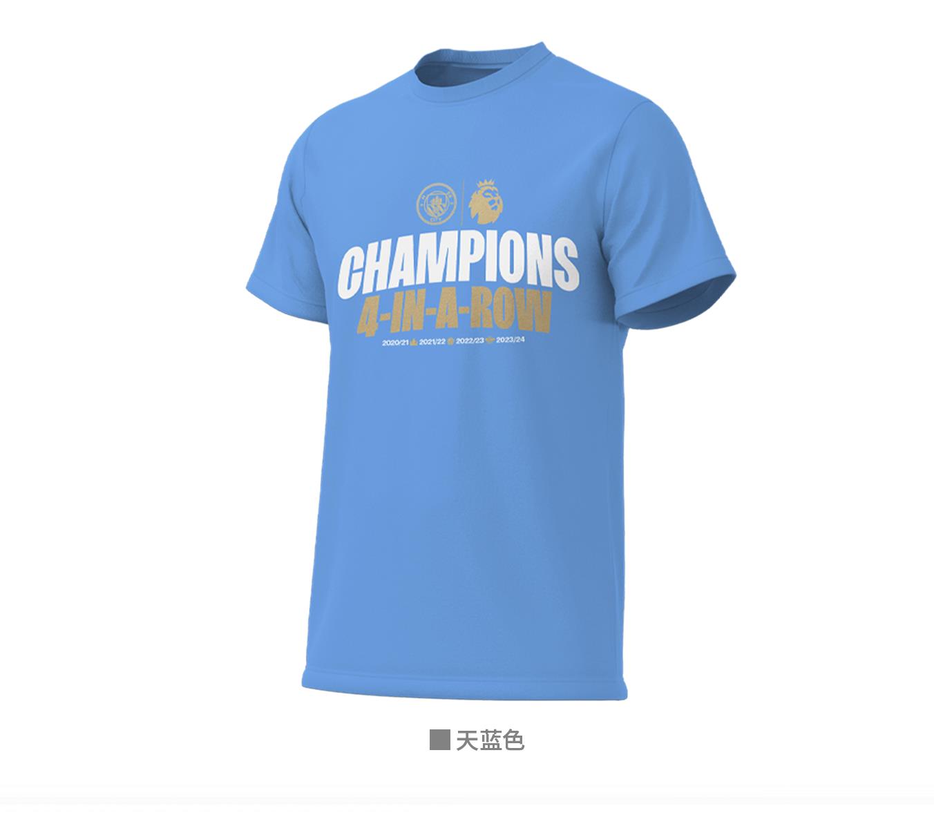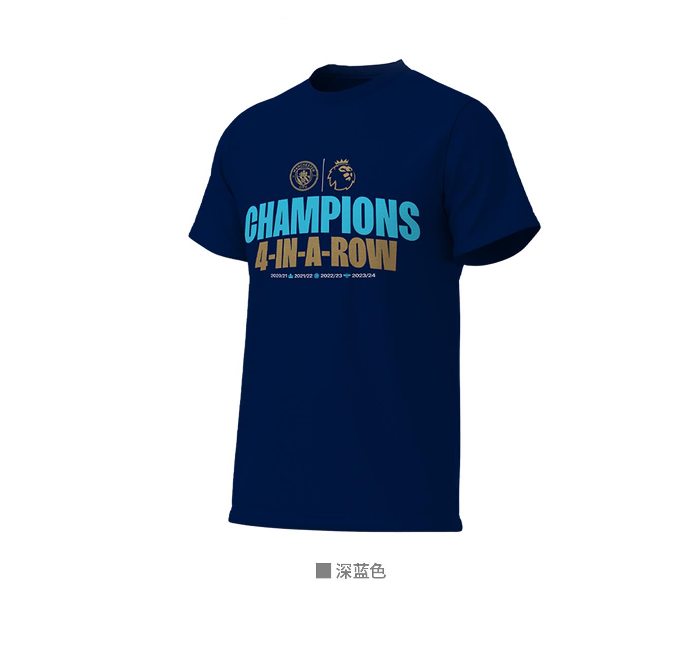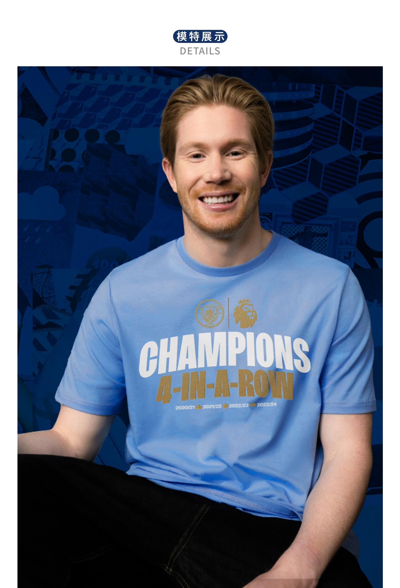 曼城俱乐部官方商品 | 英超夺冠四连冠纪念T恤运动球迷夏季短袖
