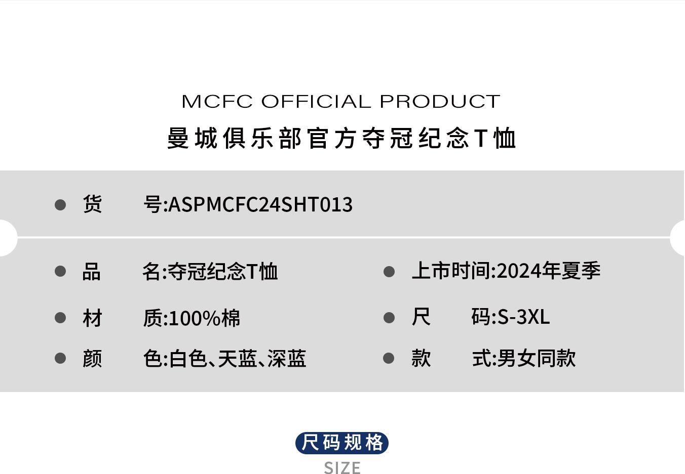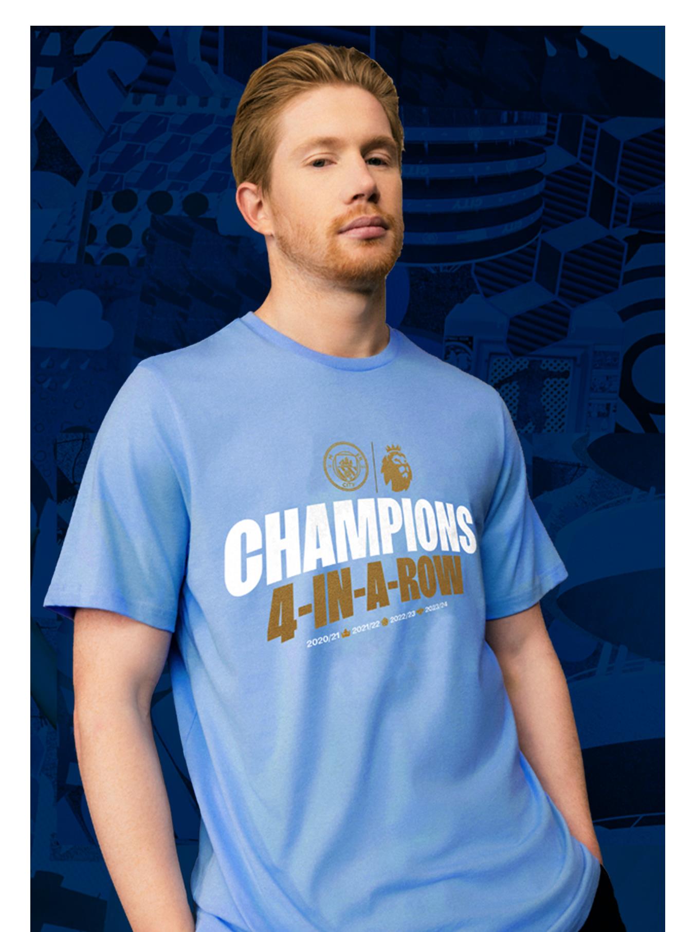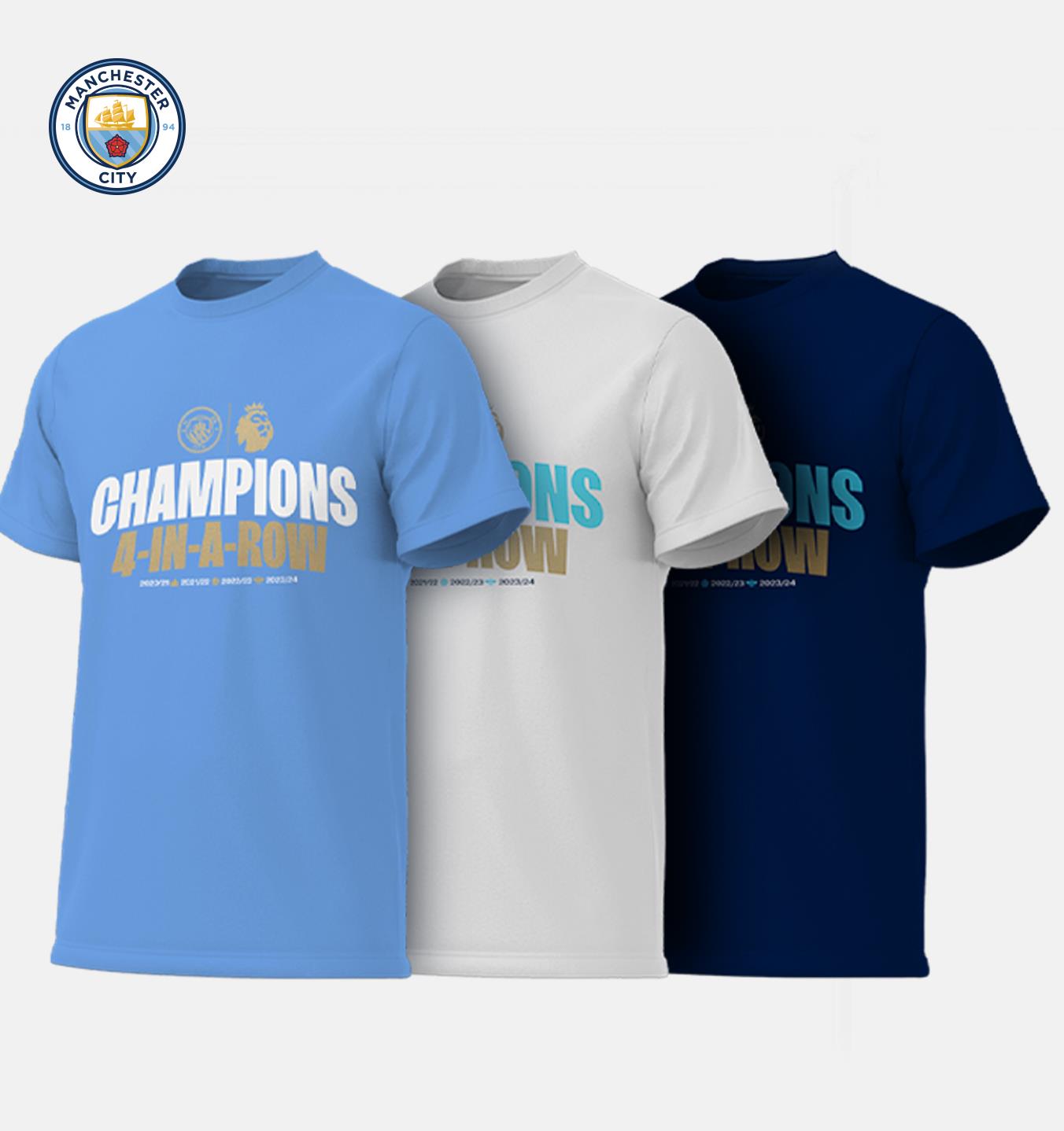曼城俱乐部官方商品 | 英超夺冠四连冠纪念T恤运动球迷夏季短袖