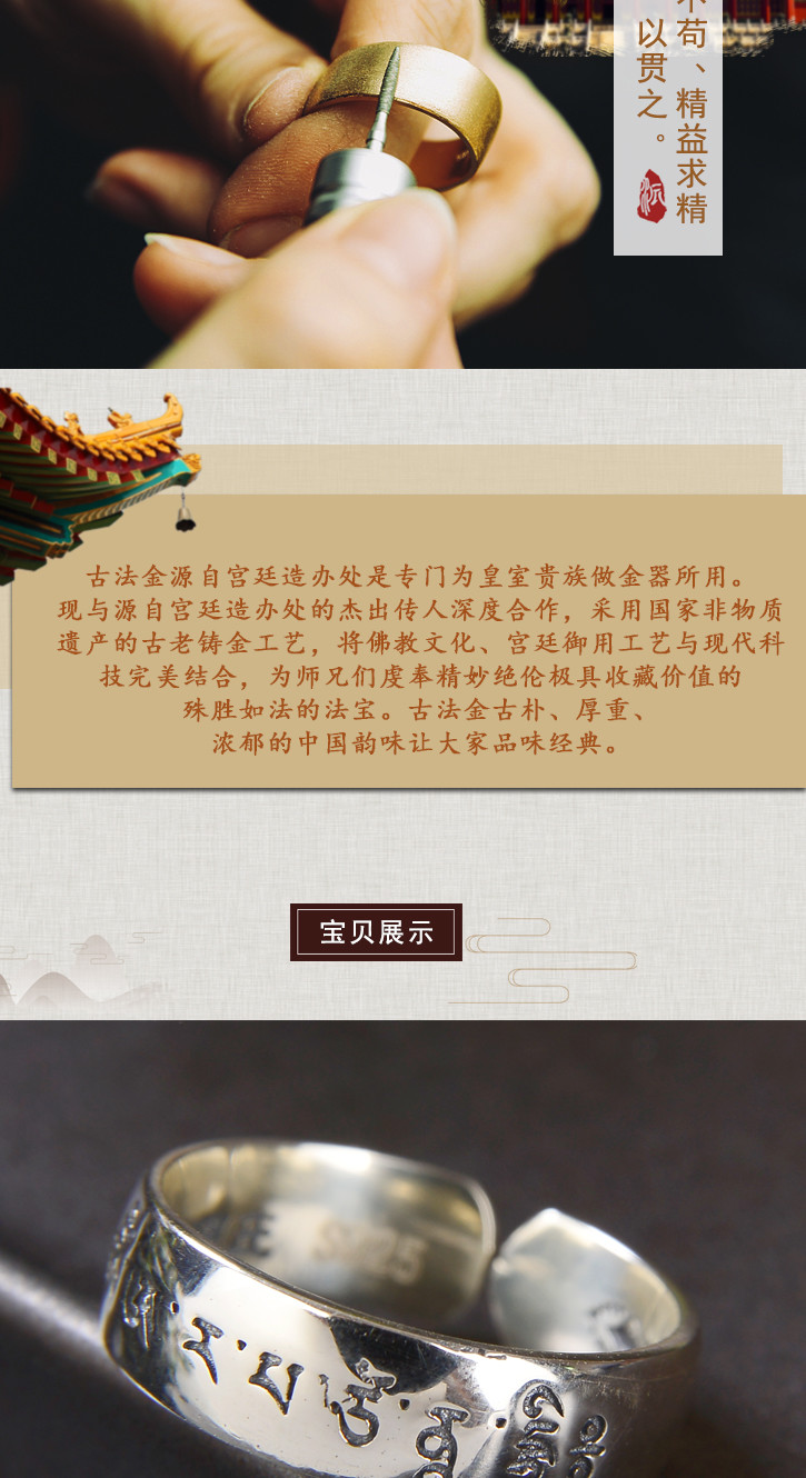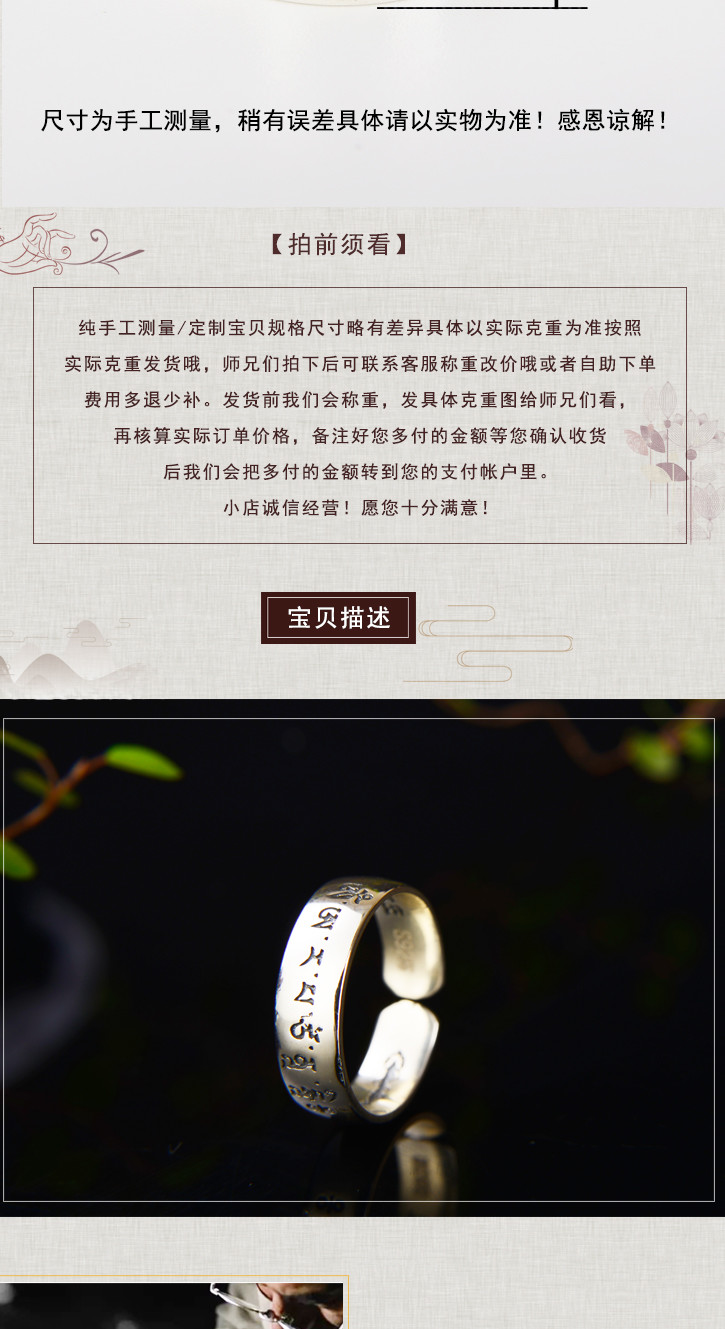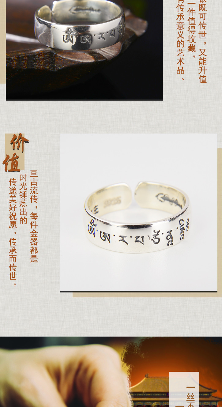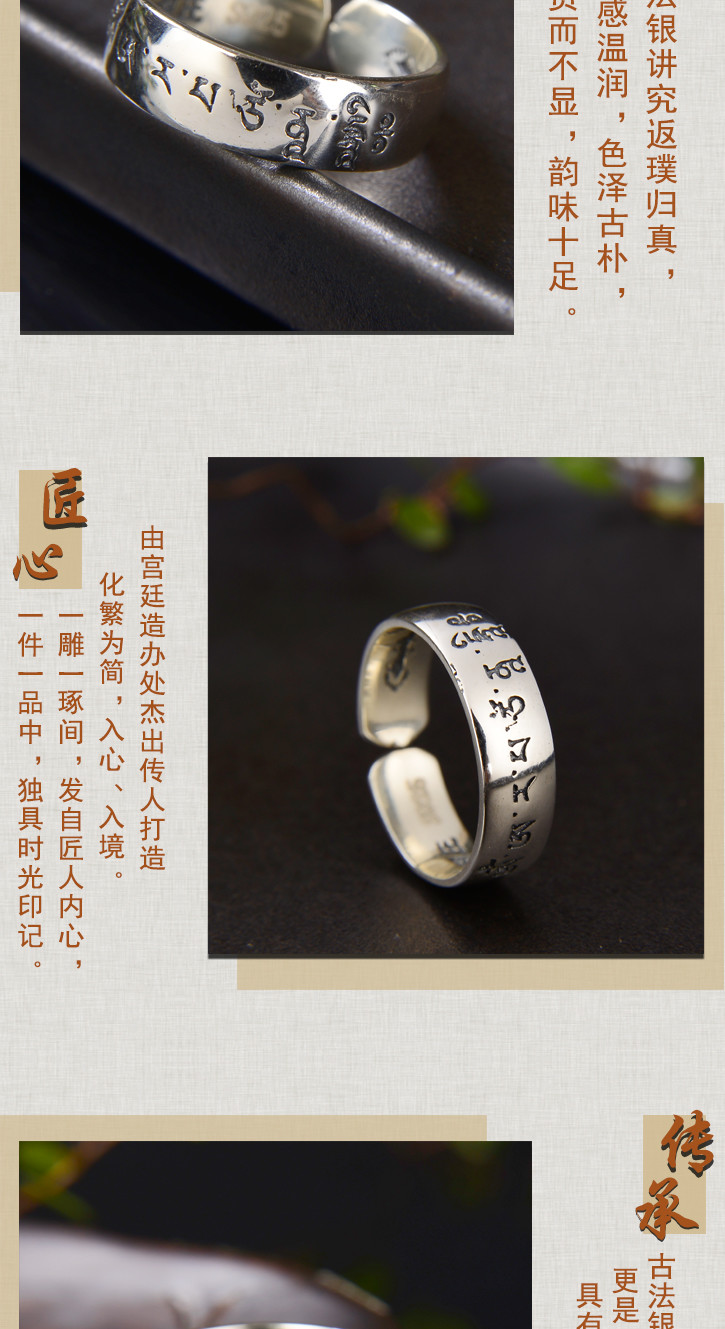 银古法银文殊心咒戒指纯银戒指文殊经文戒指男女款可调节