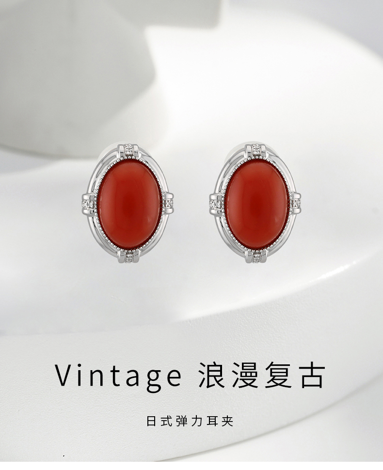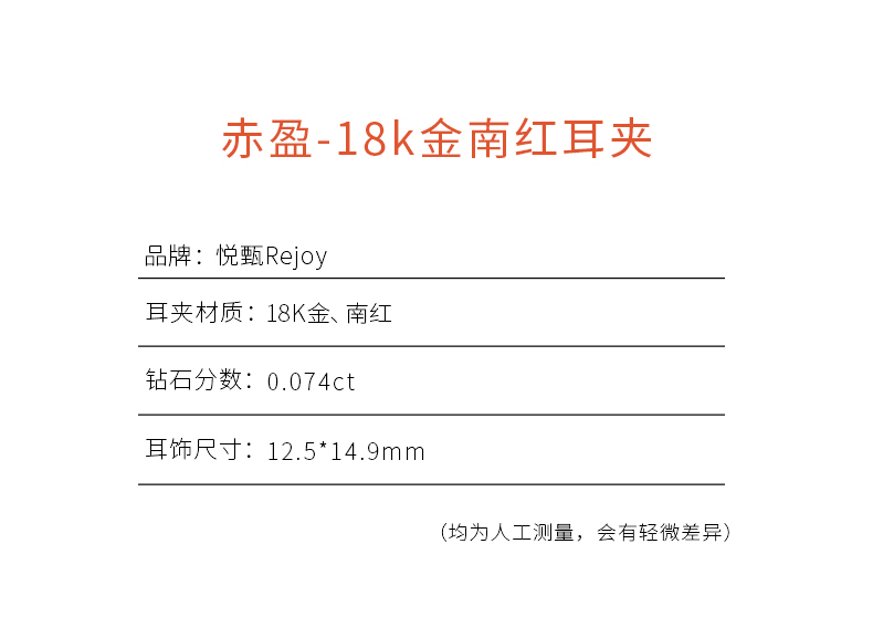 【挚友限定】赤盈 18k金南红耳夹
